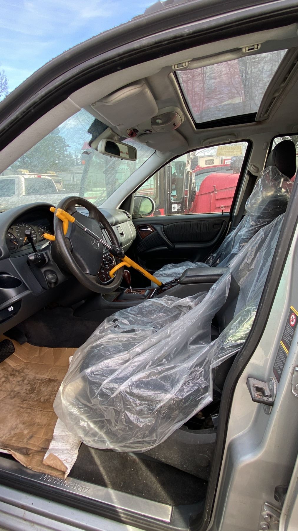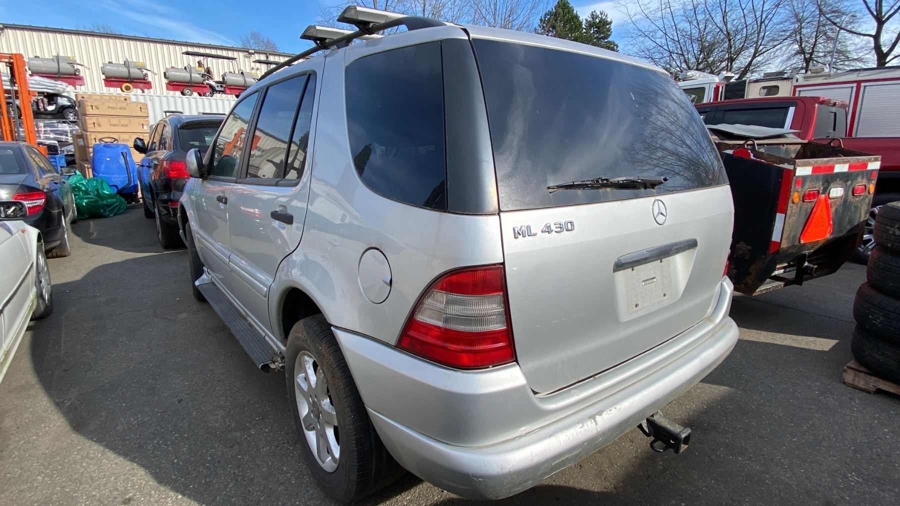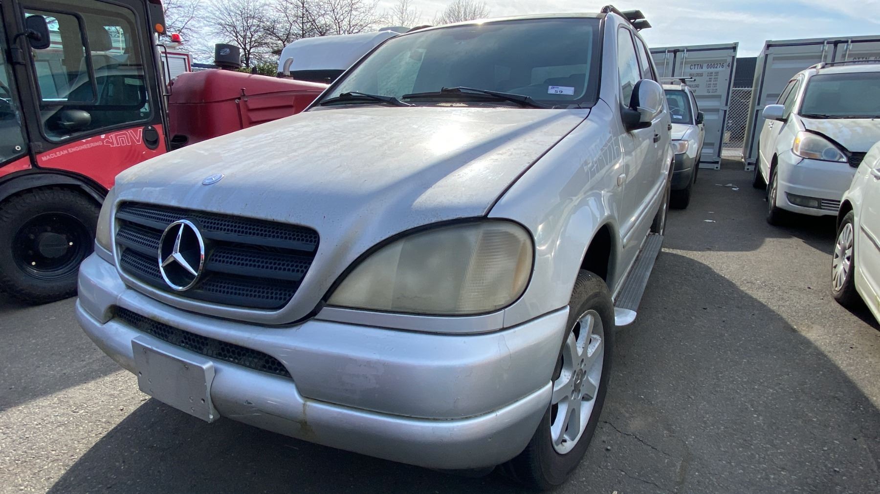 2001 MERCEDES ML430, 4DRSW, GREY, VIN 4JGAB72E11A246689, 275,182 KMS, GAS (G), 4.3L V6, AUTOMATIC, HAS REGISTRATION, MUST TOW - NOT SUITABLE FOR TRANSPORT, NO KEYS, 1 ICBC ESTIMATE $2200.59, 1 ICBC REPAIRED DECLARATION $2073.28, FEATURES: RADIO, COMPACT DISC, POWER WINDOWS, CRUISE CONTROL, POWER SEATS, TRAILER HITCH, ALLOY WHEELS, POWER LOCKS, TILT WHEEL, AIR COND, LEATHER TRIM, SUNROOF, HEATED SEAT, MINOR SCRATCHES AND DENTS, CLUB ON WHEEL