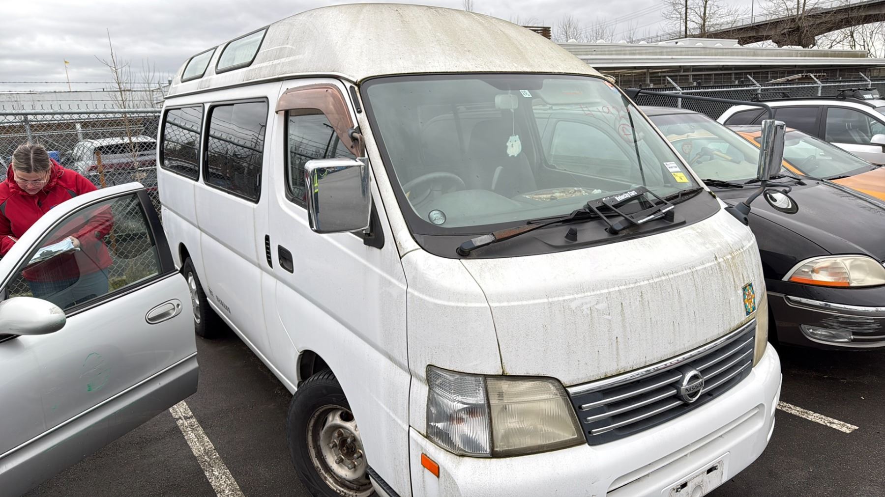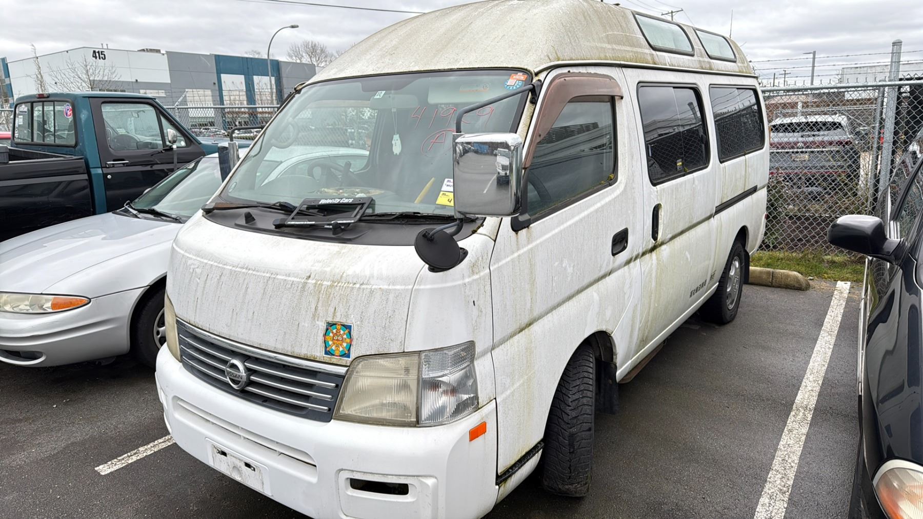 2001 NISSAN SP&SP 3.0DI, 4DR VAN, WHITE, VIN DWMGE25000178 TMU, GAS (G), AUTOMATIC, HAS REGISTRATION, NO KEYS, FEATURES: RADIO, HISTORY: OOC, NO ICBC DECLARATIONS, *MUST TOW, NO KEYS, NOT SUITABLE FOR TRANSPORTATION*, RIGHT HAND DRIVE, CASSETTE, 3 PASSENGER, 4WD, MINI KITCHEN
