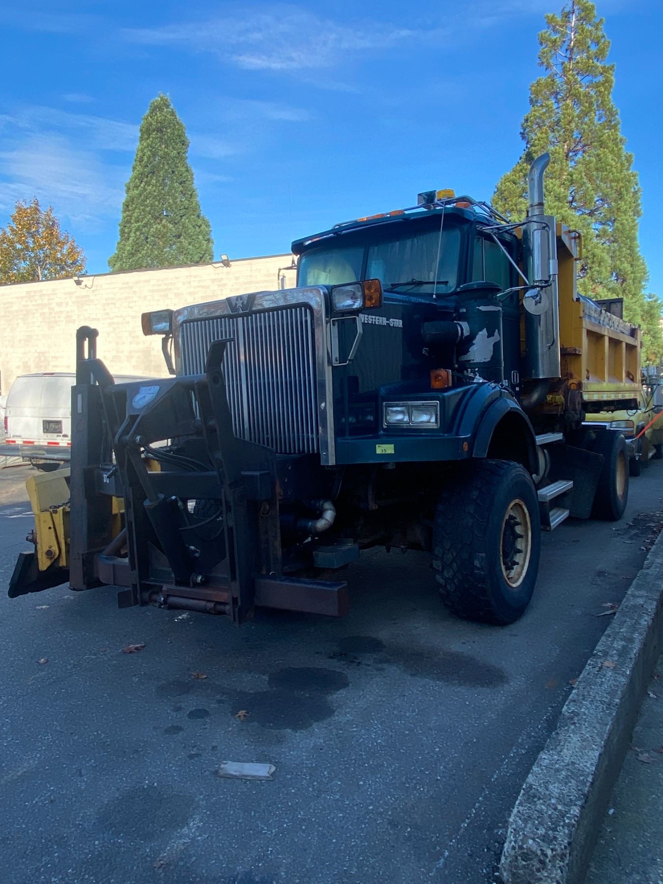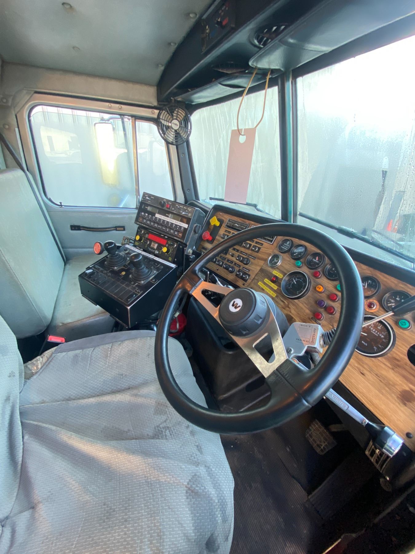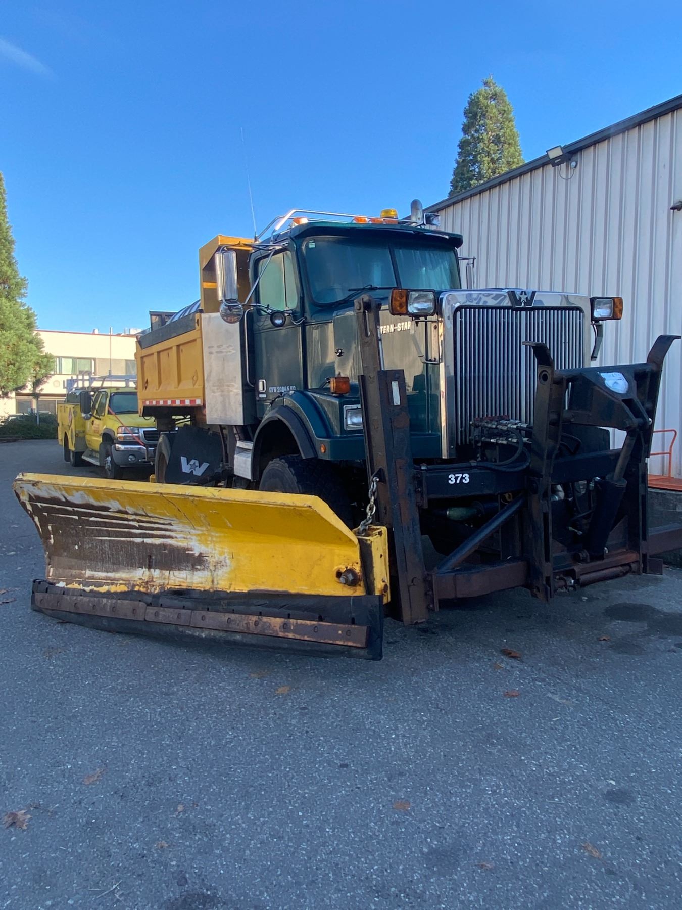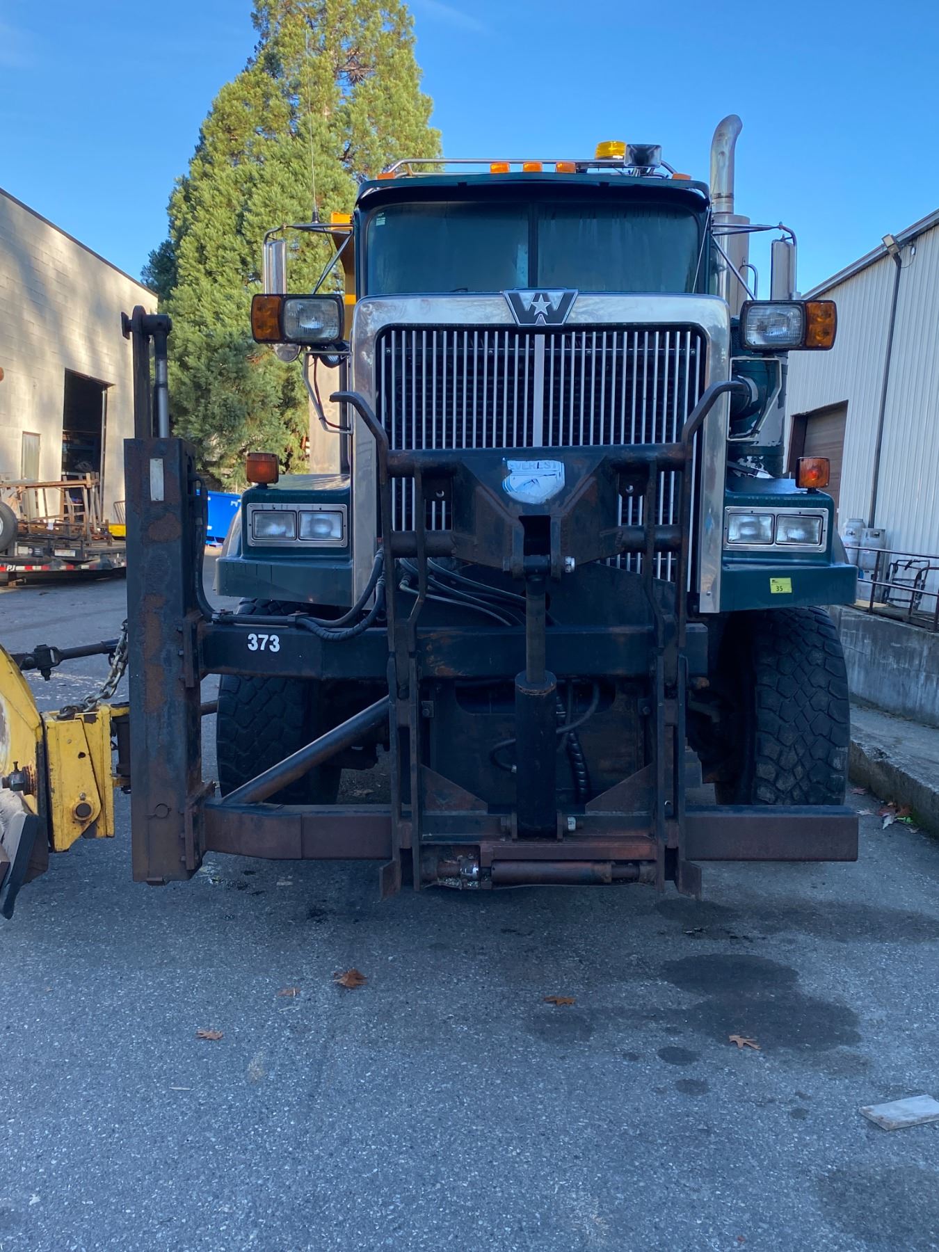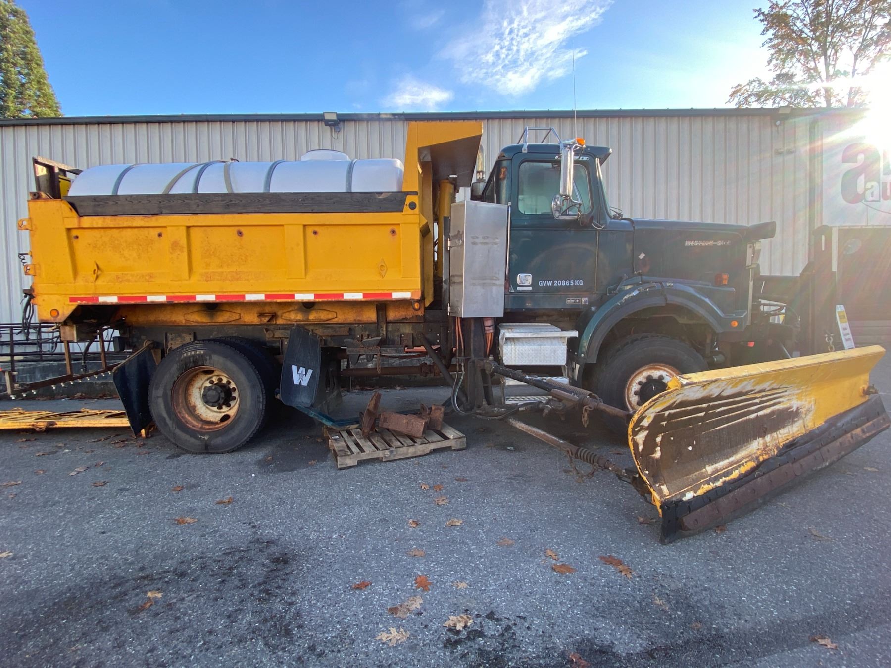 2001 WESTERN STAR 4844S, 2DR DUMP TRUCK, GREEN, VIN 2WLNEC2G01K969703, 152,118 KMS, DIESEL (D), C-12, AUTOMATIC, HAS REGISTRATION, HAS KEYS, FEATURES: RADIO, COMPACT DISC, POWER WINDOWS, CRUISE CONTROL, TRAILER HITCH, TILT WHEEL, 4 WHEEL DRIVE, AIR COND, HISTORY: X-CITY, NO ICBC DECLARATIONS, MINOR SCRATCHES & DENTS, 125" W X 38" T SIDE PLOW, 12' L X 8' W X 39.5" H DUMP BOX, 2 PASS, RIGHT HAND DRIVE, GVWR 46,000LBS, ENGINE HOURS 9,682, ANTI ICING TANK IN BOX, TAILGATE, ENGINE SER # 2KS54722