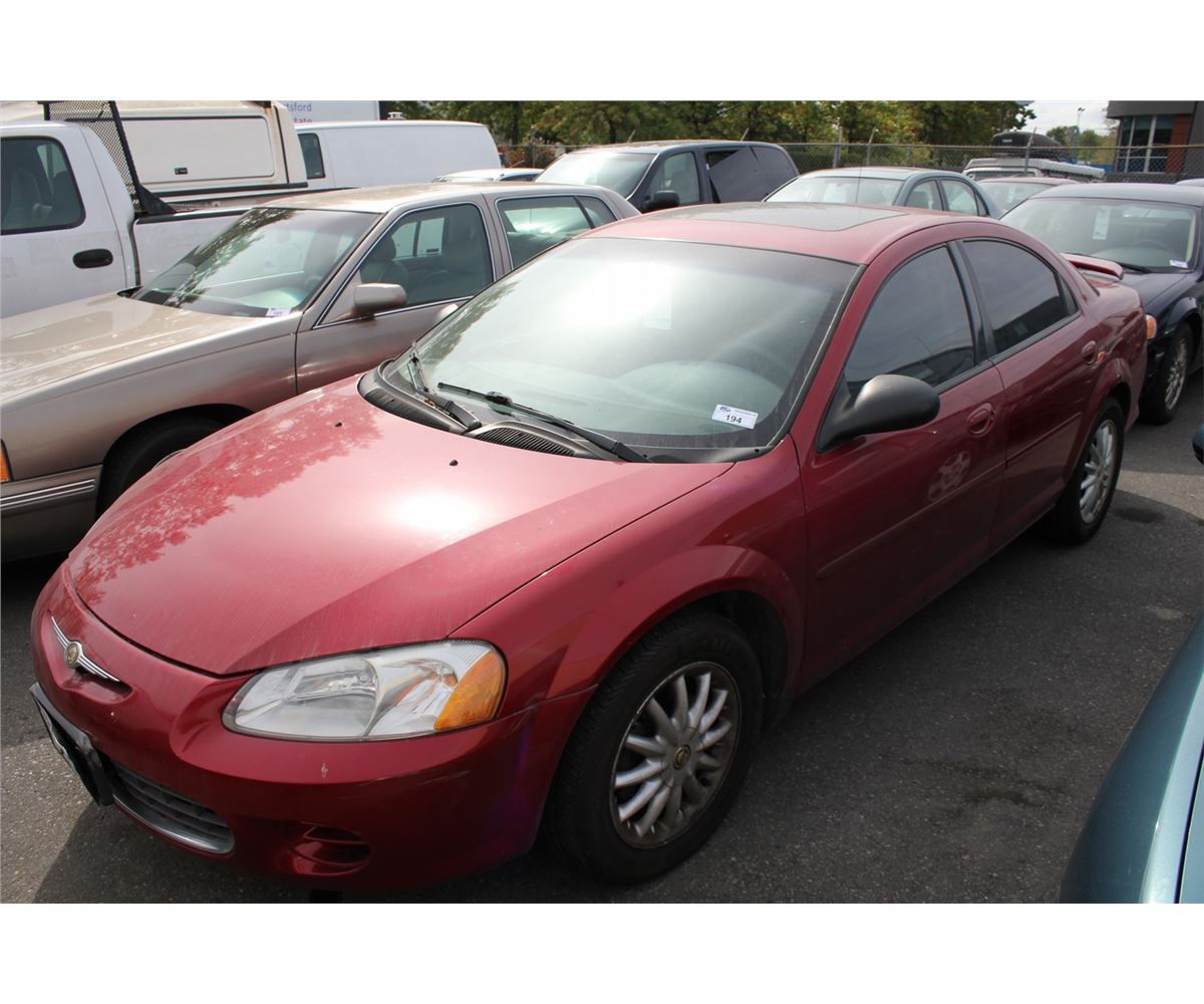 2002 CHRYSLER SEBRING LX, 4 DOOR SEDAN, RED, VIN # 1C3EL46R92N148877 98,169KMS, GASOLINE 2.7L, AUTOMATIC RD,CD,PW,CC,PS,AW,PL,TW,AC,SR,CR DEAD BATTERY NO DECS