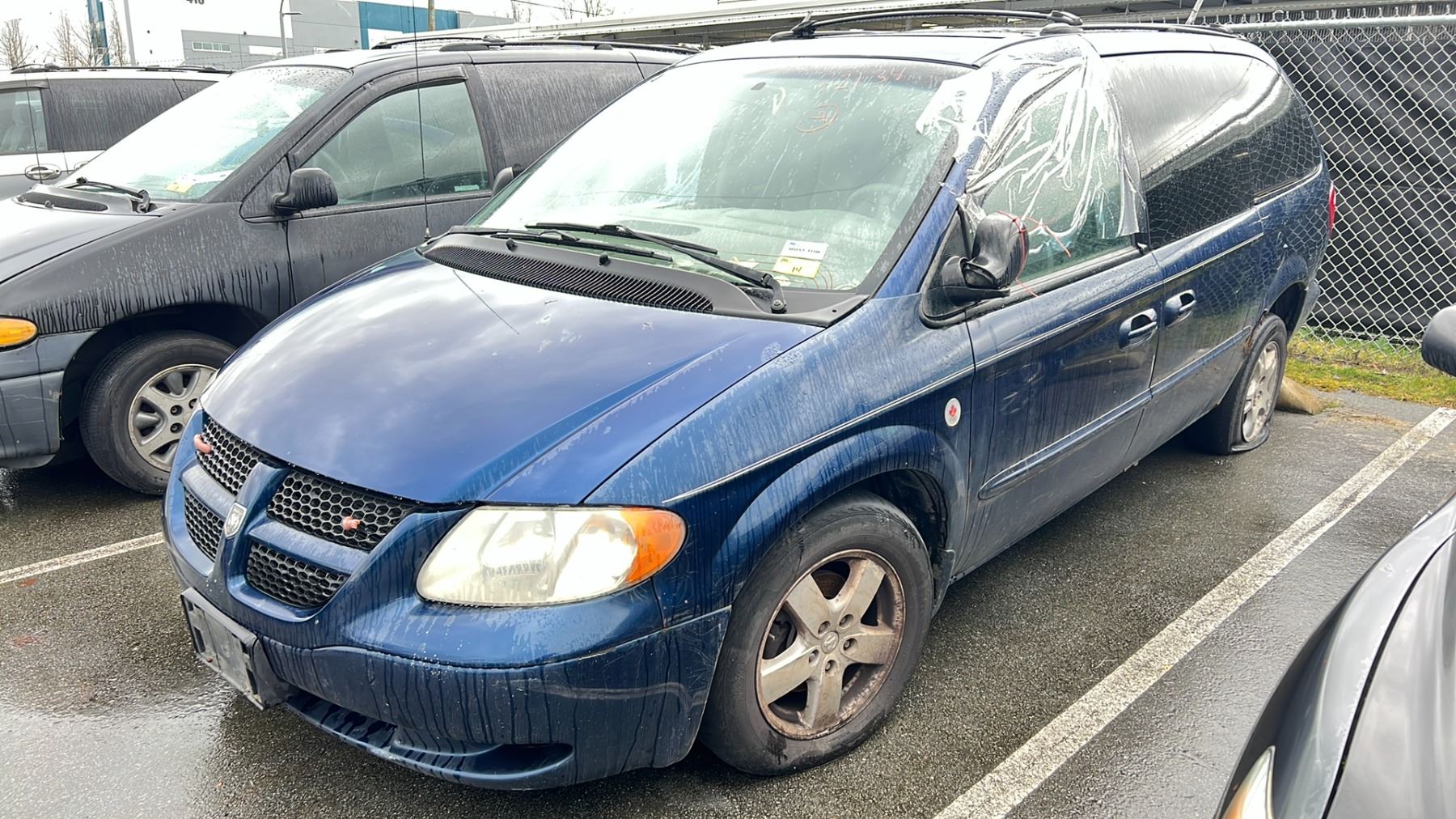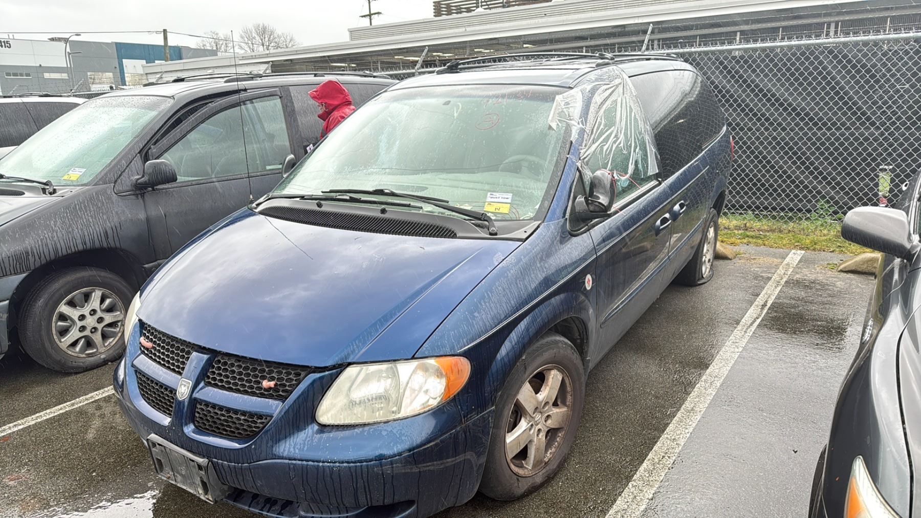 2002 DODGE GRAND CARAVAN SPORT, 4DR 3 PASS VAN, BLUE, VIN 2B4GP44R62R617581 TMU, GAS (G), AUTOMATIC, HAS REGISTRATION, NO KEYS, FEATURES: RADIO, COMPACT DISC, CRUISE CONTROL, ALLOY WHEELS, POWER LOCKS, AIR COND, RUST ISSUES, *MUST TOW, NO KEYS, NOT SUITABLE FOR TRANSPORTATION*, BROKEN PASS WINDOW, CRACKED WINDSHIELD, FLAT TIRES, 1 X NO DETAILS, 3 X ESTIMATE $5,105.72, 3 X REPAIRED $4,823.98