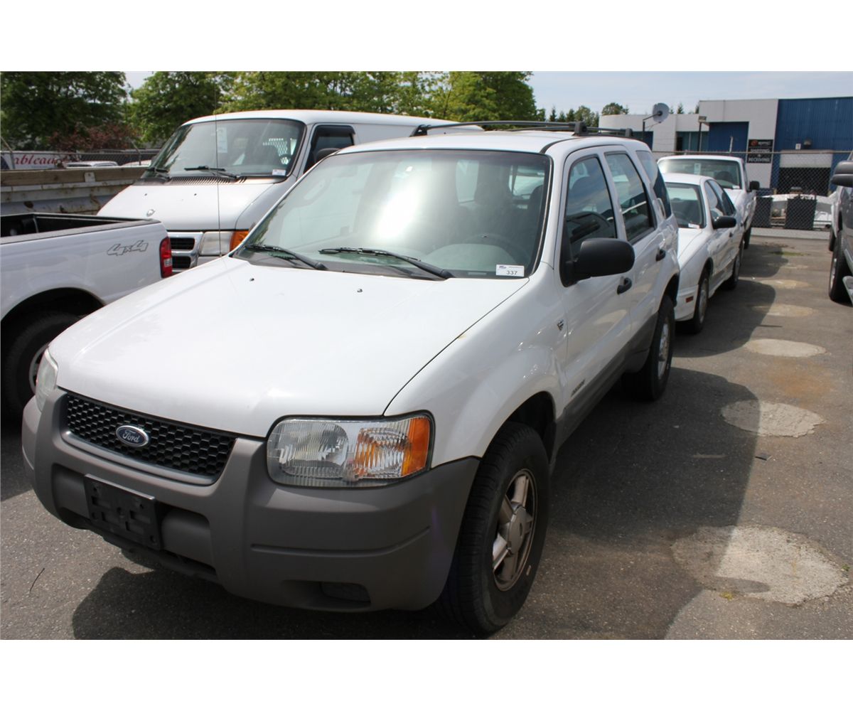 2002 FORD ESCAPE XLS, 4 DOOR SW, WHITE, VIN # 1FMYU02162KD56176 224,581KMS, GASOLINE 3.0L, AUTOMATIC RD,CD,PW,CC,PL,4W,AC AIRCARE EXP AUG 12/15 DEC $2,079.69