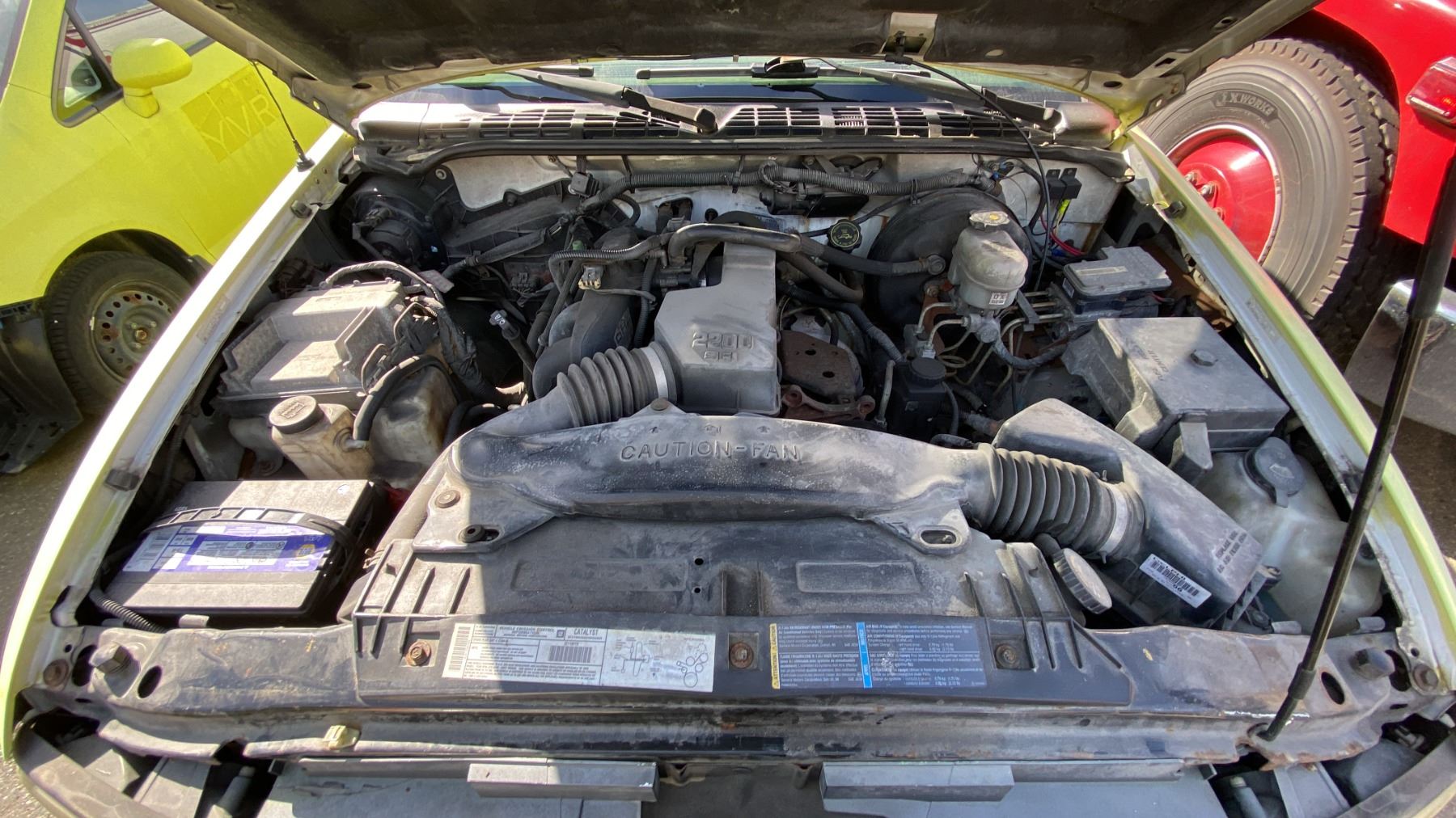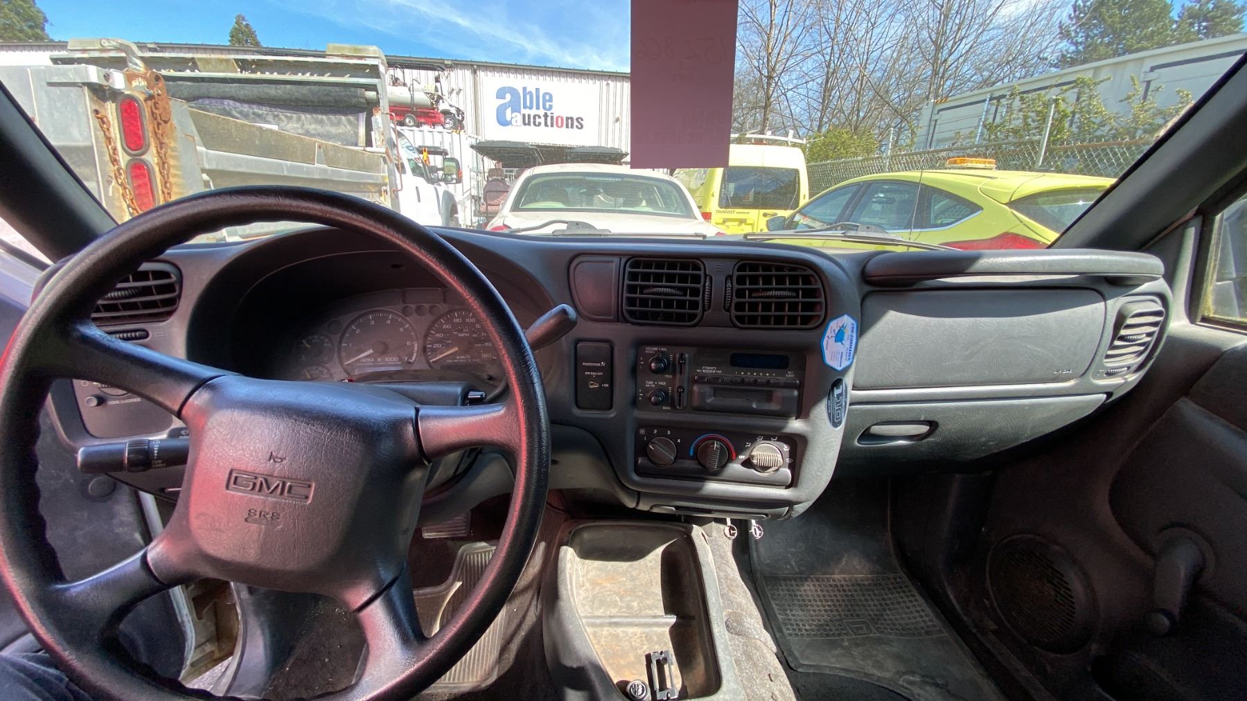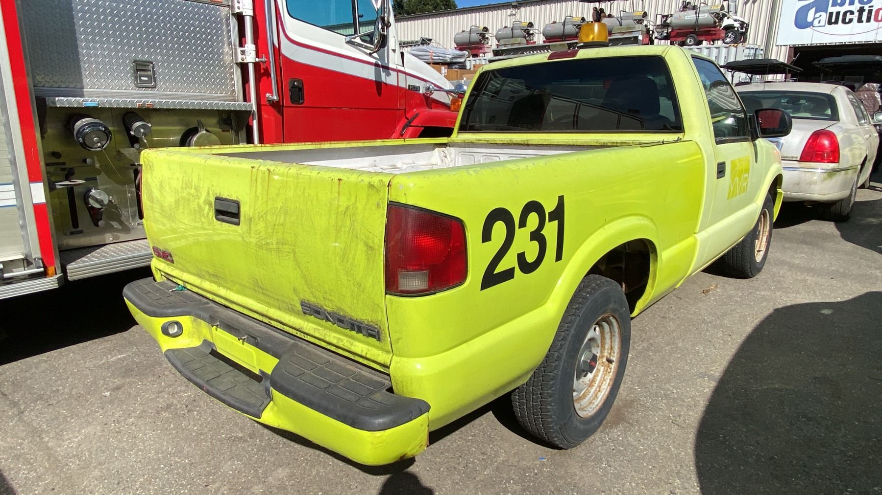 2002 GMC SONOMA, 2DR PICKUP, YELLOW, VIN 1GTCS145X28128690, 152,866 KMS, GAS (G), 2.2L, AUTOMATIC, HAS REGISTRATION, HAS KEYS, NEEDS JUMP, FEATURES: RADIO, NO ICBC DECLARATIONS, SERVICE LIGHT, WINDOW HANDLE BROKEN DRIVER SIDE, SEAT RECLINE HANDLE BROKEN PASSENGER SIDE, MINOR SCRATCHES AND DENTS