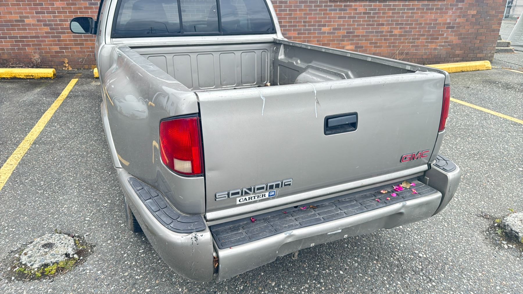 2002 GMC SONOMA SLS 3 DOOR EXT CAB PICK UP GREY VIN 1GTCS195628128694 336,228 KMS, GAS (G), 2.2LTR, AUTOMATIC, HAS REGISTRATION, HAS KEYS FEATURES: RADIO, COMPACT DISC, AIR COND, RUST ISSUES ABS LIGHT ON, RIGHT SIGNAL LIGHT ALWAYS ON SHOWING ON DASHBOARD, NEEDS NEW BATTERY, EXHAUST LEAK, CRACKED FRONT BUMPER & PAINT CHIPS, PAINT ON TAILGATE, REAR BUMPER DENTED & PAINT CHIPS, TAILGATE HANDLE LOOSE, SCRATCHES ALL OVER BODY & BOX, TAPE RESIDUE ON REAR WINDOW, A/C NOT WORKING 1 X ICBC NO DETAILS, 4 X ICBC GLASS TTL $2181.44