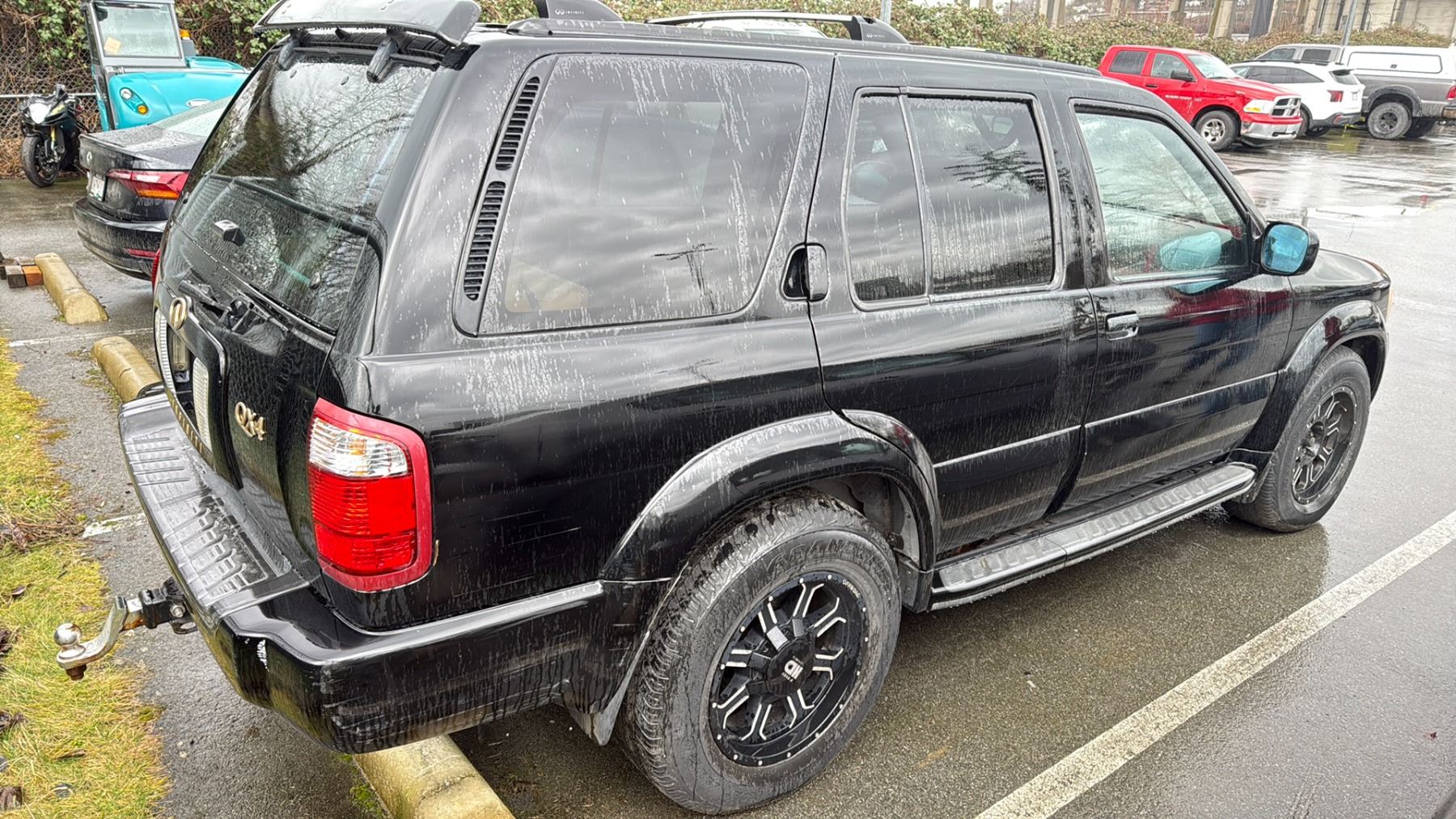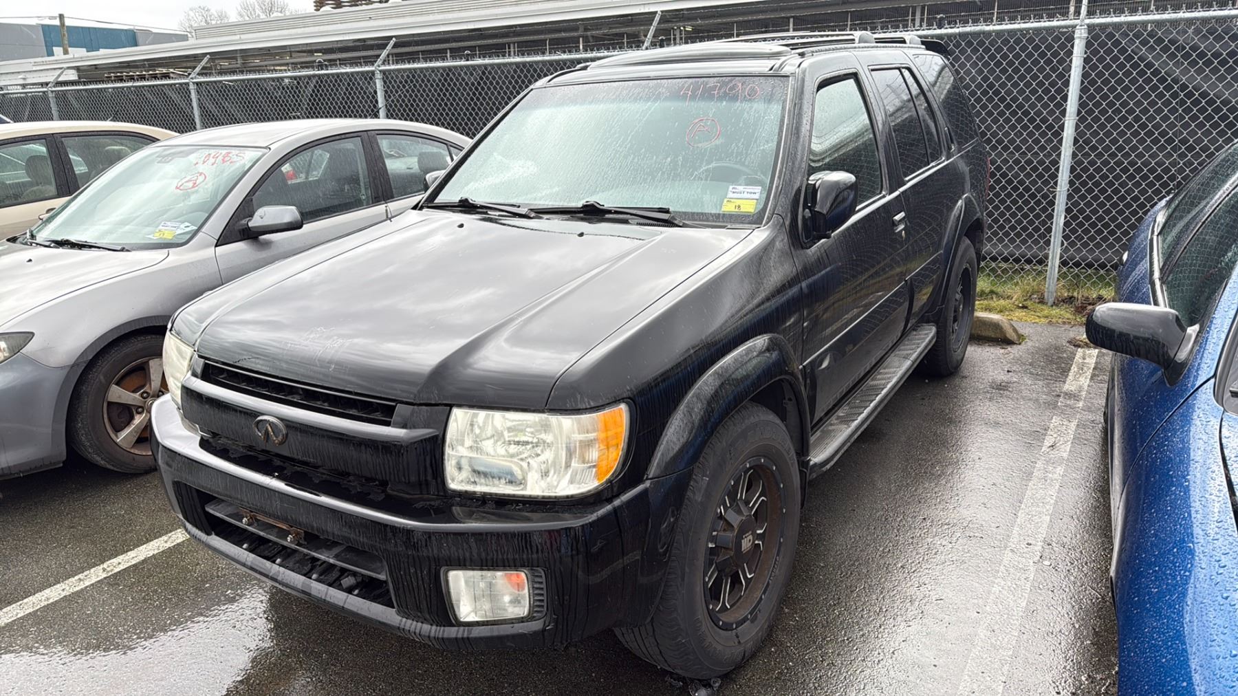 2002 INFINITI QX 4, 4DR SUV, BLACK, VIN JNRDR09Y12W252128 TMU, GAS (G), V6, AUTOMATIC, HAS REGISTRATION, NO KEYS, FEATURES: RADIO, COMPACT DISC, POWER WINDOWS, ALL WHEEL DRIVE, POWER SEATS, TRAILER HITCH, POWER LOCKS, 4 WHEEL DRIVE, LEATHER TRIM, *MUST TOW, NO KEYS, NOT SUITABLE FOR TRANSPORTATION*, 2 X NO DETAILS, 1 X ESTIMATE $71.89, 3 X REPAIRED $1,118.79