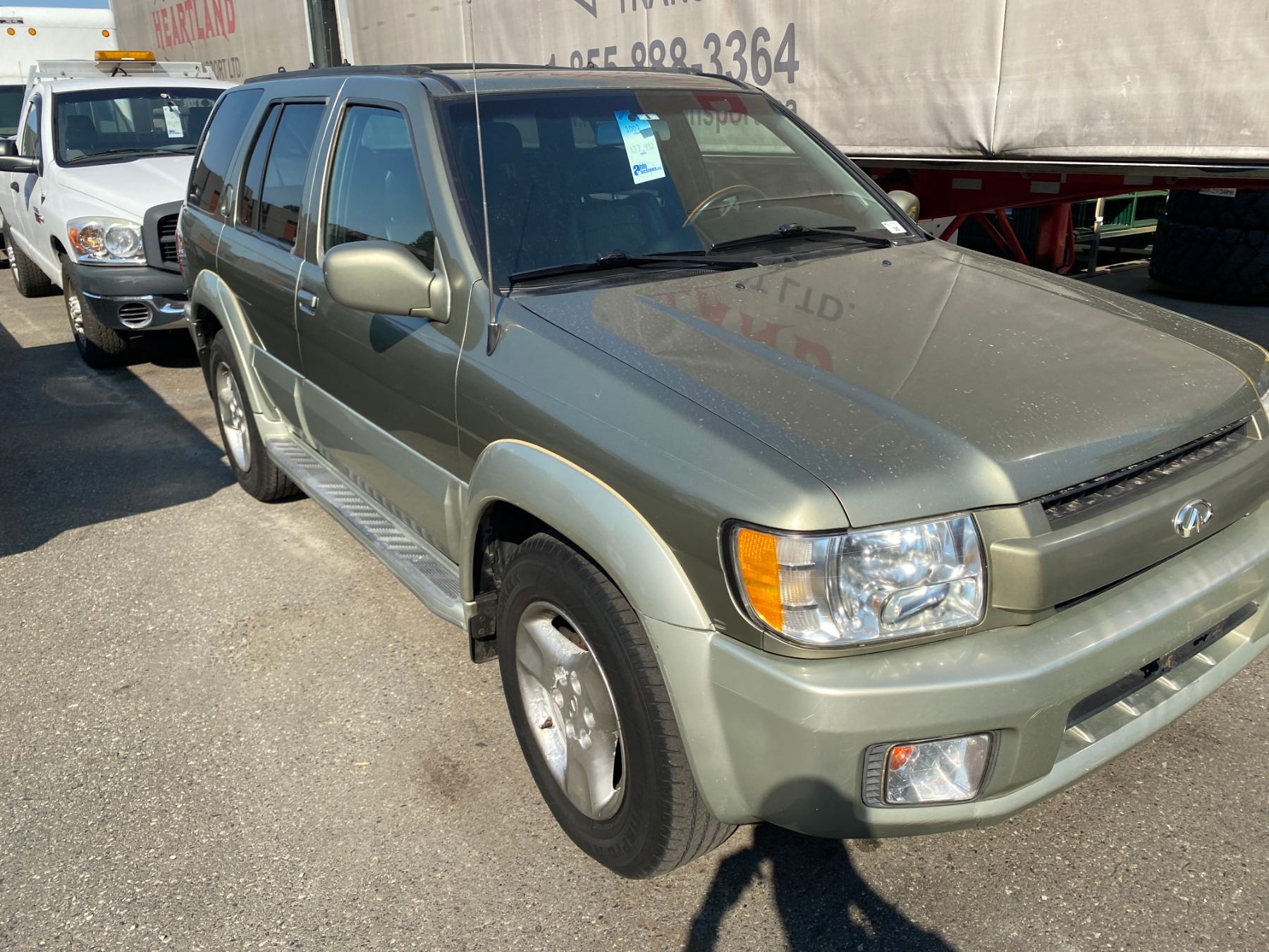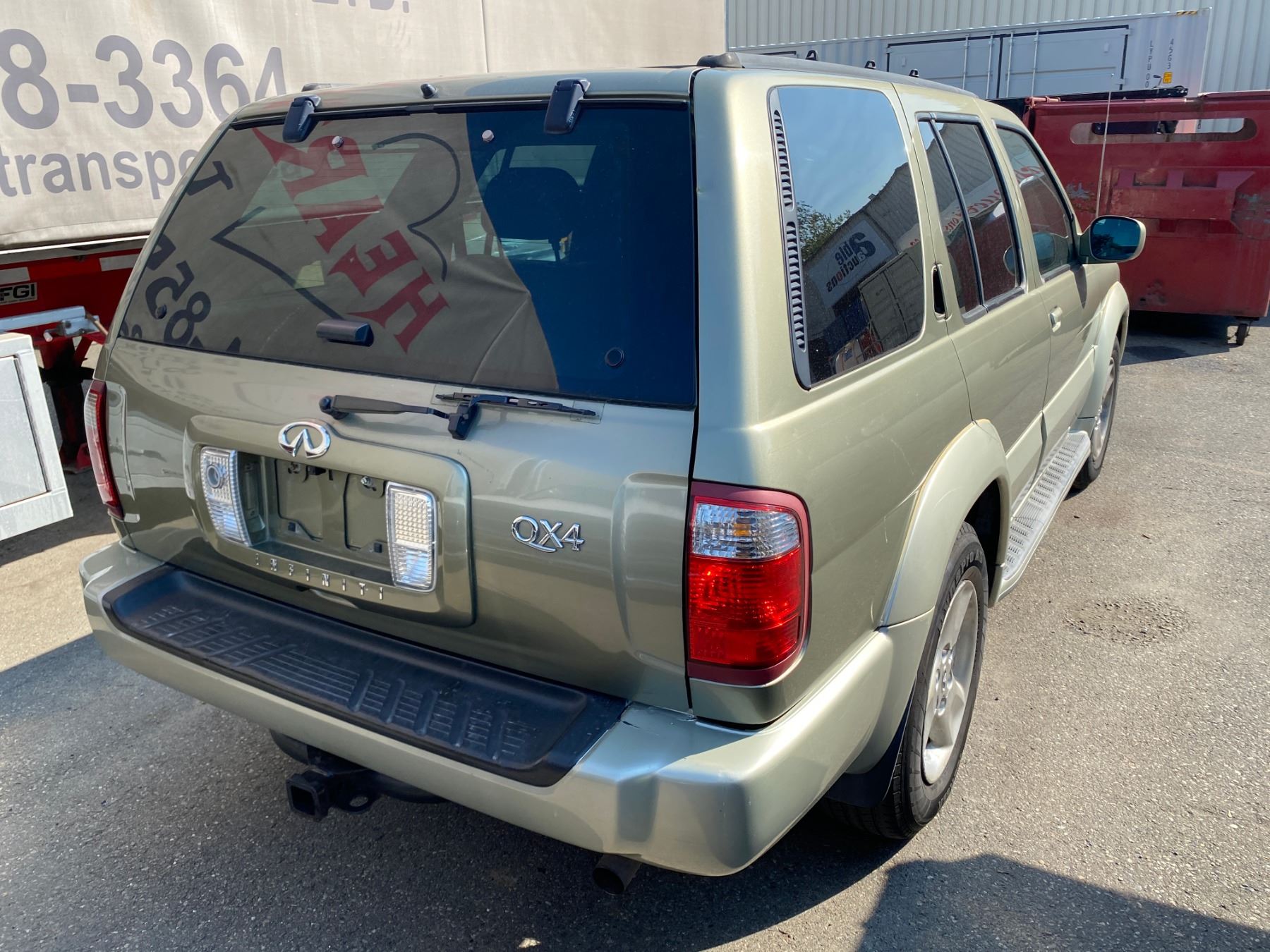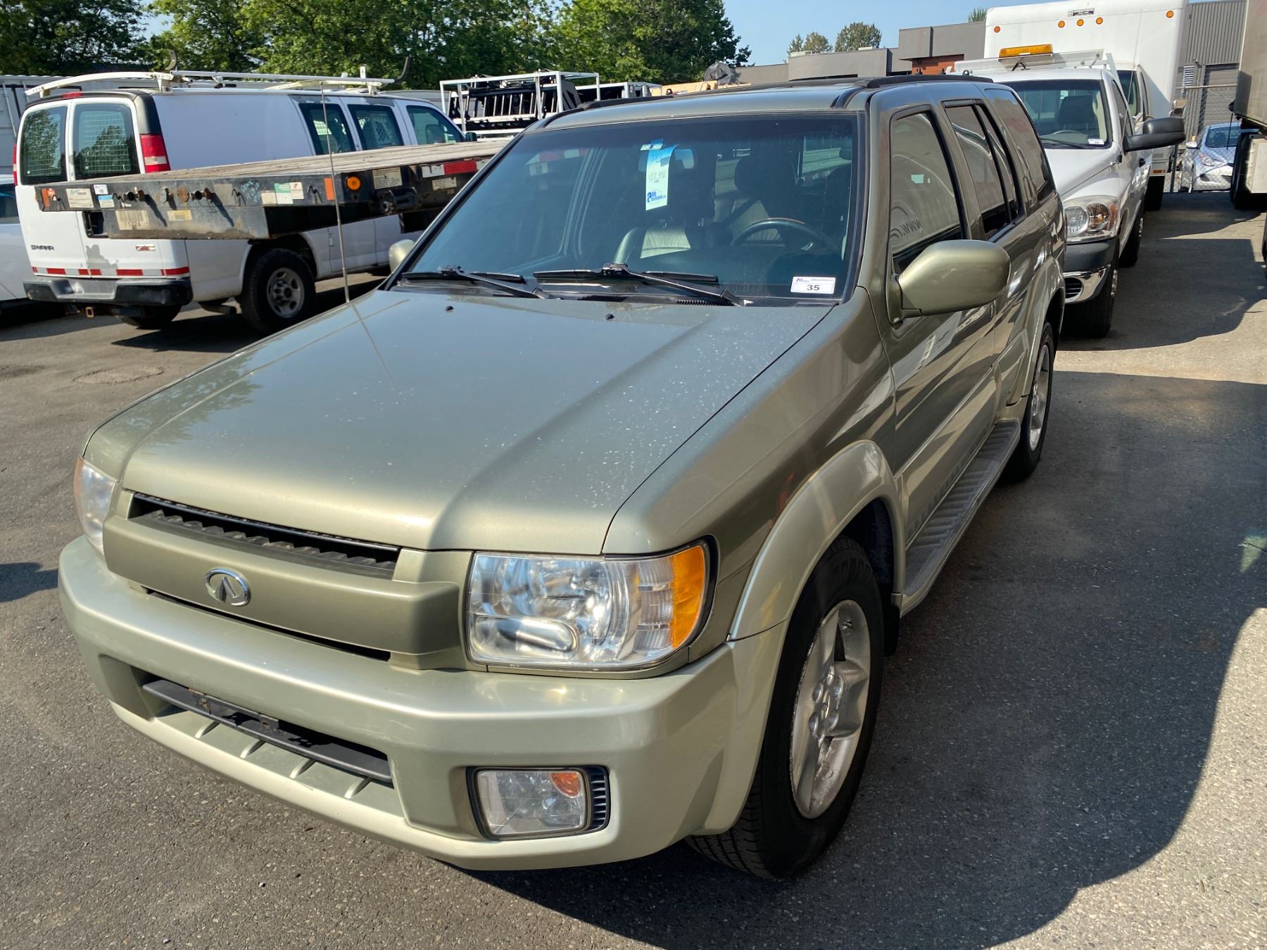 2002 INFINITI QX4 4 DOOR BROWN VIN#JNRDR09YX2W256419 137,992 MILES V6 3500, GAS, AUTO RD,CD,PW,CC,TH,AW,PL,TW,4W, AC, LT,SR,HS POWER SEAT BROKEN, INTERIOR FRONT SEATS DAMAGED, SCRATCHES ON REAR LEFT DOOR AND BOTH BUMPERS NO ICBC DECLARATIONS