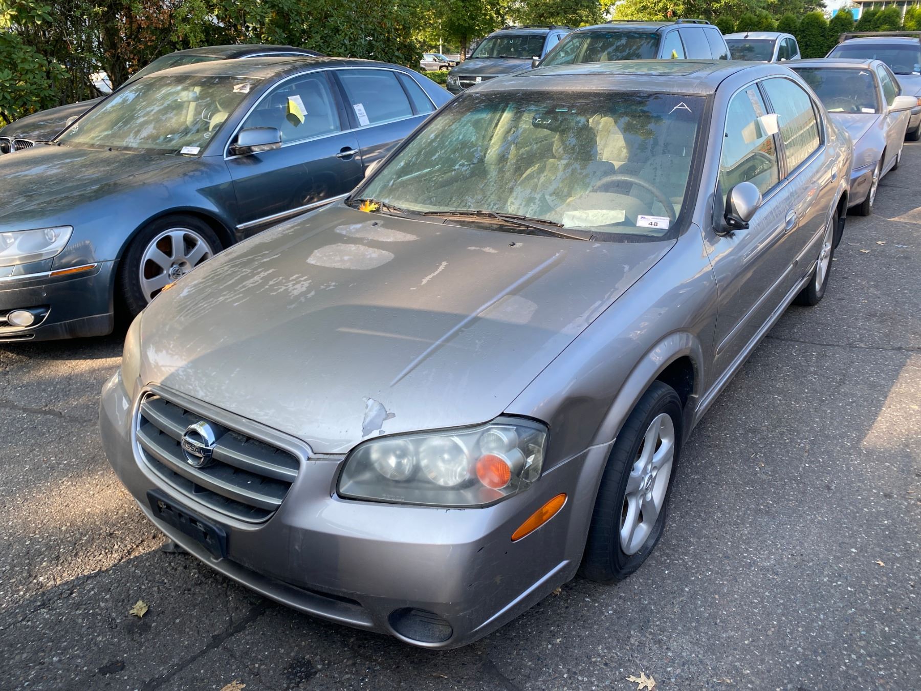 2002 NISSAN MAXIMA 4 DOOR GREY VIN#JNIDA31D82T441431 KMS UNKNOWN GAS AUTO RD, CD, PW, CC, PS, AW, PL, TW, AC, SR FLAT TIRES, PAINT, CHIPPED HOOD ICBC DECLARATIONS $1,876.79 *NO KEY, MUST TOW, NOT ROADWORTHY*