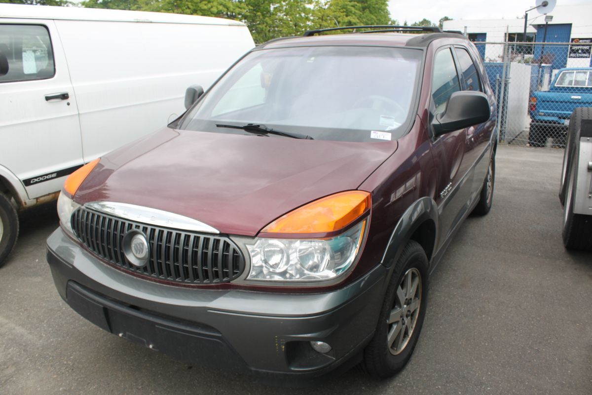 2002 RED BUICK RENDEZVOUS 4DR SUV 204,638KM 3.4L GAS AUTOMATIC VIN:3G5DA03E625552708 REGISTERED IN BC & ONT AS NORMAL - 1 VANDALISM CLAIM $353.48 - DEAD BATTERY - PAINT POOR - RD CD PW CC TH PL TW AC FLAT TIRES, NOT ROADWORTHY. MUST TOW