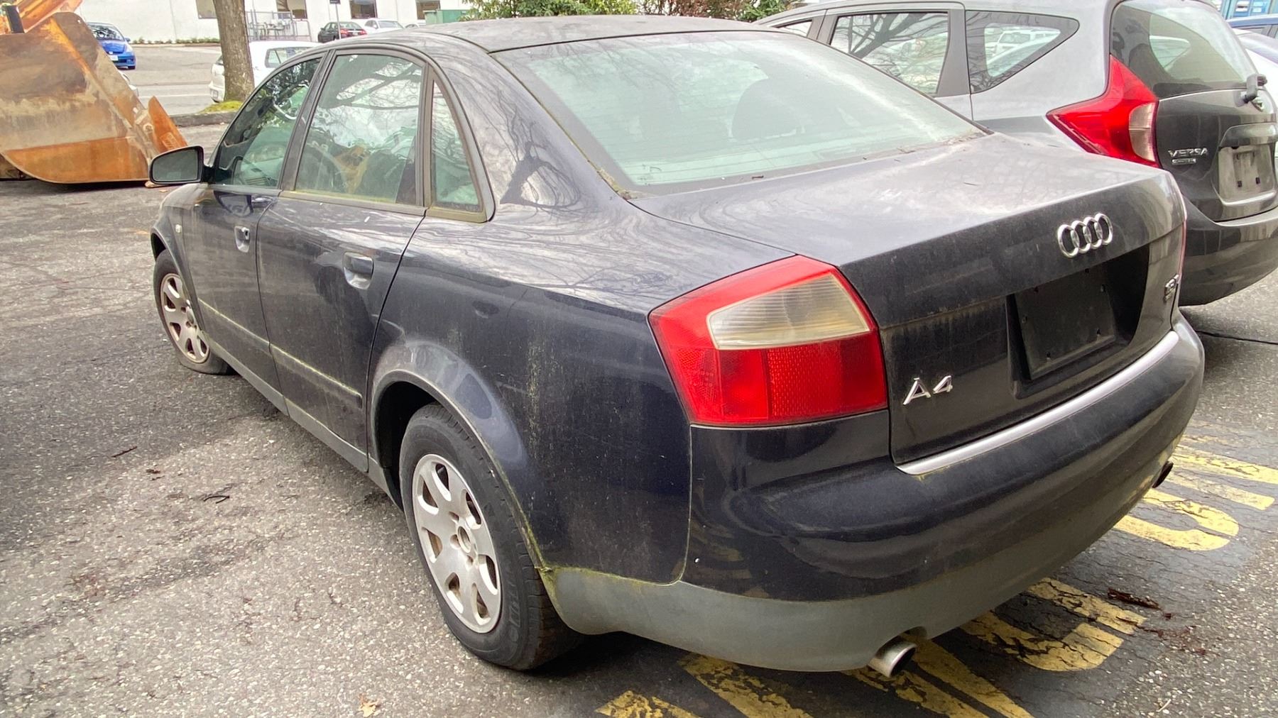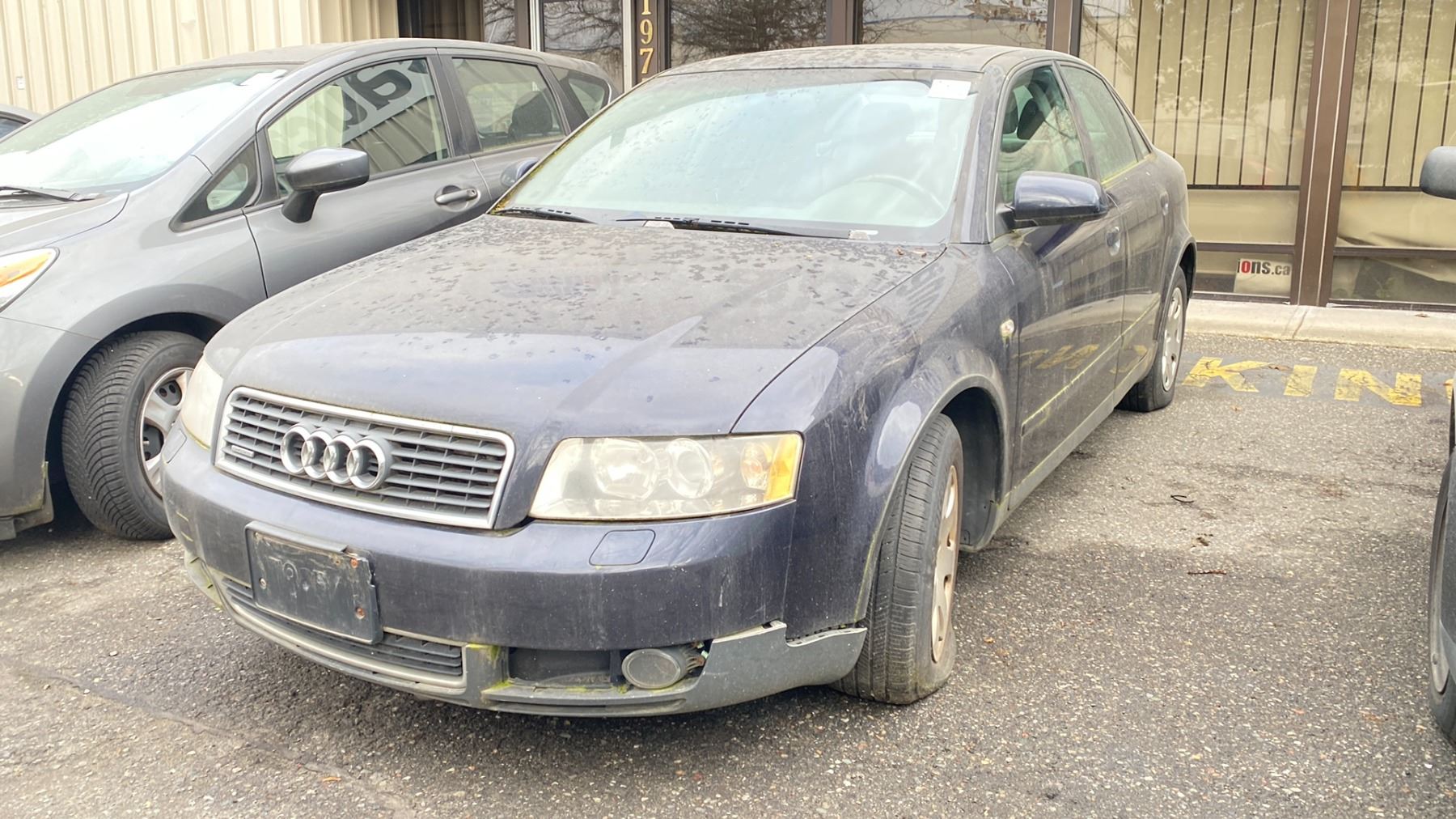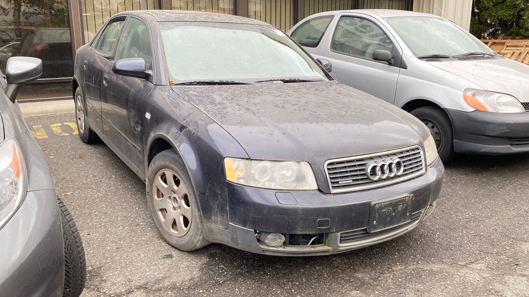 2003 AUDI A4 1.8T, 4DR SEDAN, BLUE, VIN WAULC68E33A228481 TMU, GAS (G), 1.8L, AUTOMATIC, HAS REGISTRATION, MUST TOW, NO KEYS, MOLD VISIBLE, ODOR PRESENT, FEATURES: POWER WINDOWS, CRUISE CONTROL, POWER SEATS, POWER LOCKS, TILT WHEEL, AIR COND, LEATHER TRIM, SUNROOF, HEATED SEAT, *NOT SUITABLE FOR TRANSPORTATION* SCRATCHES TO PASS SIDE/REAR BUMPER, FRONT BUMPER DAMAGED, DENT TO PASS DOOR, REAR PASS DOOR TRIM DAMAGED, FLAT TIRES 2X DRIVER SIDE, WINDOW TRIM DAMAGE BACK RIGHT WINDOW, SCRATCHES BACK RIGHT DOOR, 1X ICBC NO DETAILS, ICBC REPAIRED DECS TTL $3561.41