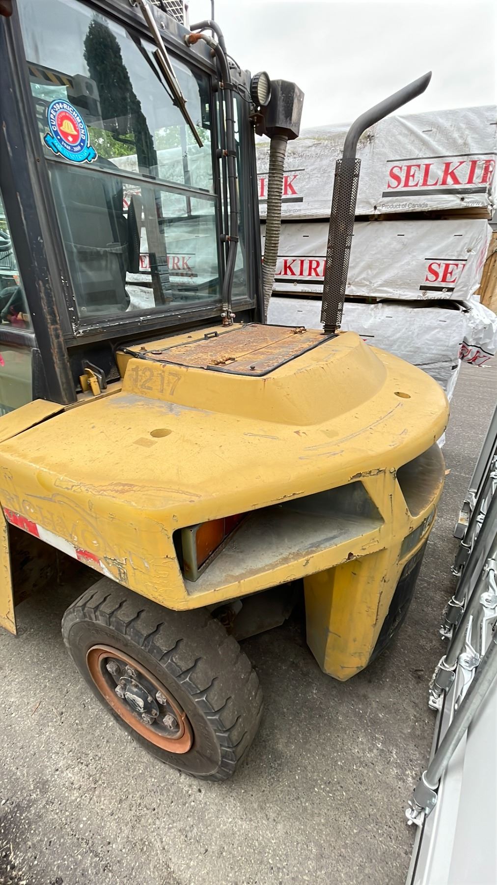 2003 CATERPILLAR 155 FORKLIFT, YELLOW, VIN T20C61507 7,001.00 HOURS, *HOURS NOT VERIFIED*, DIESEL (D), HAS KEYS, HISTORY: X-CITY, FEATURES: GOES FORWARD, GOES IN REVERSE, BRAKES WORK, 11'6" MAST, 2 DOOR, 1 SEATER, MINOR SCRATCHES AND DENTS, MODEL DP70, 13,800LB CAPACITY, FORKLIFT WEIGHT 23,010LBS, 4' LONG 6" WIDE FORKS, REQUIRES KINGPINS, SUSPENSION WORK & TIRES