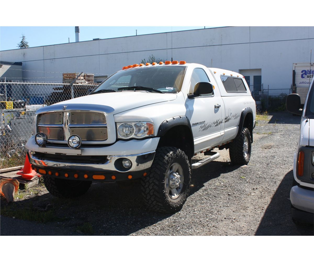 2003 DODGE RAM 2500ST PICKUP VIN# 3D7KU26D63G737874MS 225,864KM,GAS, STANDARD WITH HURST SHIFT 35" NITRO TRAIL GRAPPLER TIRES, 8CYL RD CD PW CC PS TH AW PL AC CR HS AIRCARE EXP APR 12 2015 NO DECS, OUT OF PROVINCE