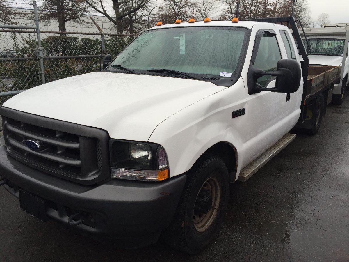 2003 FORD F-350 XL SUPER DUTY, 2 DOOR FLATDECK, WHITE, VIN # 1FDSX34L43EC99246 106,377KMS, GASOLINE, AUTOMATIC, RD, X-CITY, DEC - DECLARATION $7,601.27, DRIVER AND PASS SIDE DAMAGE