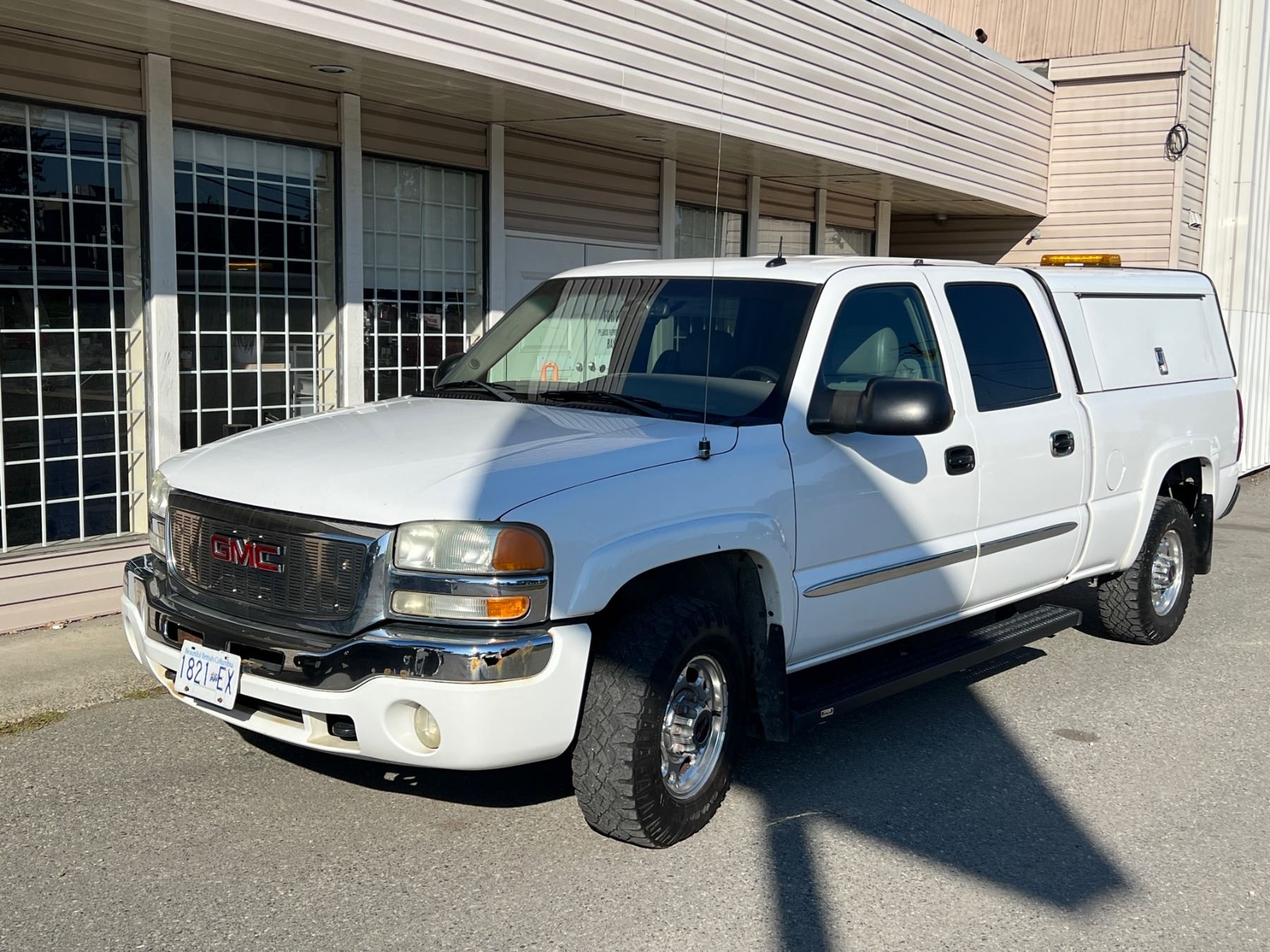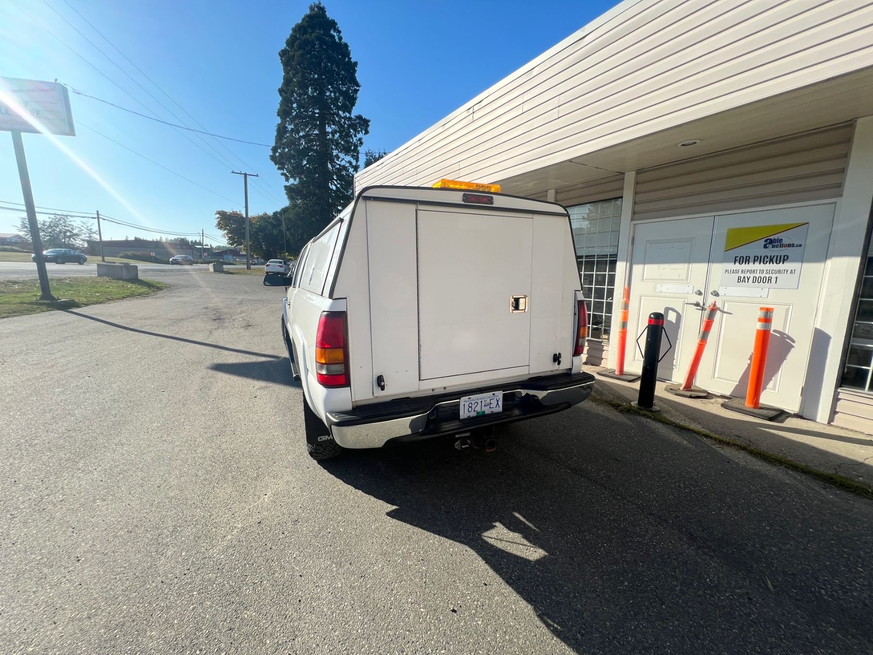 2003 GMC SIERRA, WHITE, PICKUP, GAS, AUTOMATIC, VIN 1GTGK13U73F162982, 142,280KMS, CANOPY AND BEDSLIDE, OOP,RD,CD,PW,PS,TH,AW,PL,TW,4W, NO ICBC DECLARATIONS