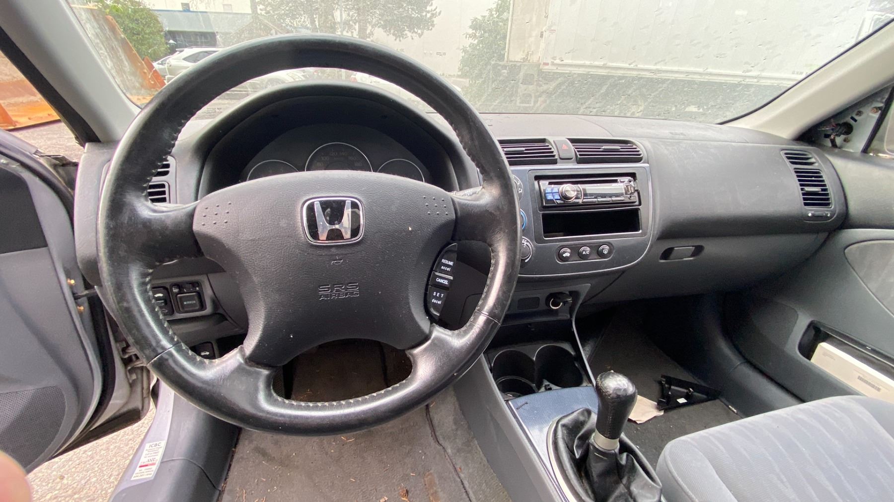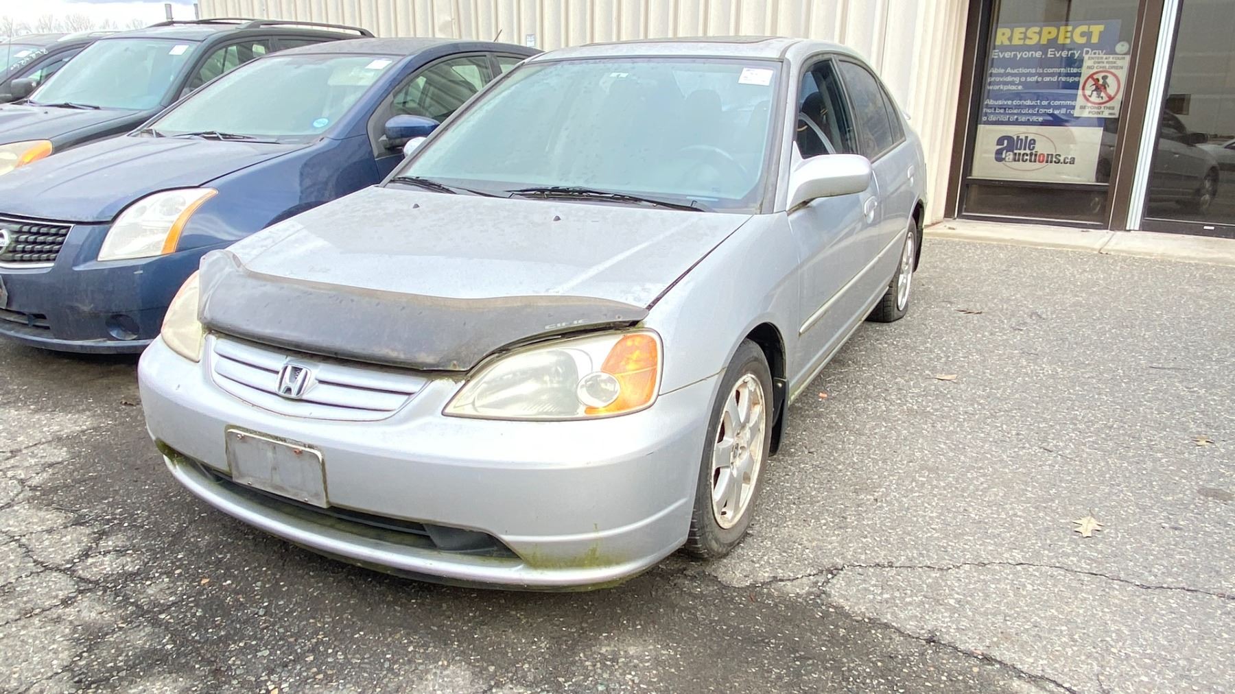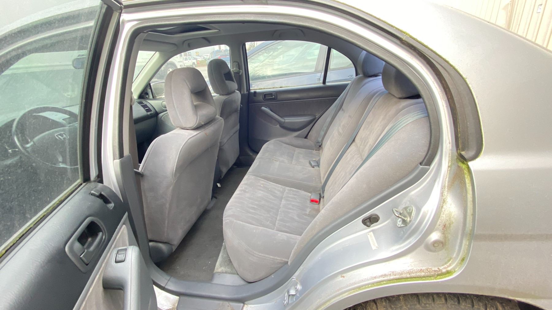 2003 HONDA CIVIC 4DR SEDAN, GREY, VIN 2HGES158X3H918649 161,341 KMS, GAS (G), 1.7L, MANUAL, HAS REGISTRATION, MUST TOW, HAS KEYS, FEATURES: RADIO, COMPACT DISC, POWER WINDOWS, CRUISE CONTROL, POWER LOCKS, TILT WHEEL, AIR COND, LEATHER TRIM, SUNROOF, NO ICBC DECLARATIONS, *NOT SUITABLE FOR TRANSPORTATION* FLAT FRONT PASS TIRE, FLAT REAR DRIVER TIRE, SCRATCHED/DAMAGED REAR BUMPER