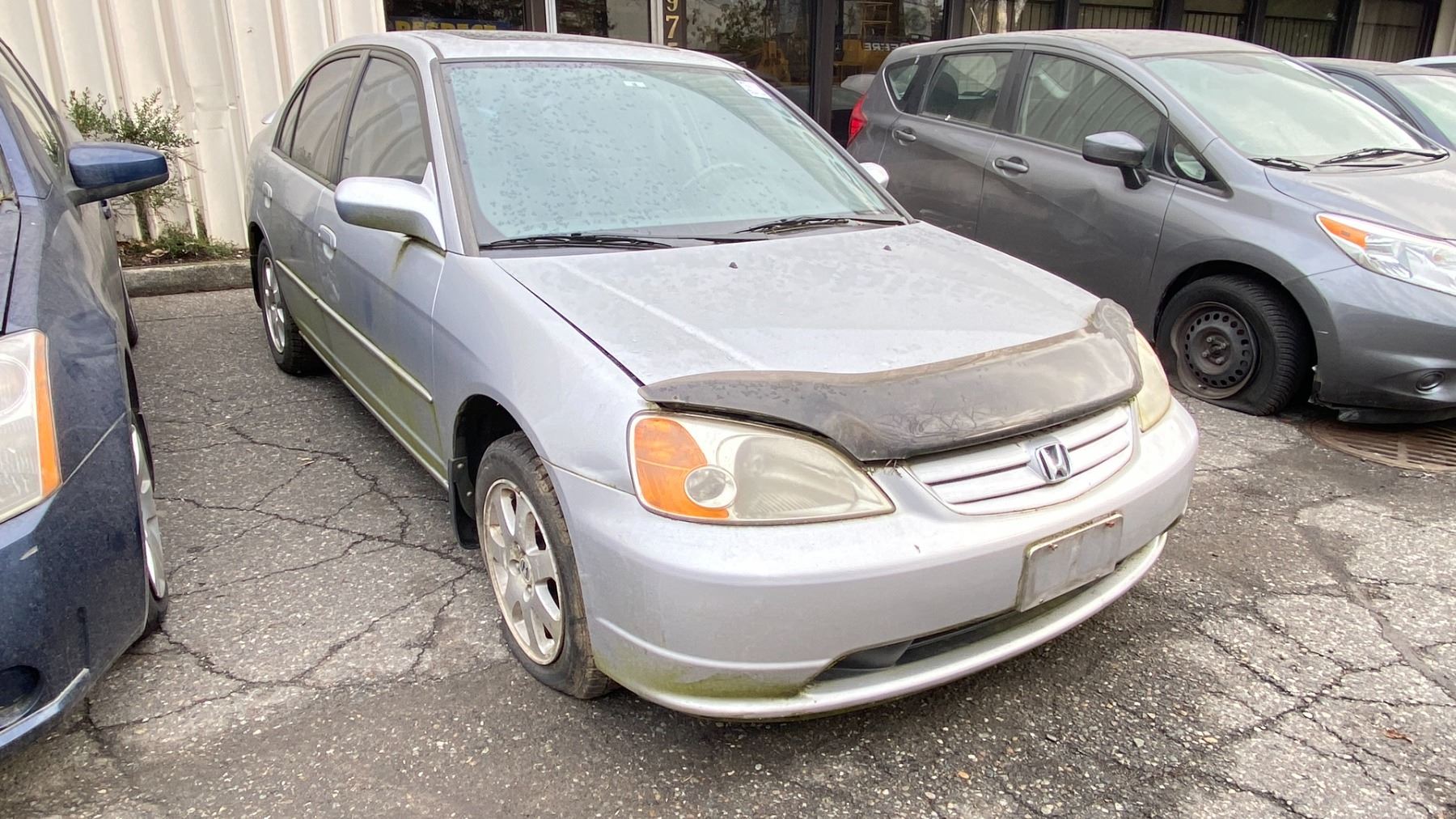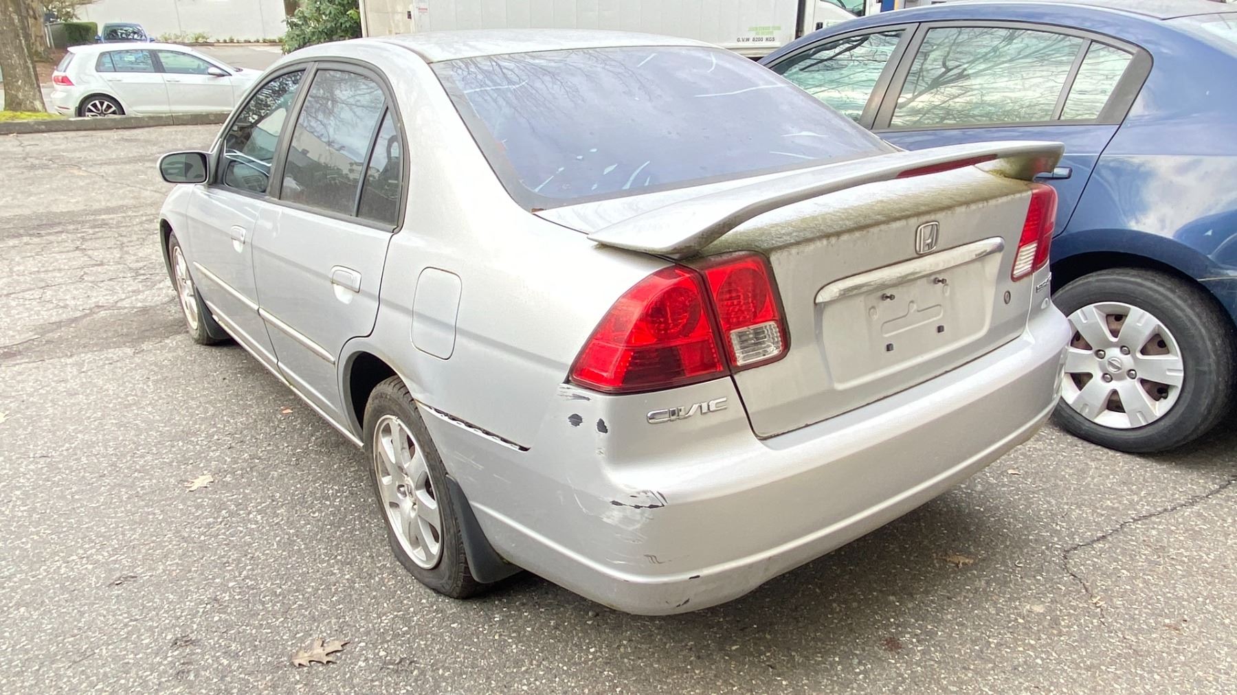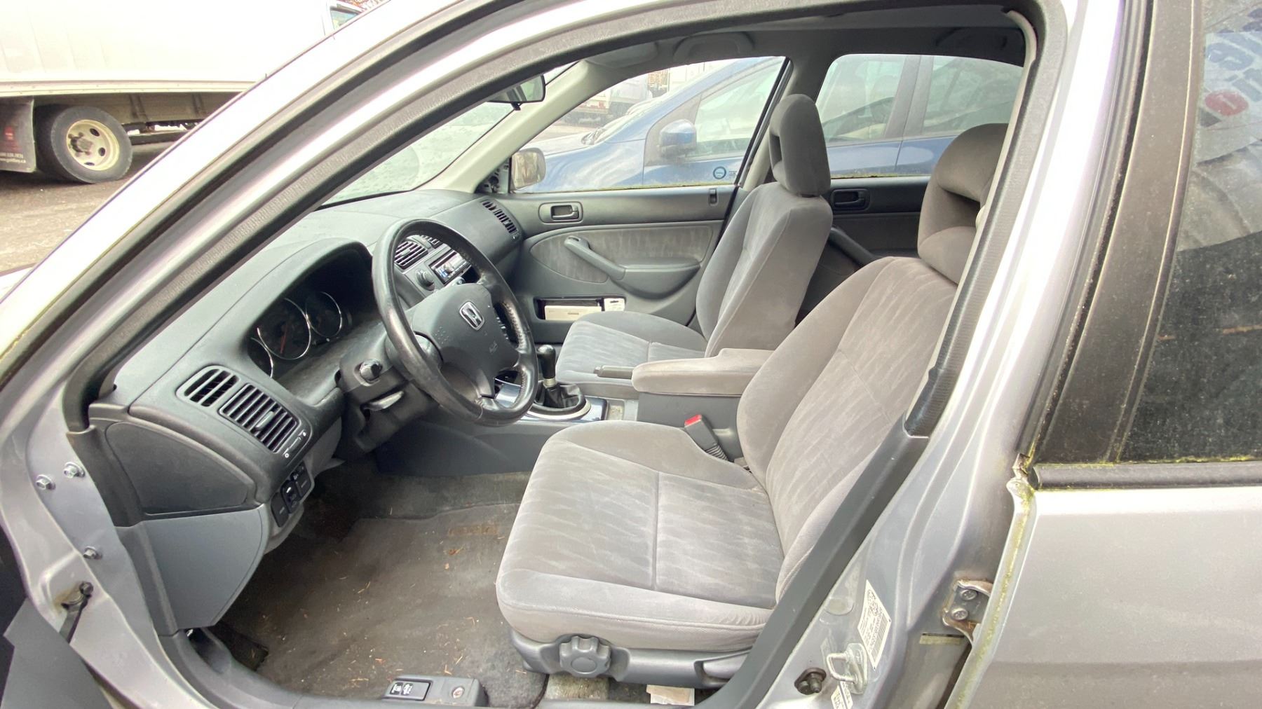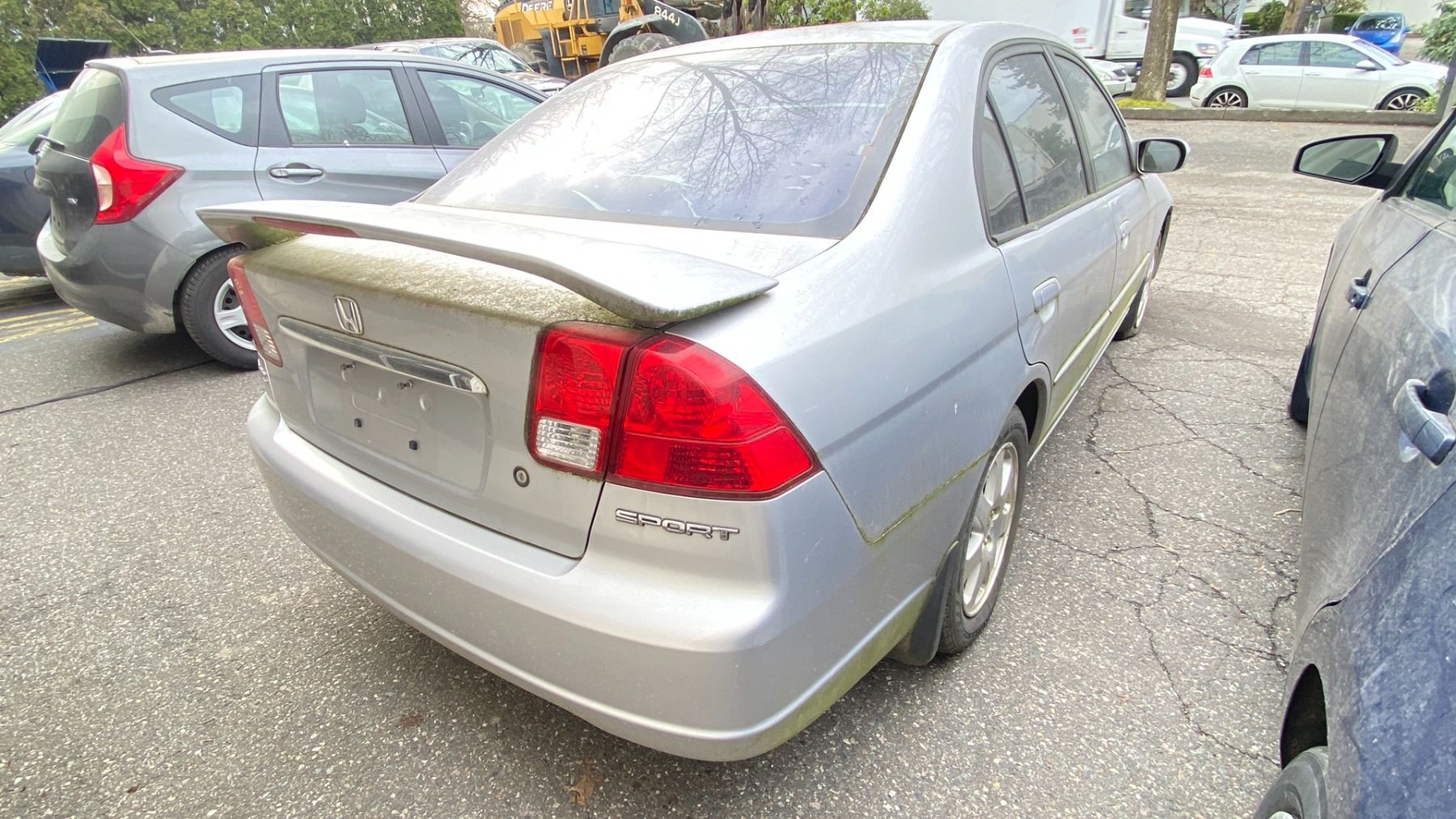2003 HONDA CIVIC 4DR SEDAN, GREY, VIN 2HGES158X3H918649 161,341 KMS, GAS (G), 1.7L, MANUAL, HAS REGISTRATION, MUST TOW, HAS KEYS, FEATURES: RADIO, COMPACT DISC, POWER WINDOWS, CRUISE CONTROL, POWER LOCKS, TILT WHEEL, AIR COND, LEATHER TRIM, SUNROOF, NO ICBC DECLARATIONS, *NOT SUITABLE FOR TRANSPORTATION* FLAT FRONT PASS TIRE, FLAT REAR DRIVER TIRE, SCRATCHED/DAMAGED REAR BUMPER