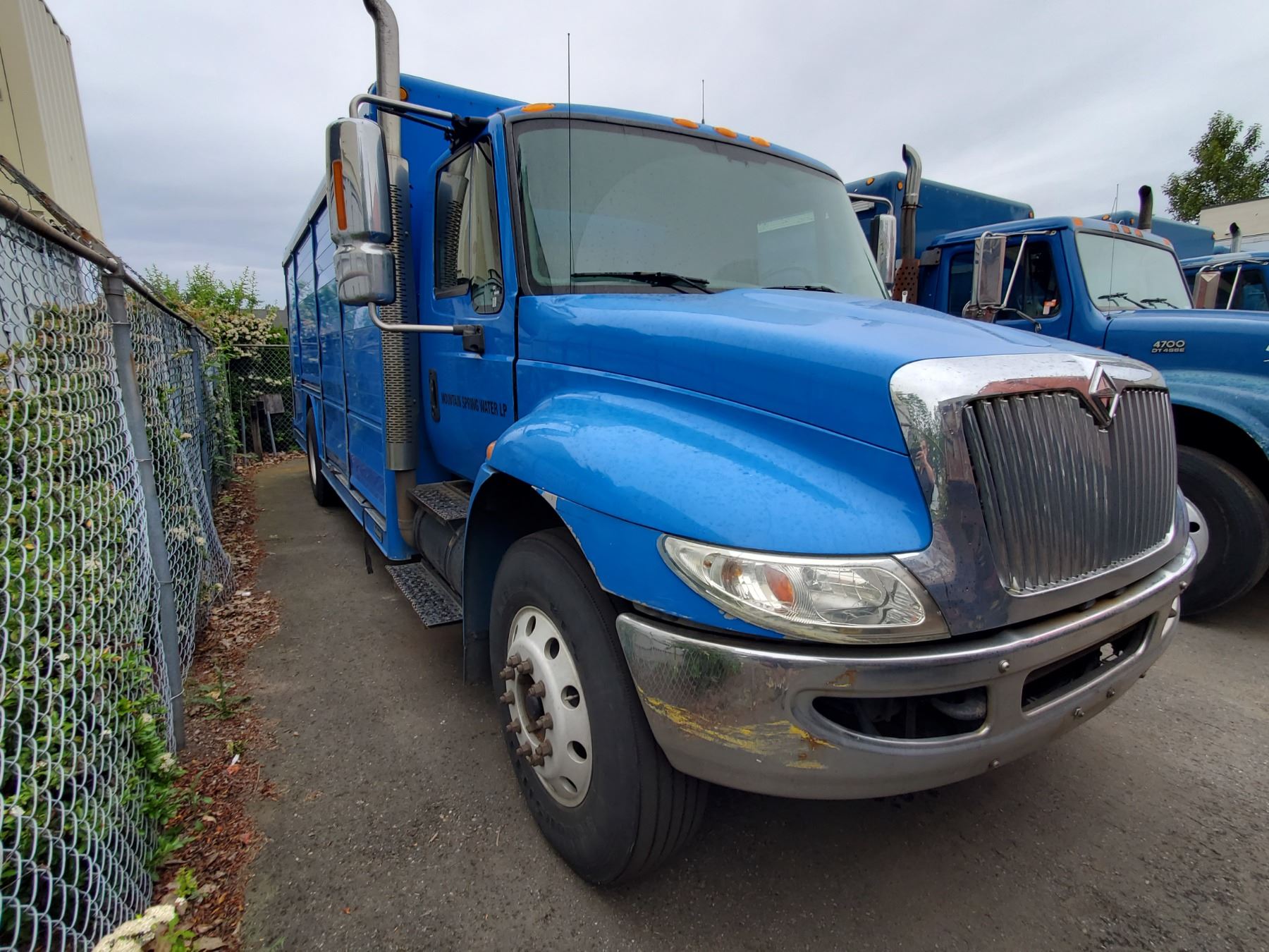 2003 INTERNATIONAL 4300 FREIGHT VAN, BLUE, VIN # 1HTMMAAN13H567333 421,513KMS, DIESEL, AUTO RD,CD,CC,AW,TW,AC, HACKNEY SIDE LOAD INSPECTION TILL APR 2021, 6X ICBC NO DETAILS ICBC REPAIRED DEC TTL $8,057.80