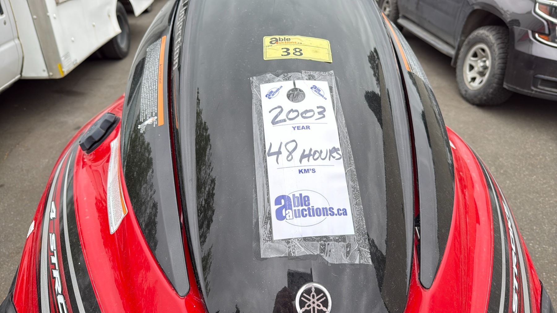 2003 YAMAHA WAVE RUNNER FX CRUISER SEADOO RED/BLACK VIN YAMA2698D303 48.5 HOURS (NOT VERIFIED), GAS (G), HAS KEYS, NO REGISTRATION, FEATURES: HEIGHT OF MAST, FIRE EXTINGUISHER MINOR SCRATCHES, 2 SEATER, 20 VALVE MR-1 EFI 4 STROKE 1000 CC ENGINE, 2 MARINE SAFETY KITS & 2 SPARE BATTERIES , *NO REGISTRATION FOR WAVE RUNNER OR TRAILER* TRAILER 1ZEABLDA32A015444 EZ LOADER, 2-EZWV 1100NB, GVWR 1400 LBS, CARLISLE SURE TRAIL ST, 4.80-12 TIRES, 13' LONG, 4' WIDE
