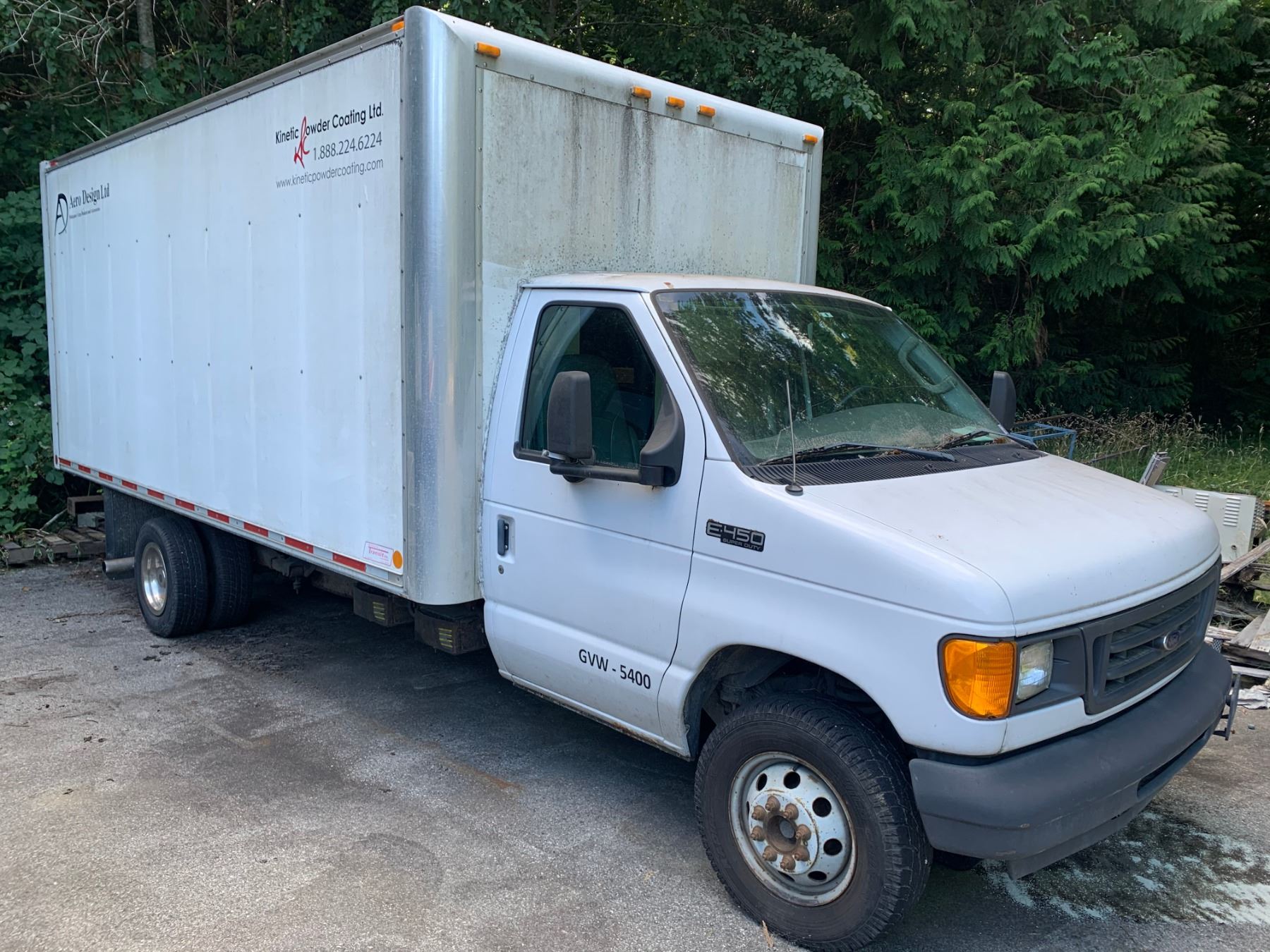 2004 FORD E450 SUPER DUTY FOR PARTS & REPAIR, WITH 16’ BOX, METAL RACKING IN BOX MUST TOW, HAS KEYS, VIN #1FDXE45P34HA45482 OOP, HAS BC REGISTRATION 129,013kms