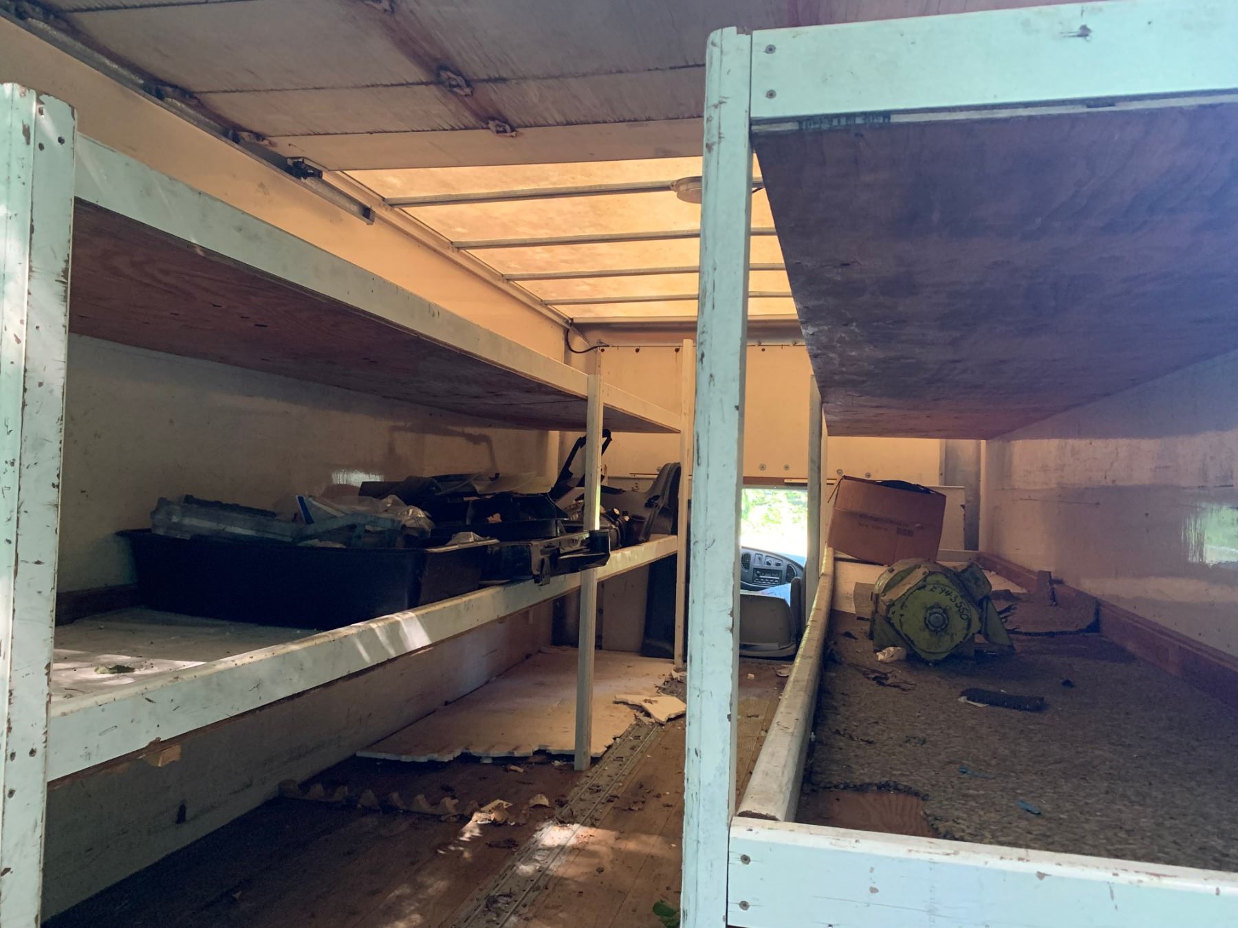 2004 FORD E450 SUPER DUTY FOR PARTS & REPAIR, WITH 16’ BOX, METAL RACKING IN BOX MUST TOW, HAS