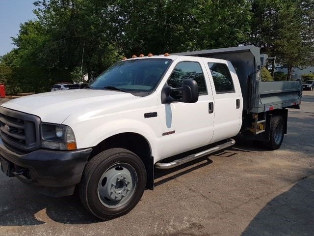 2004 FORD F-450 DUMP TRUCK, 4DR, WHITE, VIN # 1FDXW46PX4EA17384 110,873KMS, DIESEL, AUTOMATIC RD,TH,AC, NO ICBC DECLARATIONS