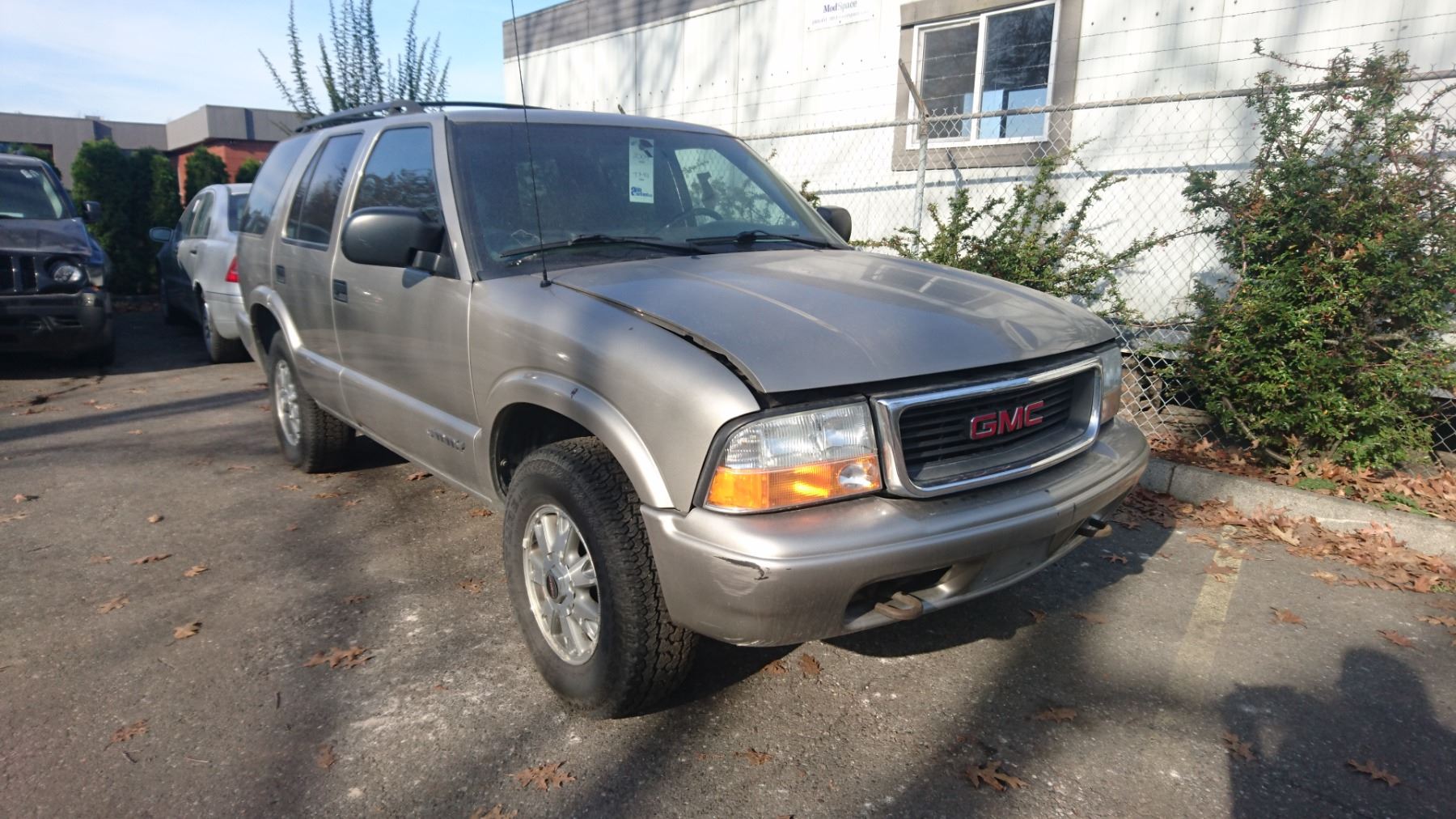 2004 GMC JIMMY, GREY, GAS, AUTOMATIC, VIN#1GKDT13XX4K126517, TMU *NO KEYS, MUST TOW, NOT ROADWORTHY* RD,CD,PW,CC,PS,TH,PL,TW,4W,AC,LT,SR, OOP, LARGE DENT BACK HATCH, 1 ICBC REPAIRED DECLARATION NO DETAILS, 1 ICBC ESTIMATE $1137