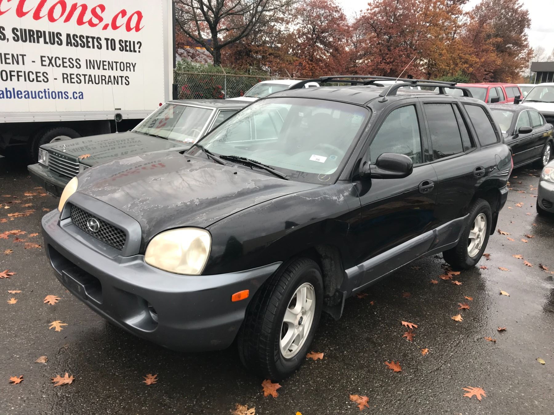 2004 HYUNDAI SANTA FE, 4DR SUV, BLACK ,VIN # KM8SB13D54U793152 300,268KMS, GAS, V6, AUTO RD,CD,PW,CC,AW,PL,TW,AC GLOVE BOX BROKEN, CHIPS IN WINDOW ICBC ESTIMATES $1,865.43, ICBC REPAIRED DECS $1,851.42