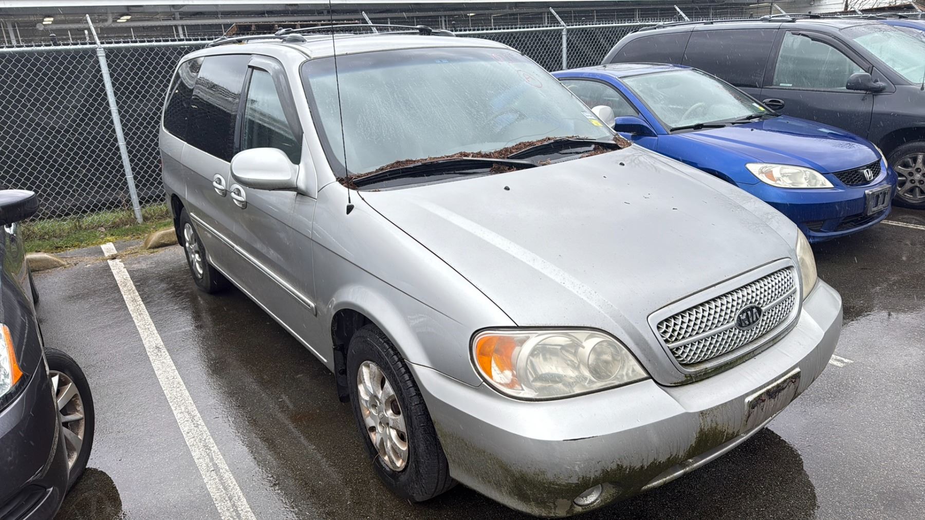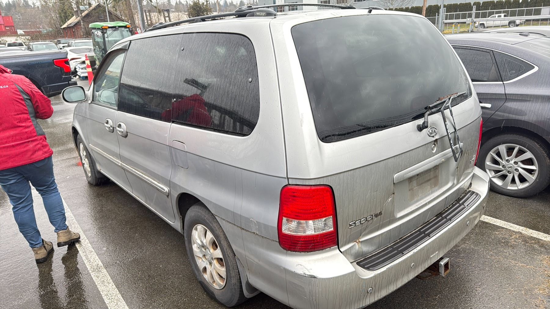 2004 KIA SEDONA LXE, 4DR 5 PASS VAN, GREY, VIN KNDUP131346567846 TMU, GAS (G), AUTOMATIC, HAS REGISTRATION, NO KEYS, FEATURES: RADIO, COMPACT DISC, POWER WINDOWS, TRAILER HITCH, POWER LOCKS, TILT WHEEL, AIR COND, *MUST TOW, NO KEYS, NOT SUITABLE FOR TRANSPORTATION*, CRACKED WINDSHIELD, DENT REAR DOOR, 2 X NO DETAILS, 2 X ESTIMATE $3,601.52, 3 X REPAIRED $3,408.08
