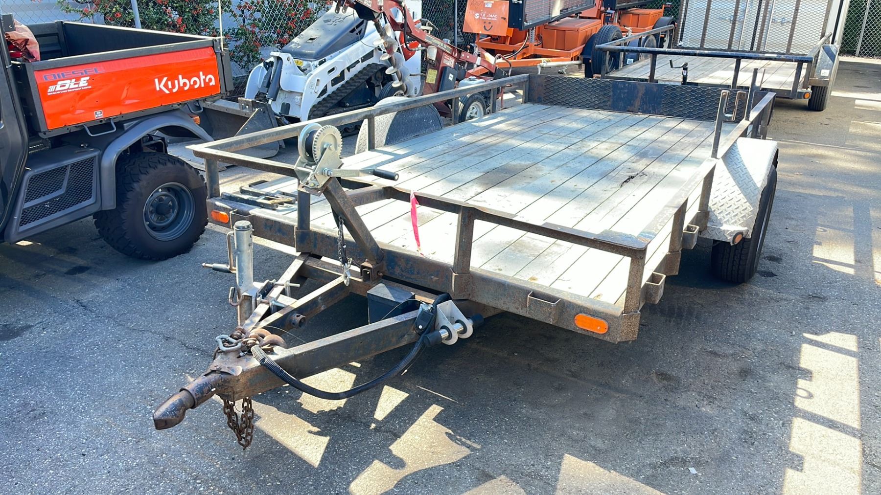 2004 PJ TILT DECK TRAILER, BLACK, VIN 4P5SA121X42049868 HISTORY: X-CITY, HAS REGISTRATION, ALTERED STATUS, 2" BALL HITCH, 13' L X 6'5" W DECK, 1'8" TALL, 3' LONG TONGUE, 16' TOTAL LENGTH, SINGLE AXLE TILT DECK TRAILER, ALUMINIUM CHECKER PLATE FENDERS, FULTON MANUAL TRAILER WINCH, ANGLE IRON SIDES WITH FOLDING RAMPS, MINOR SCRATCHES & DENTS, POOR CONDITION, METAL FATIGUE