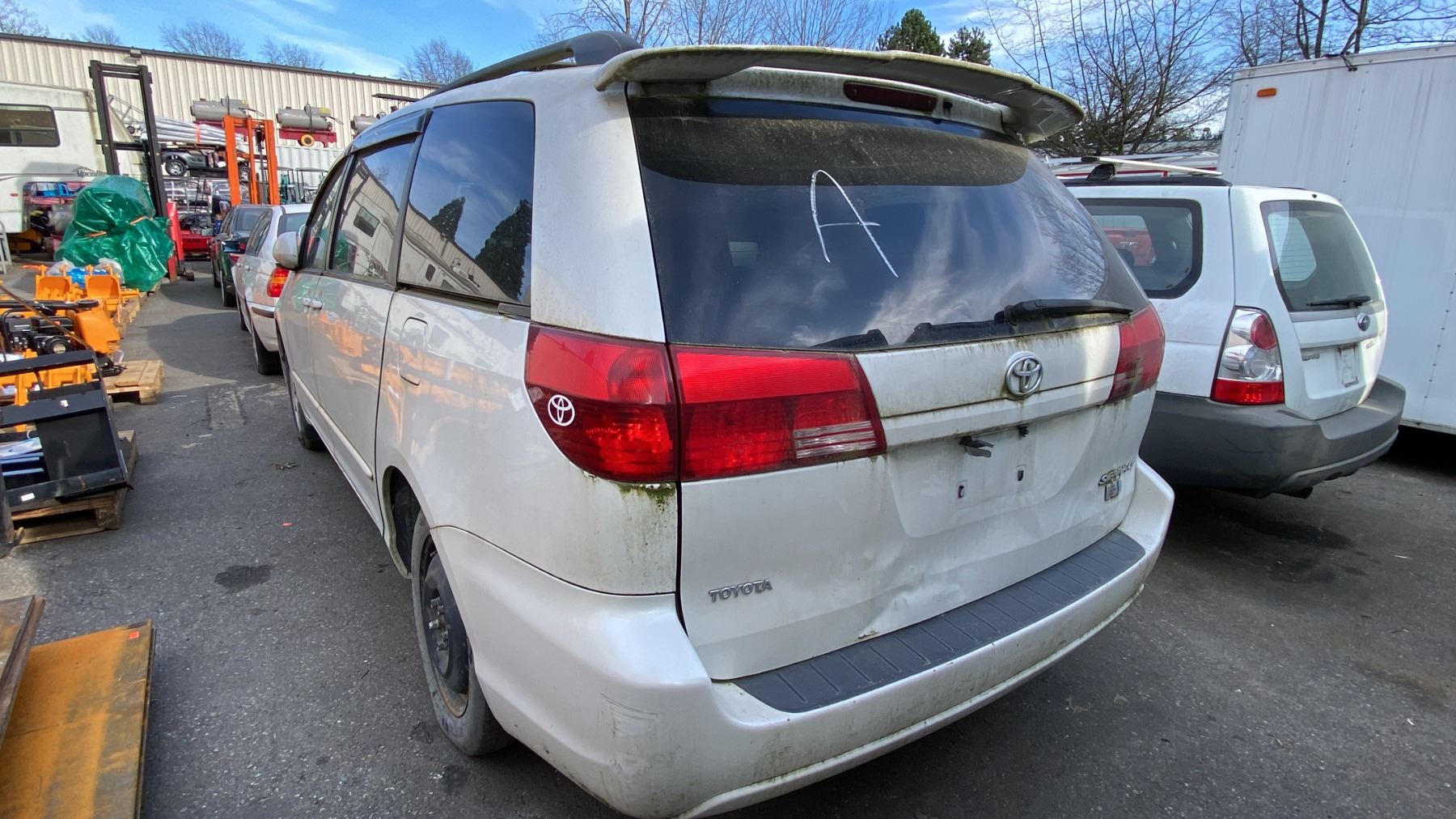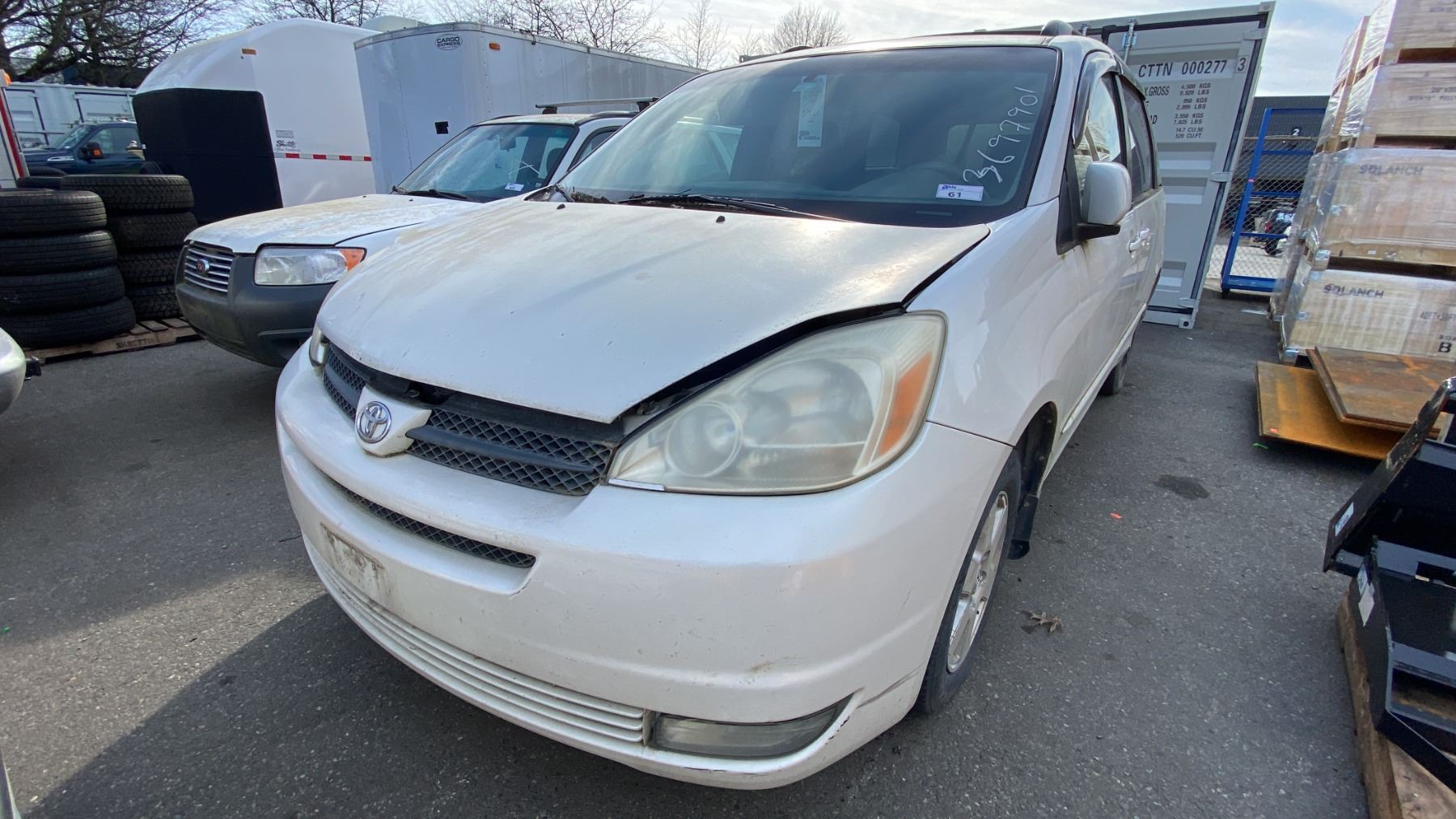 2004 TOYOTA SIENNA LE, 4DR VAN, WHITE, VIN 5TDZA23C74S008668, TMU, GAS (G), 3.3L V6, AUTOMATIC, HAS REGISTRATION, MUST TOW - NOT SUITABLE FOR TRANSPORT, NO KEYS, FEATURES: RADIO, COMPACT DISC, POWER WINDOWS, REAR AIR COND, CRUISE CONTROL, POWER LOCKS, AIR COND HISTORY: REBUILT, REAR ENTERTAINMENT SCREEN, MINOR SCRATCHES AND DENTS, 1 X TOTAL LOSS, 1 NO DETAILS, 3 ICBC ESTIMATES $11,804.68, 3 ICBC REPAIRED DECLARATIONS $9827.50
