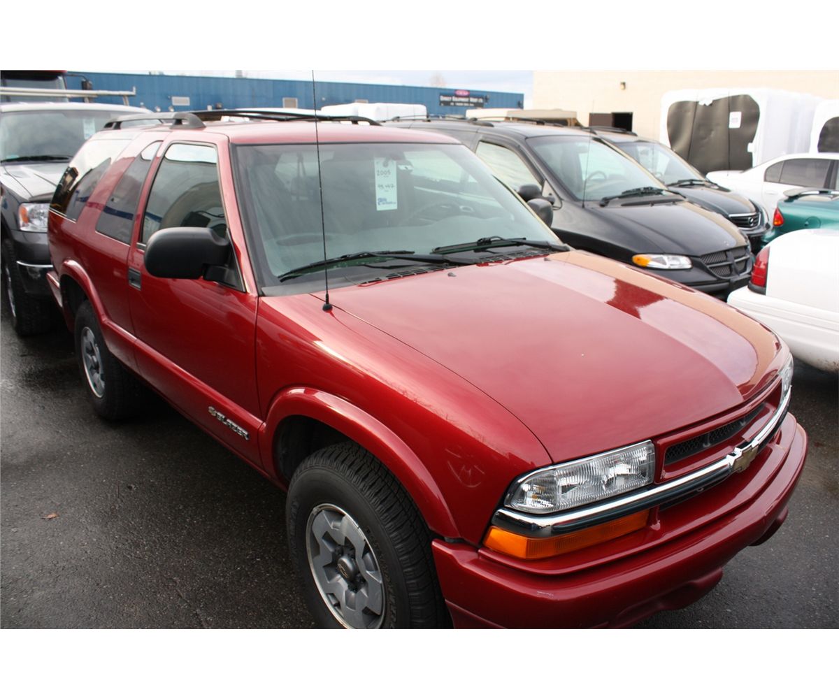 2005 CHEVROLET BLAZER, RED, 2DR SUV, VIN #1GNCT18XX5K116725 4.3L, 95447KMS GASOLINE, AIRCARE EXP JULY 28/14 AUTOMATIC RD,CD,PW,CC,AW,PL,TW,4W,AC NO DECS