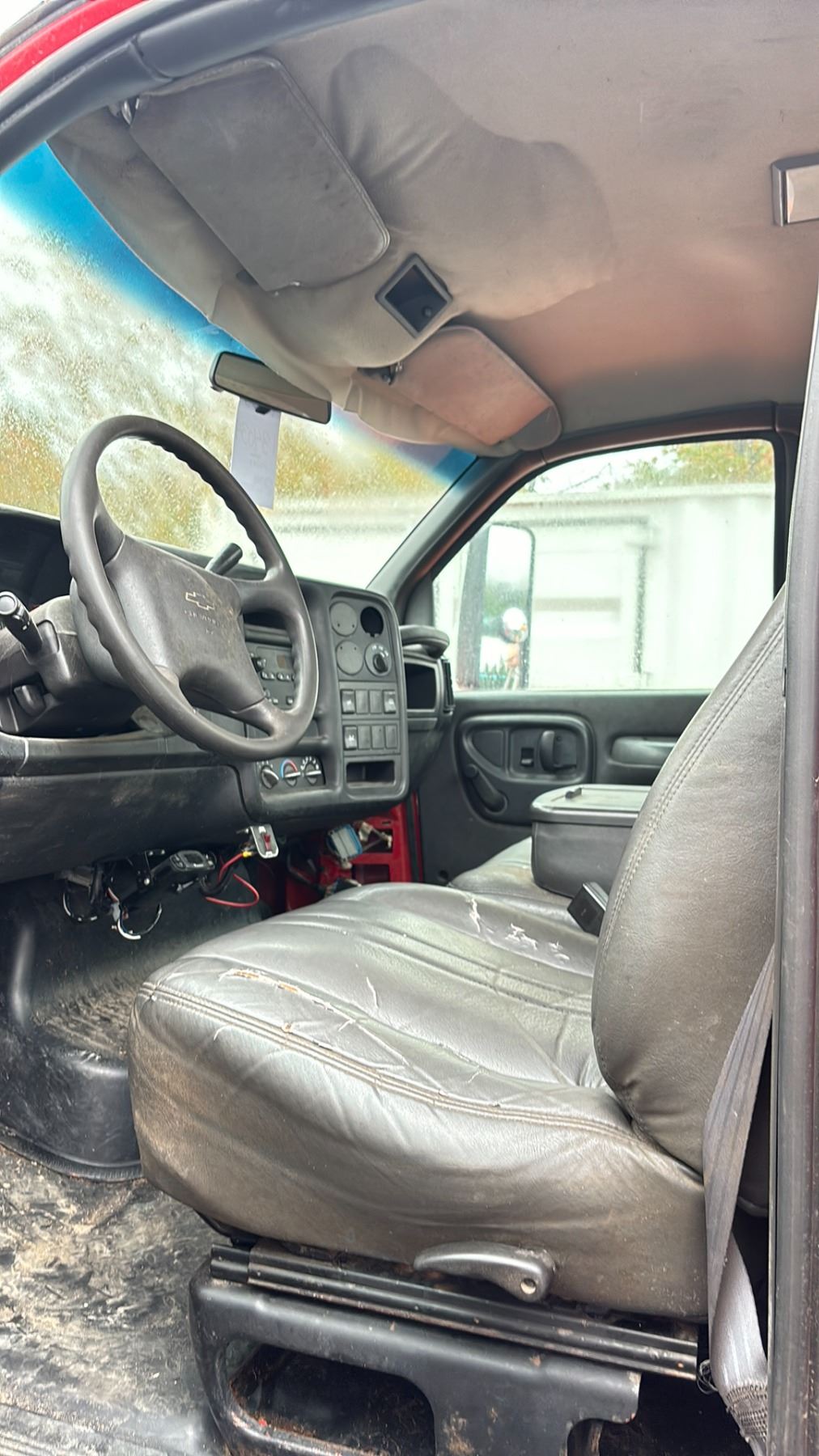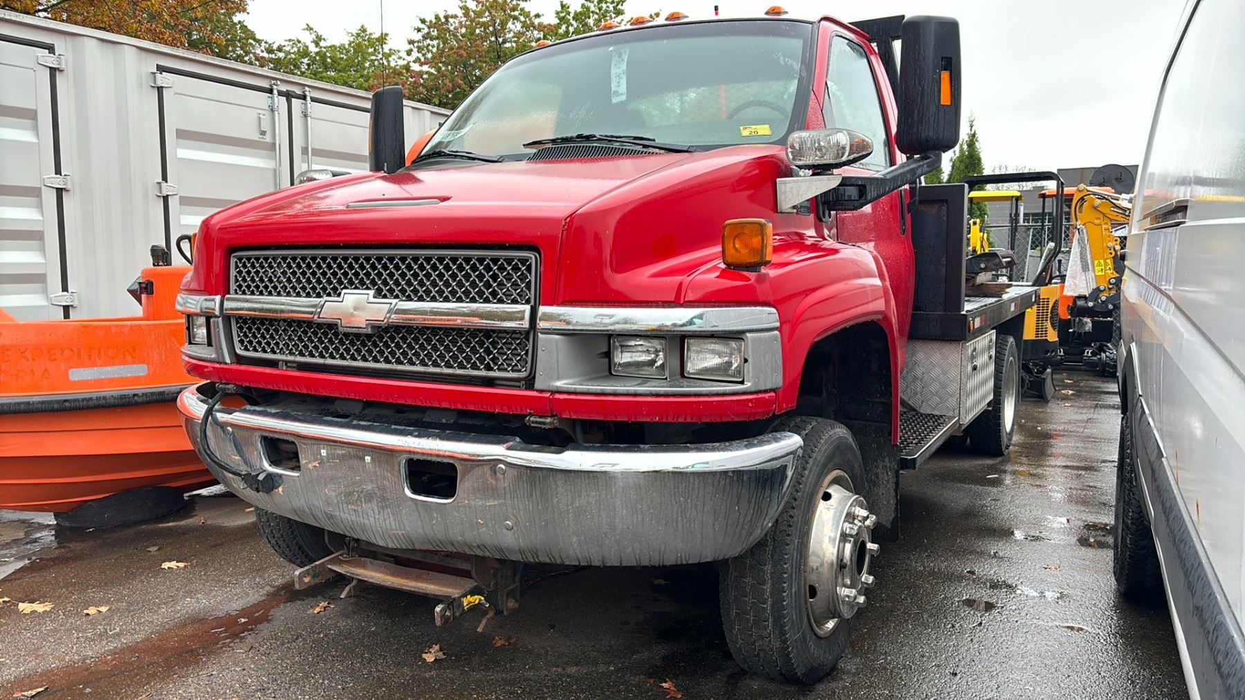 2005 CHEVROLET C4500 RED VIN 1GBE4C3295F500790 134,034.00 MILES, DIESEL (D), DURAMAX, AUTOMATIC, FLAT DECK, REGISTRATION: YES, KEYS: YES FEATURES: RADIO, TILT WHEEL, 4 WHEEL DRIVE, LEATHER TRIM HISTORY: OOC FEW SCRATCHES ON FENDERS, PAINT CHIPS ON D/S AND P/S DOORS AND HOOD, TURN SIGNAL D/S NEED REPAIR, COMES WITH PLOW, PLOW HAS SOME RUST, REQUIRES CLEANING 1 X ICBC REPAIRED NO DETAILS, 1 X ICBC REPAIRED $683.20 * CONTROLLER FOR SNOWPLOW TO BE PICKED UP AT CHECK IN DESK *