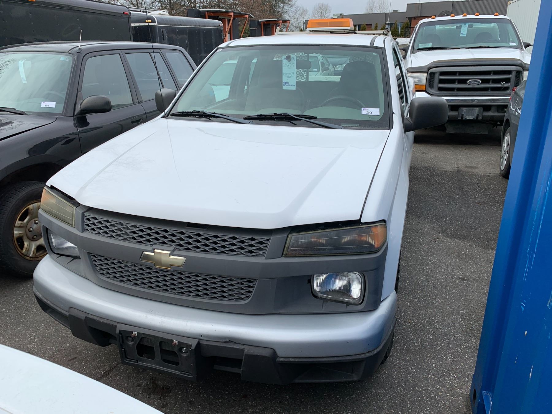 2005 CHEVROLET COLORADO, 4DR EXTENDED CAB, WHITE, VIN 1GCCS196258265936 138,959 KMS, GAS, 3.5L, X-CITY, KEYS, STARTS, TAILGATE DENTED, PLASTIC CRACKED FRONT BUMPER, CHIPPED WINDSHIELD, RD, *HAS REGISTRATION* NO ICBC DECLARATIONS