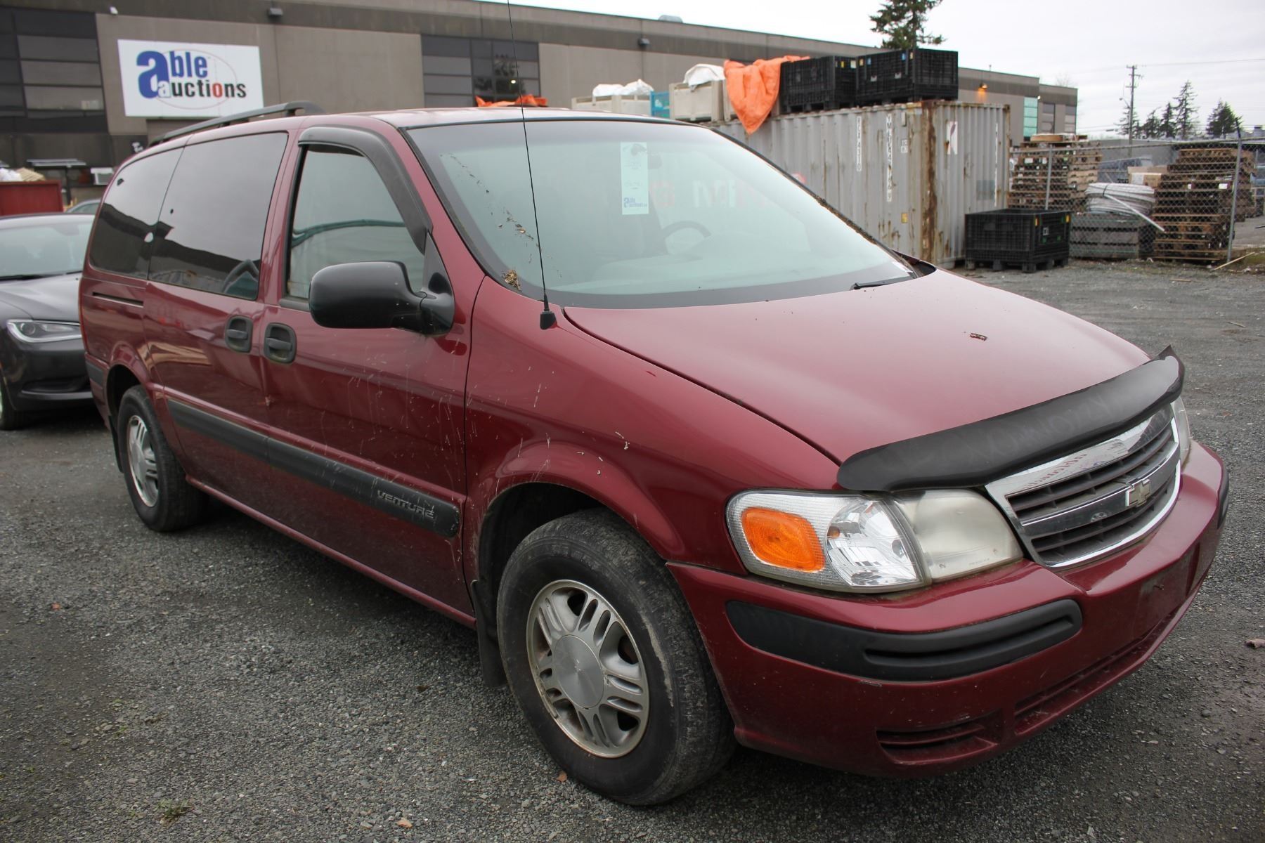 2005 CHEVROLET VENTURE, RED, 4 DRSW, GAS, AUTOMATIC, VIN#1GNDV03E05D127770, 159,931KMS, RD,CD,PW,CC,PL,TW,AC, NO ICBC DECLARATIONS, SOFT BRAKES