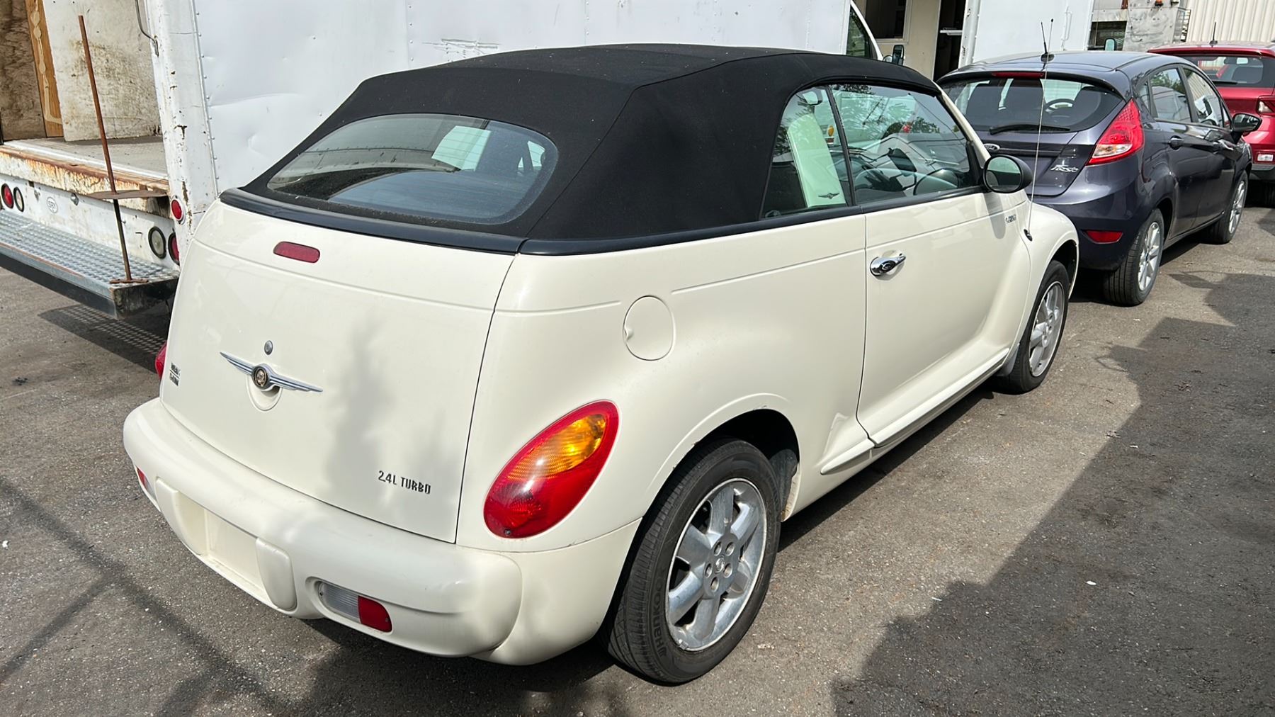 2005 CHRYSLER PT CRUISER TOURING EDITION, 2DR CONVERTIBLE, WHITE, VIN 3C3EY55E65T630152 151,327 KMS, GAS (G), 2.4L, TURBO, AUTOMATIC, HAS REGISTRATION, HAS KEYS, FEATURES: RADIO, COMPACT DISC, POWER WINDOWS, ALL WHEEL DRIVE, CRUISE CONTROL, POWER SEATS, QUAD SEATS, POWER LOCKS, TILT WHEEL, AIR COND, MINOR SCRATCHES & DENTS, SCRATCHES ON PASS REAR FENDER, NO ICBC DECLARATIONS