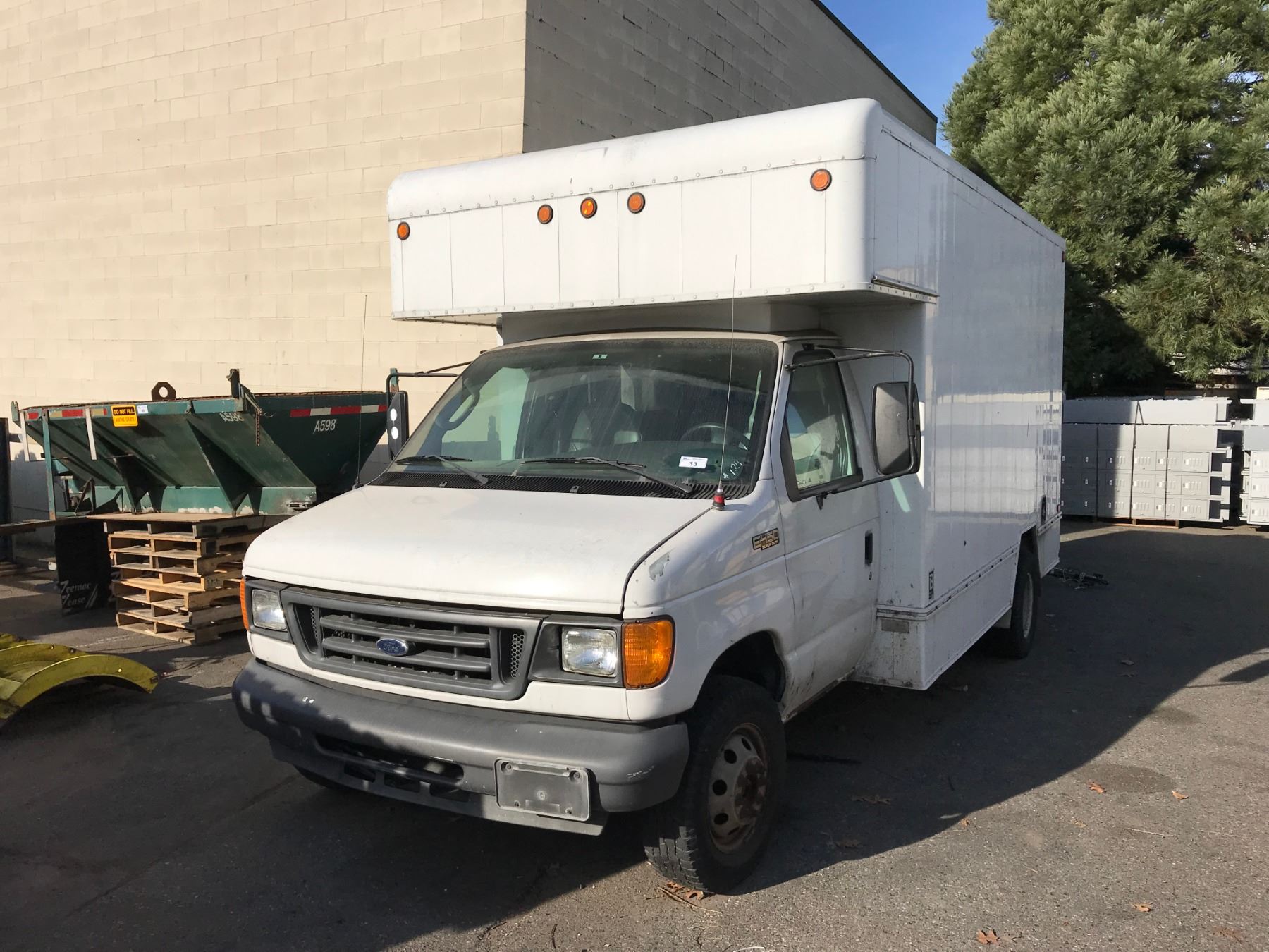 2005 FORD E450, WHITE, SERVICE VAN, DIESEL, AUTOMATIC, VIN#1FDXE45P95HB04259, 111,455KMS, *WILL NOT START, MUST TOW*, RIPPED SEATS, DIRTY INTERIOR, DASH PIECES MISSING, POSSIBLE FUEL OR ELECTRICAL ISSUE, HAS INTERCONTINENTAL TRUCK BODY 1 ICBC DECLARATION NO DETAILS