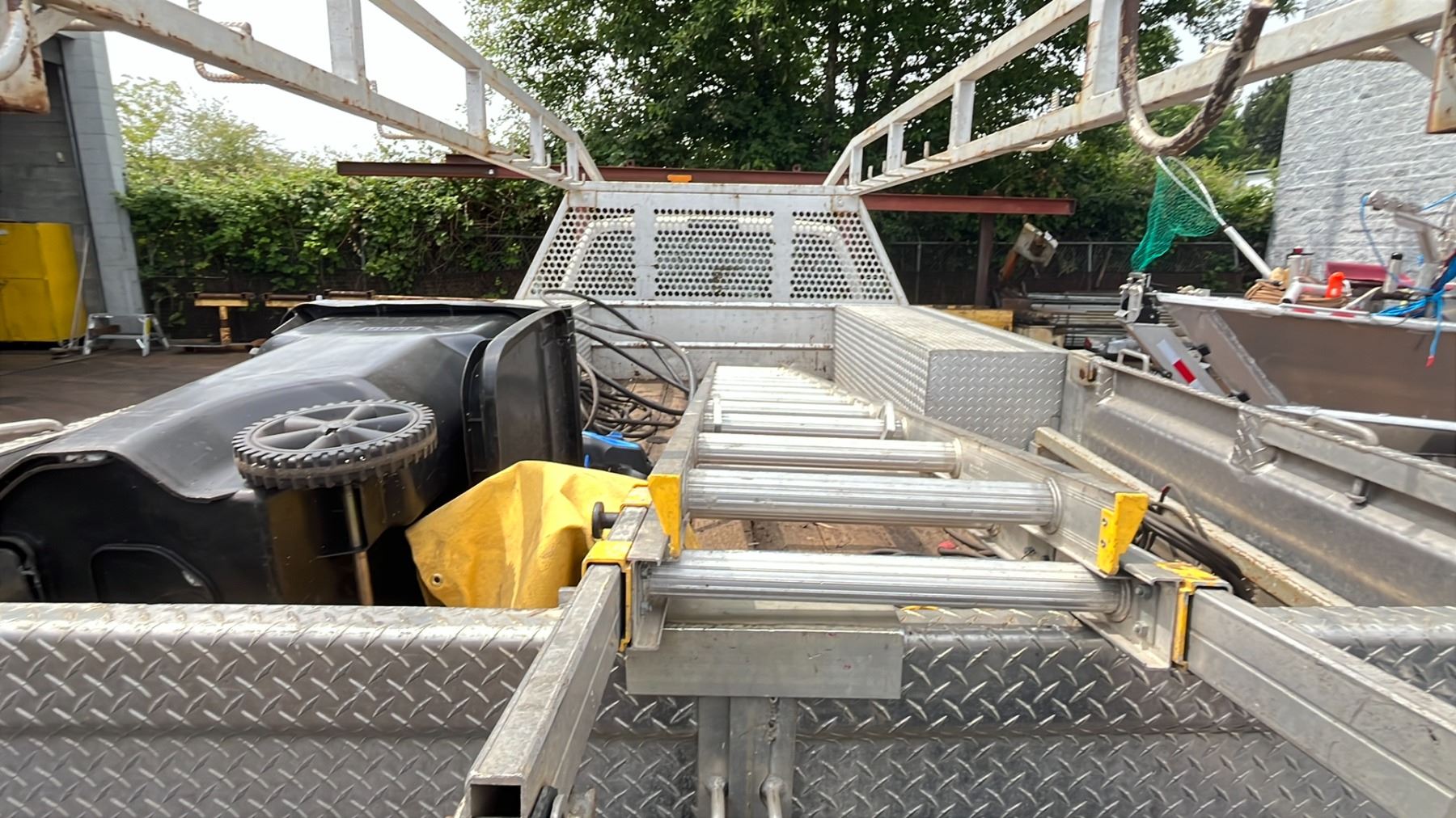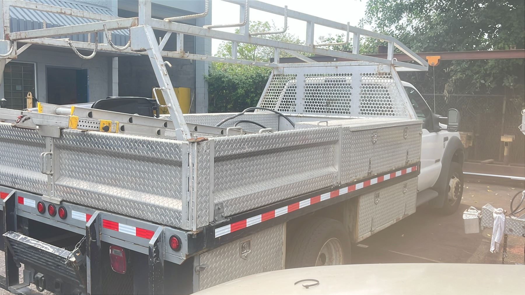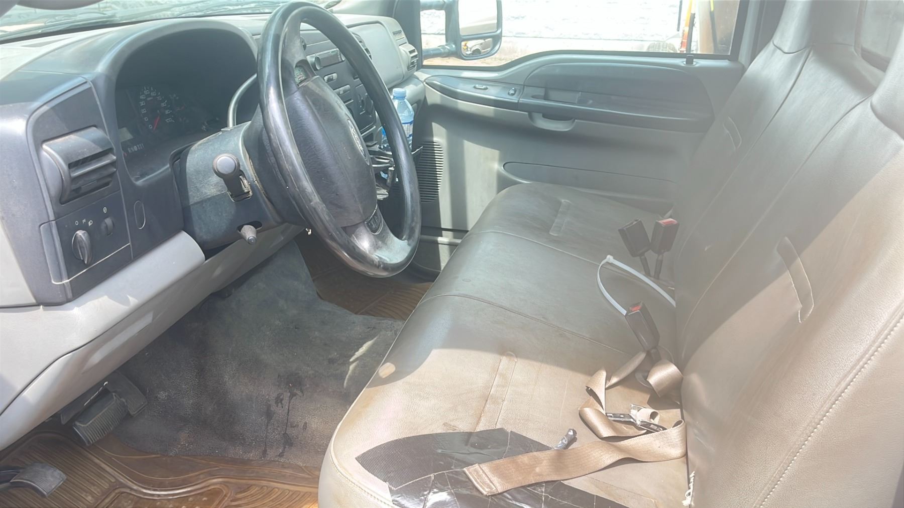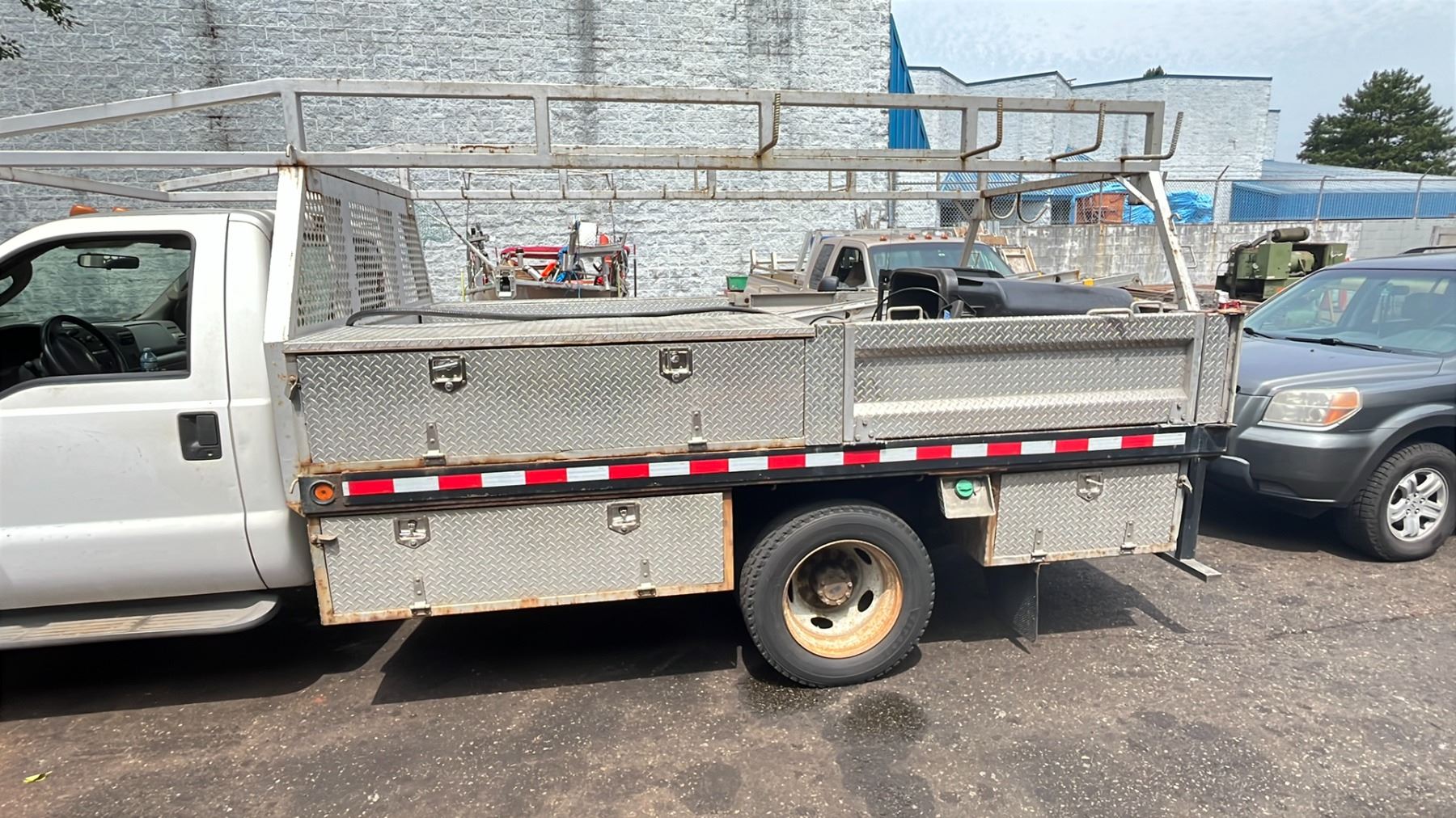2005 FORD F-550 XL SUPERDUTY TURBO, 2DR FLATDECK PU, WHITE, VIN 1FDAF56P45EB02461 179,501 KMS, DIESEL (D), 6.0L 8CYL, AUTOMATIC, HAS REGISTRATION, HAS KEYS, FEATURES: RADIO, COMPACT DISC, POWER WINDOWS, CRUISE CONTROL, POWER LOCKS, 4 WHEEL DRIVE, LEATHER TRIM, HEATED SEAT, HISTORY: OOC, HAS BC REGISTRATION, WINDSHIELD CRACKED, SEAT RIPPED, MODIFIED CHECKER BOARD STORAGE UNITS, FLATDECK SERVICE BOX ALUMINUM, COMPARTMENT ROOF RACK, HEADACHE RACK, ICBC REPAIRED DEC $551.35, 1X ICBC NO DETAILS
