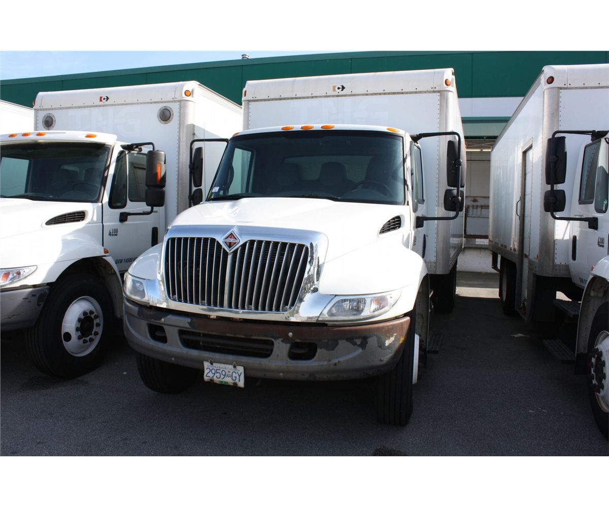 2005 INTERNATIONAL 4300 DT466 WHITE 5 TON TRANSPORT TRUCK 248,665 KM DIESEL AUTOMATIC TRANSMISSION AIR BRAKES, MAXON 2500 LBS LIFT GATE, RADIO, COMPACT DISC, AIR CONDITIONING VIN #1HTMMAAP05H689332, 2X ICBC NO DETAILS