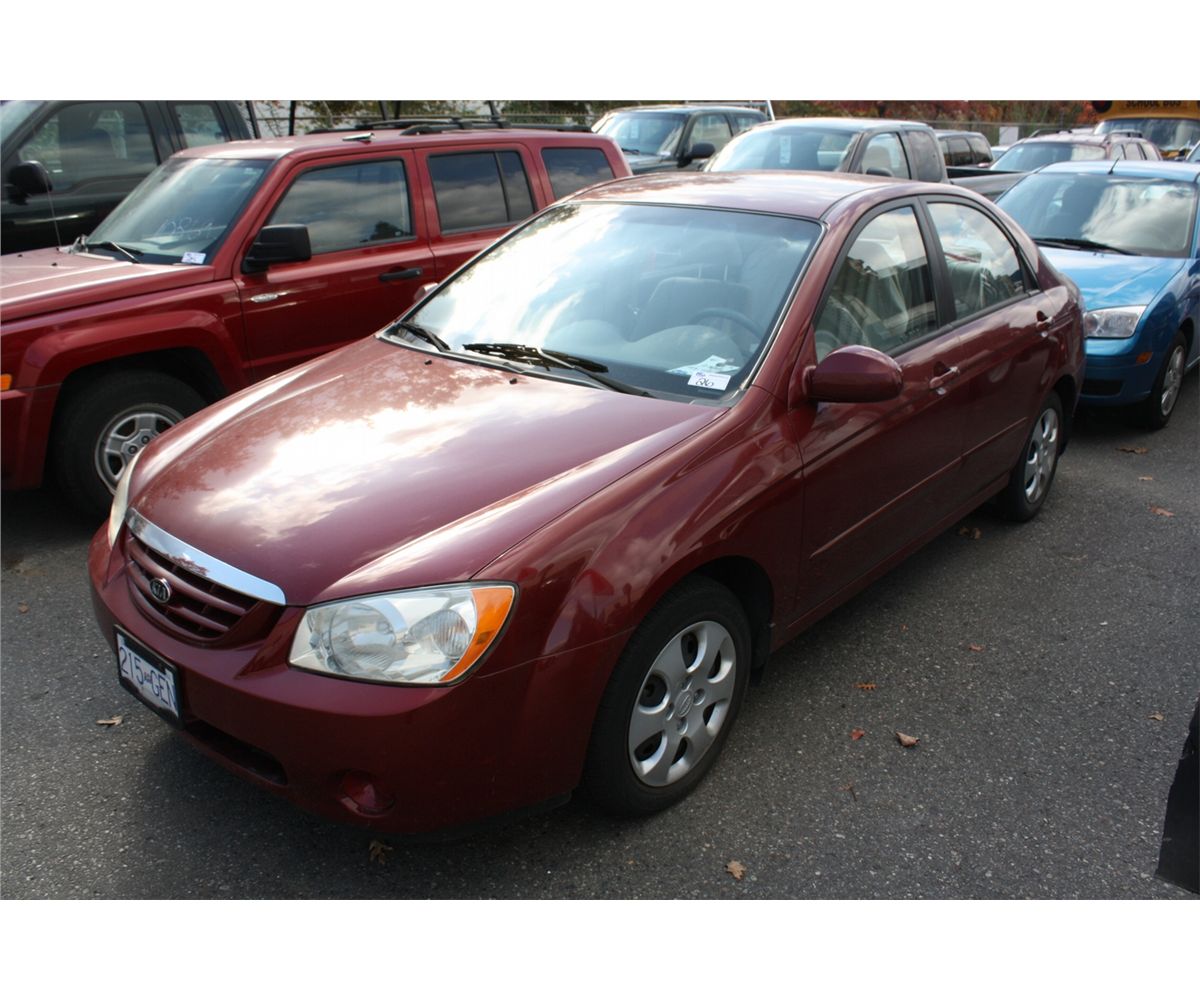2005 KIA SPECTRA LX 4 DR SDN, BURGANDY, VIN KNAFE121X55060396 129,126KMS,  DEAD BATTERY, RD,CD,PW,CC,PL,TW,AC AIRCARE GOOD UNTIL 7/24/14 STANDARD