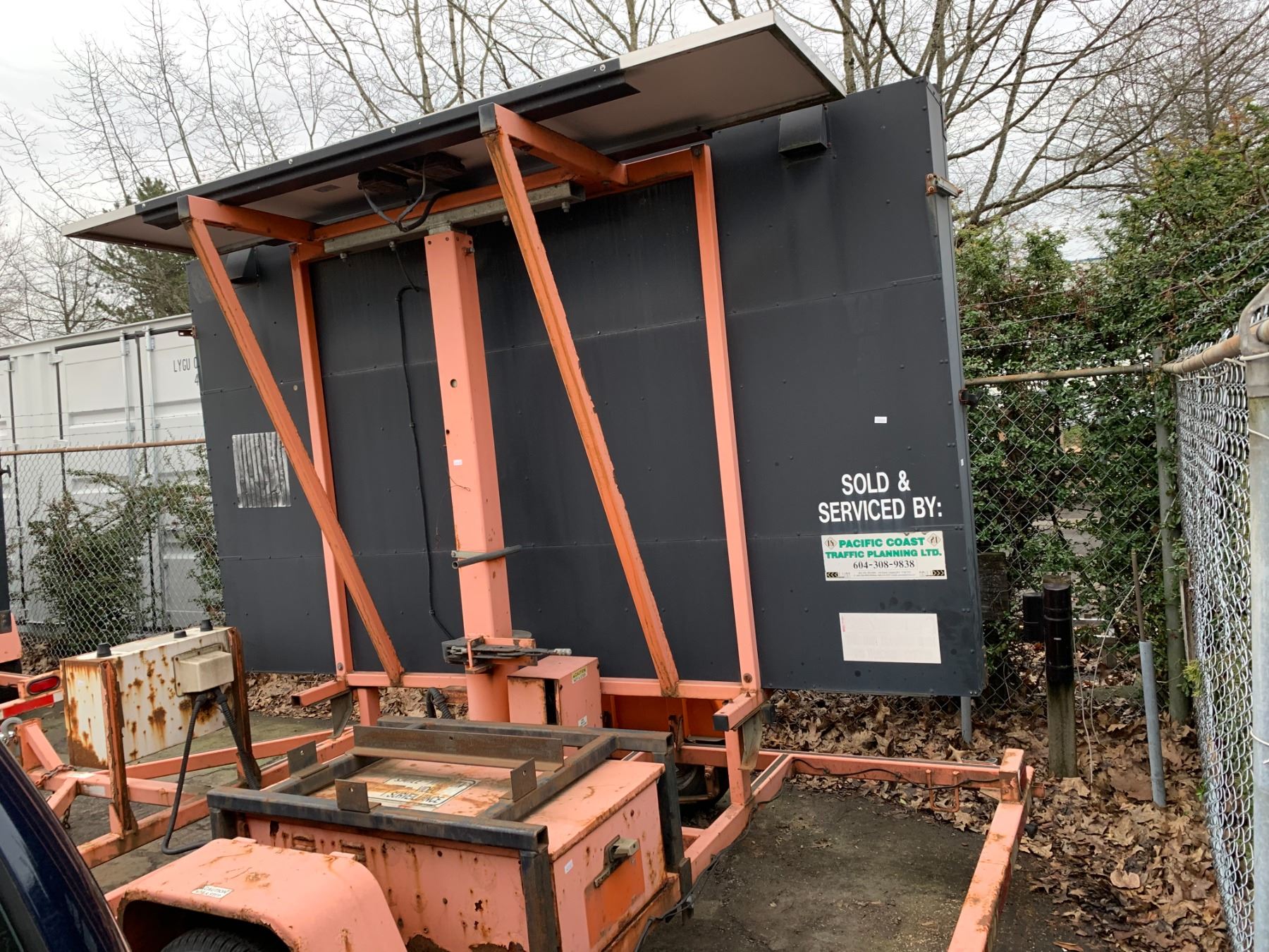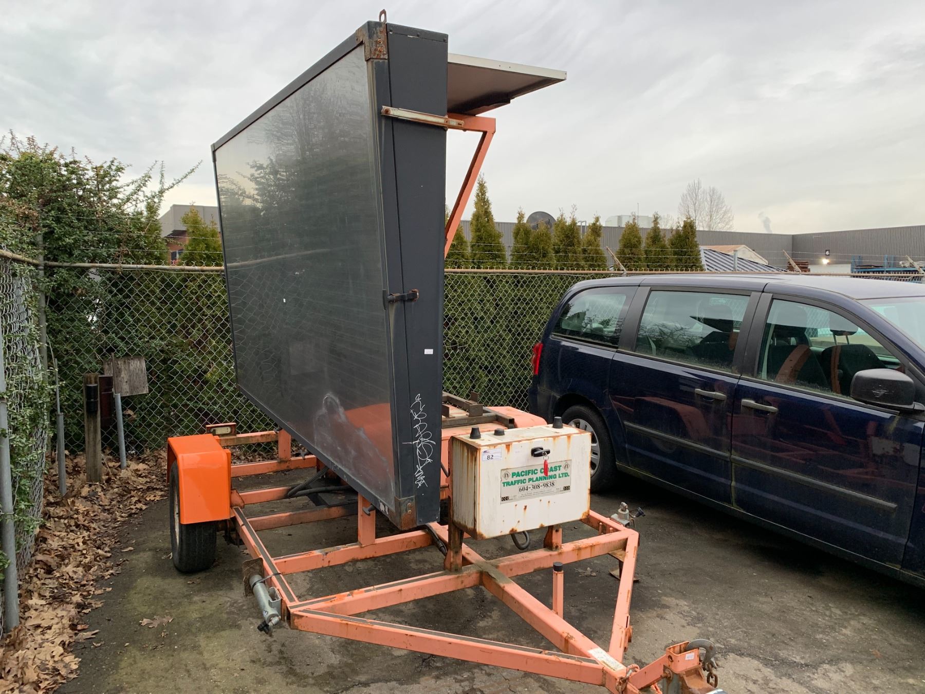 2005 WANCO ROADSIDE SIGN TRAILER, ORANGE, VIN 5F12S161X51002199 KEYBOARD INSIDE LOCK BOX, ROAD SIGN 130" X 8" X 74 1/2" WITH SOLAR PANEL, TRAILER WITHOUT SIGN 185" X 96" RUST SPOTS ALL OVER, WITH SIGN 185" X 96" X 105" OOC *HAS BC REGISTRATION* ICBC DECLARATIONS 1 X NO DETAILS
