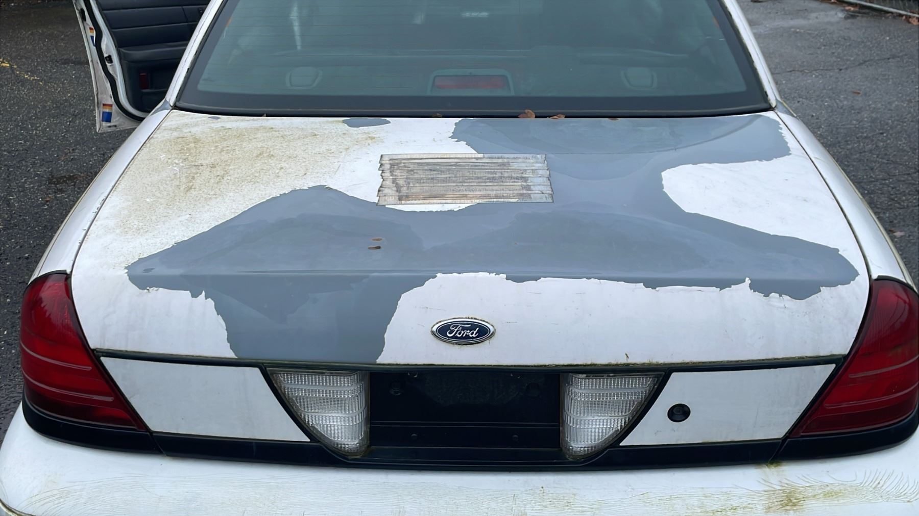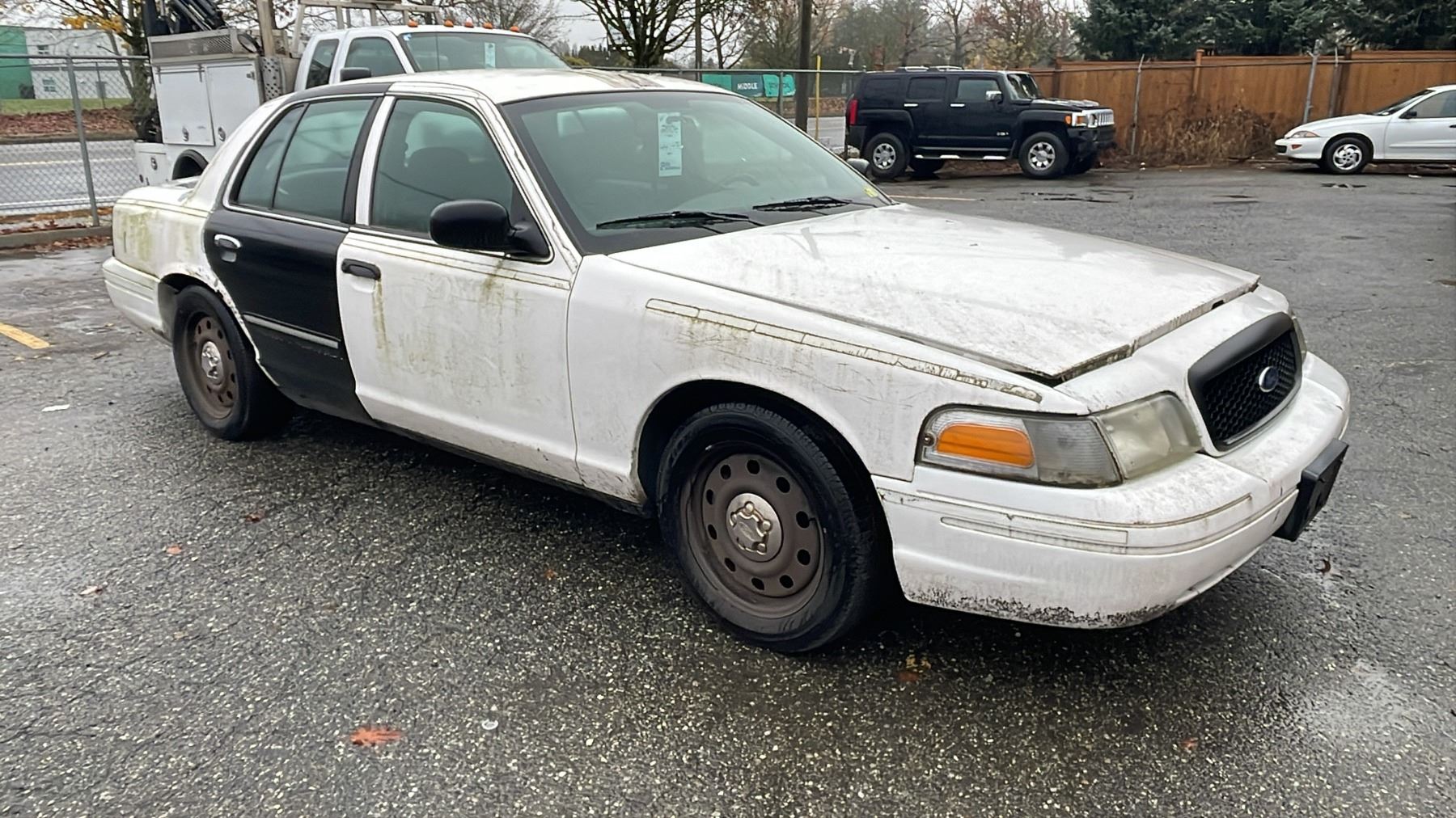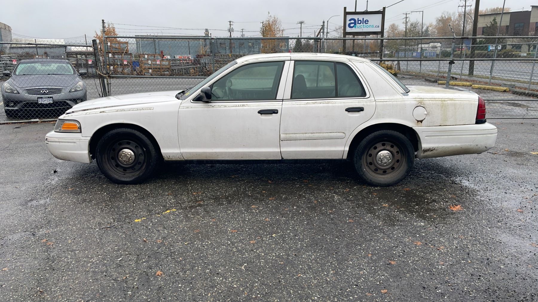 2006 FORD CROWN VICTORIA 4 DOOR SEDAN WHITE VIN 2FAHP71W36X127206, 441,476 KMS, GAS (G), 4.6 LTR, AUTOMATIC, HAS REGISTRATION, HAS KEYS, X-POLICE, FEATURES: RADIO, POWER WINDOWS, ALLOY WHEELS, POWER LOCKS, TILT WHEEL, AIR COND, RUST ISSUES, INTERIOR COVERED IN DOG HAIR, EXTERIOR HAS REFLECTIVE STICKER REMAINING, PAINT PEELING ALL OVER, 3 DUCT TAPE PATCHES, ENGINE SMOKING, *MUST TOW, NOT SUITABLE FOR TRANSPORTATION*, 2 X ICBC NO DETAILS, 1 X $717.26