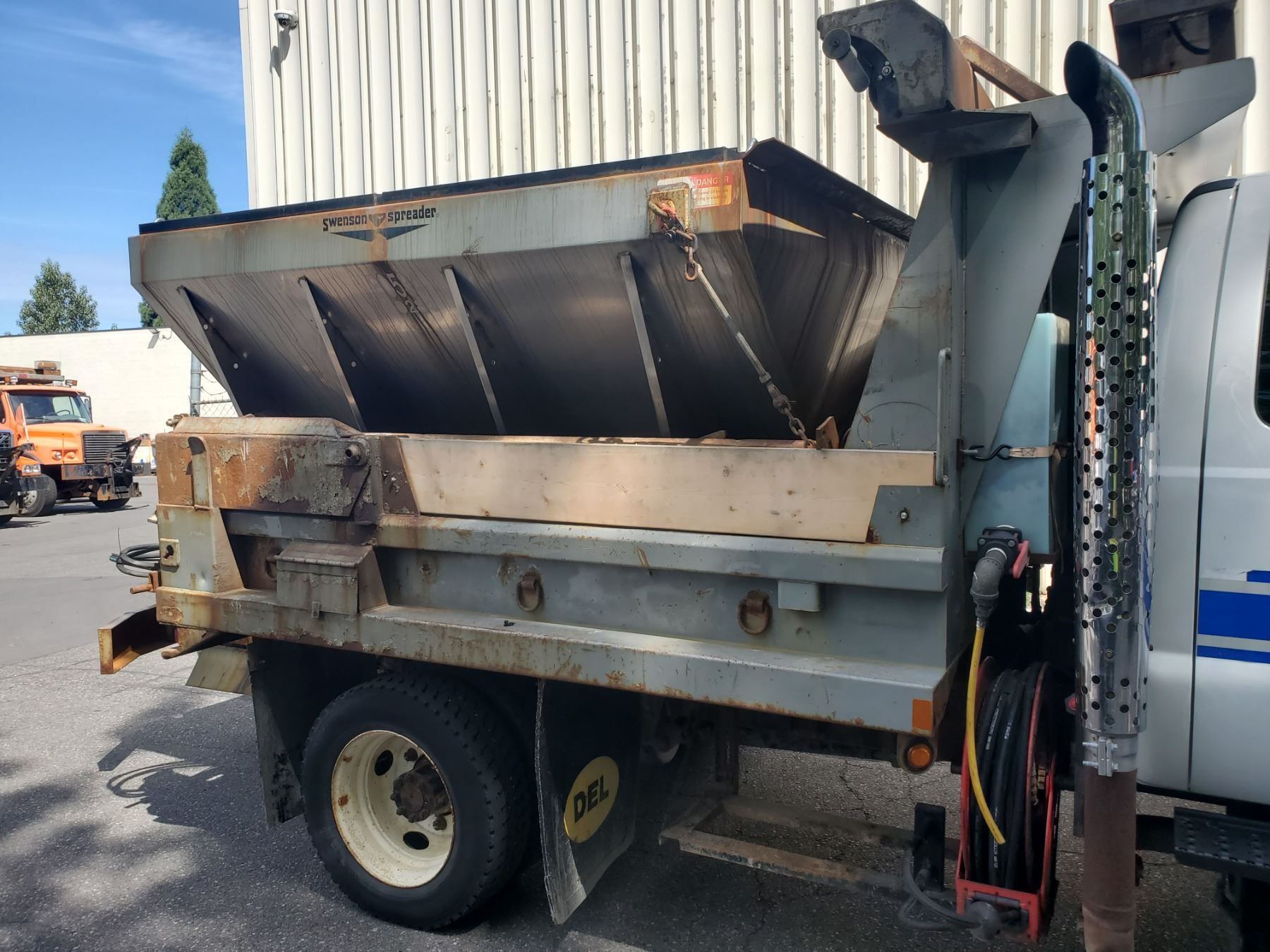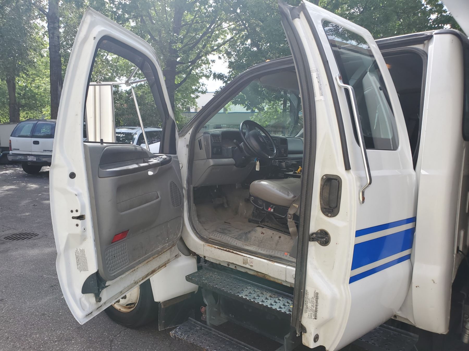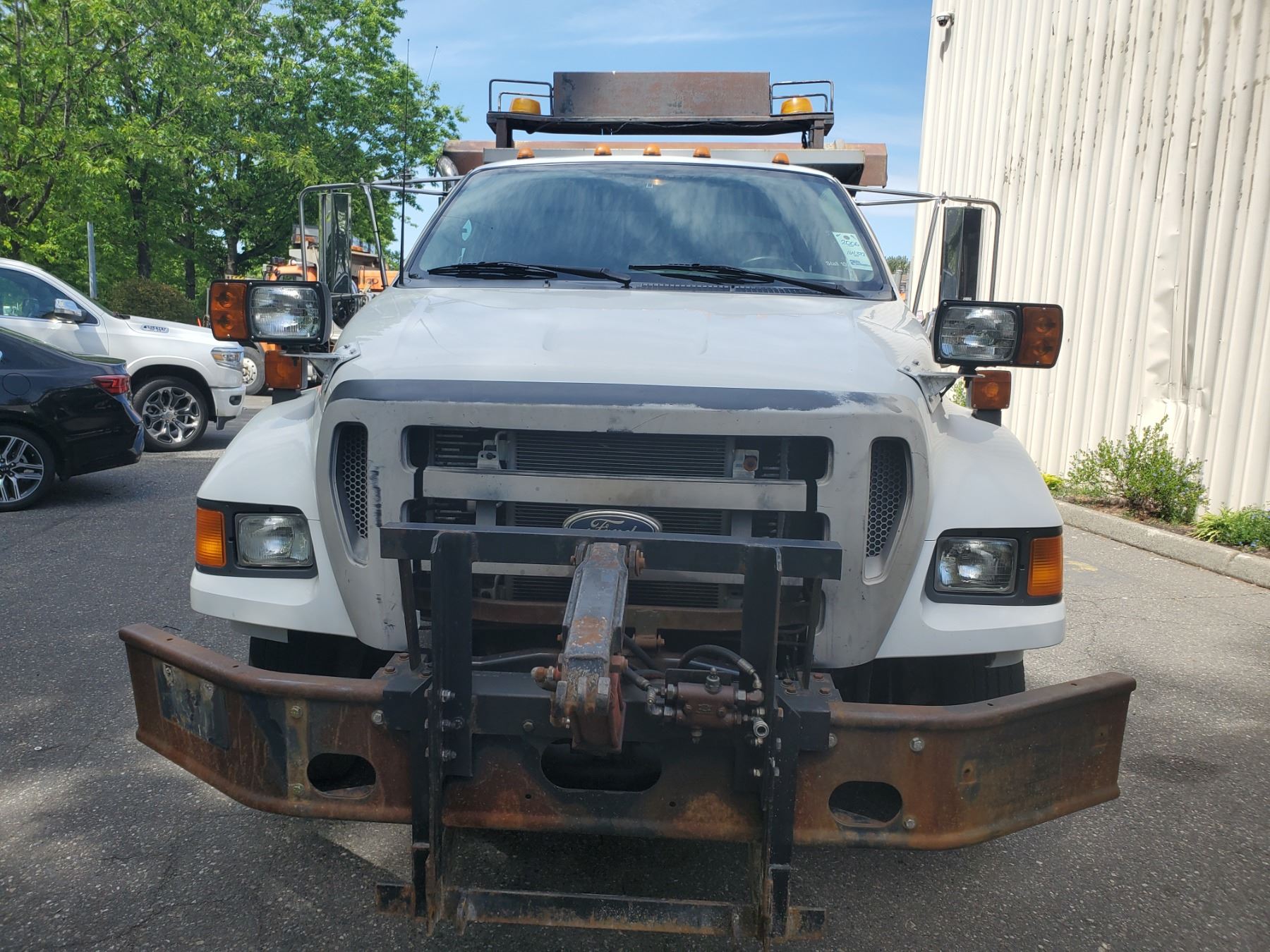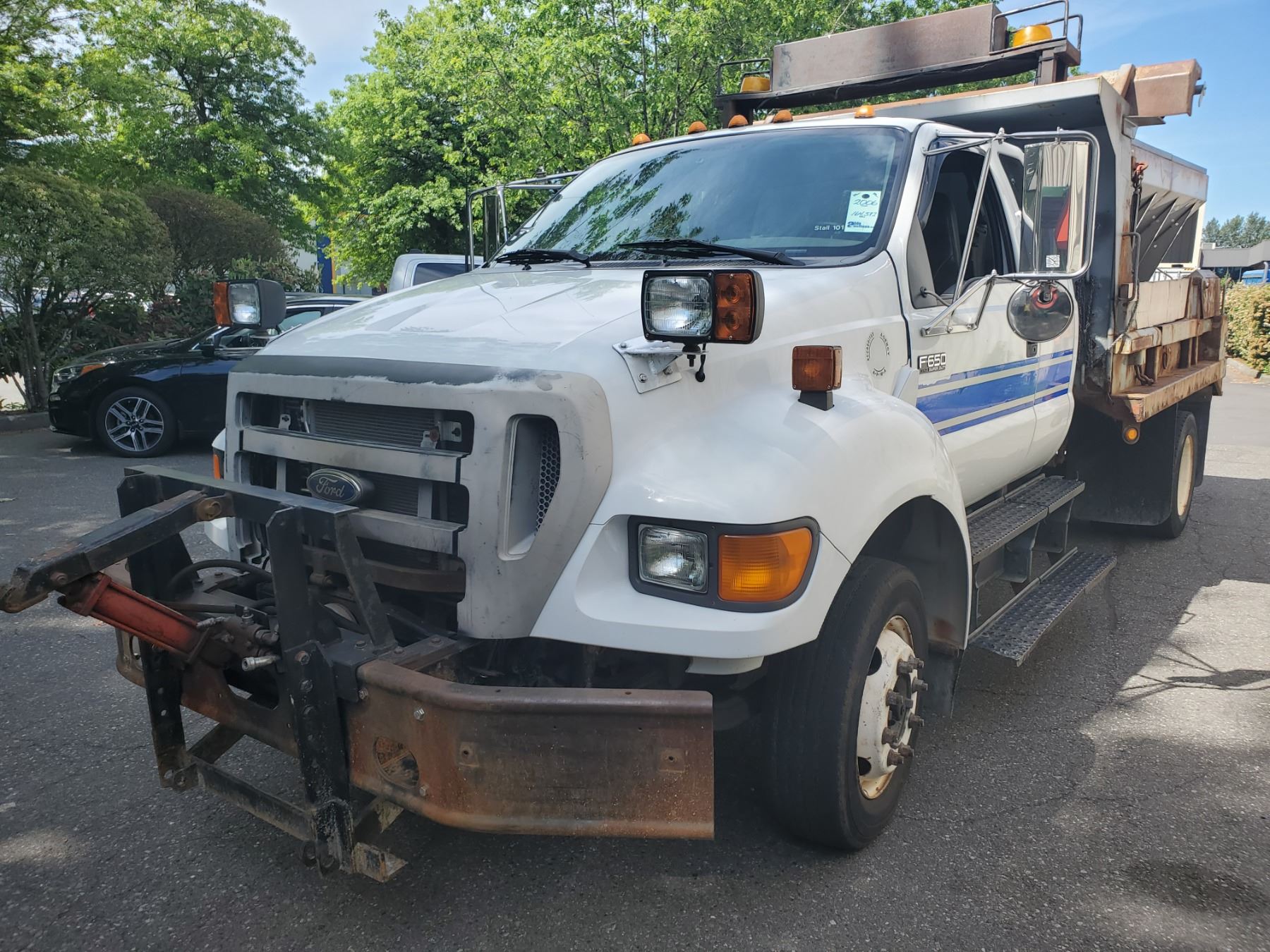 2006 FORD F-650 XLT, 4DR EXT CAB PU, WHITE, VIN # 3FRNX65RX6V294117 164,372KMS, DIESEL, AUTO, X-CITY RD,CD,PW,CC,TW,AC,RI, SURFACE RUST ON BOX, DIRTY INTERIOR SWENSON SPREADER, SOME BROKEN INTERIOR PARTS, PLOW HARNESS ATTACHMENT NO ICBC DECLARATIONS