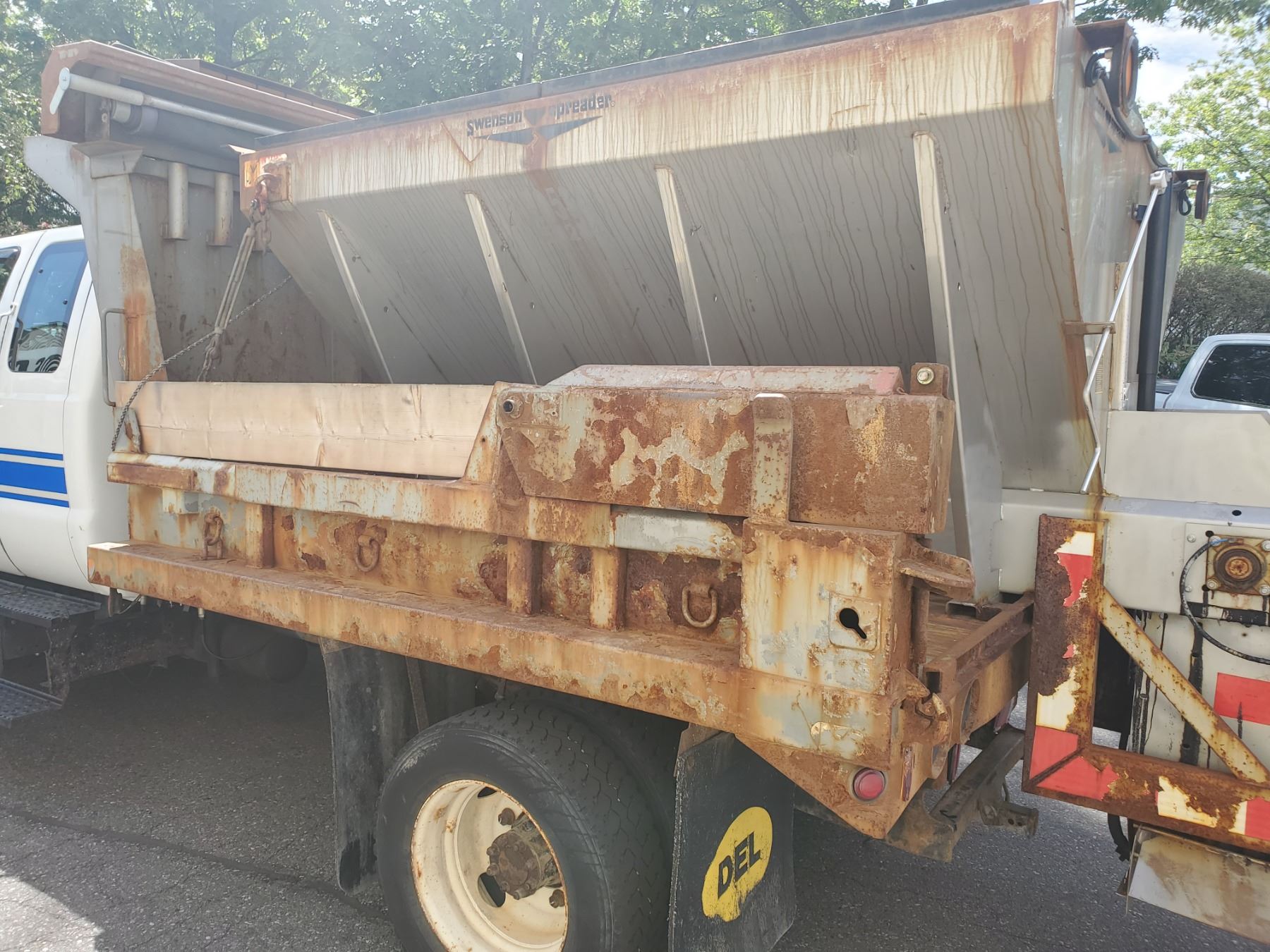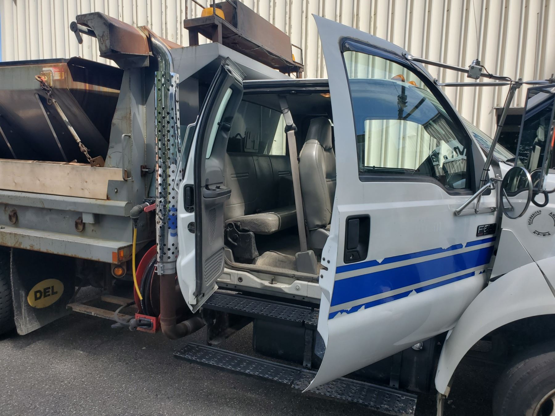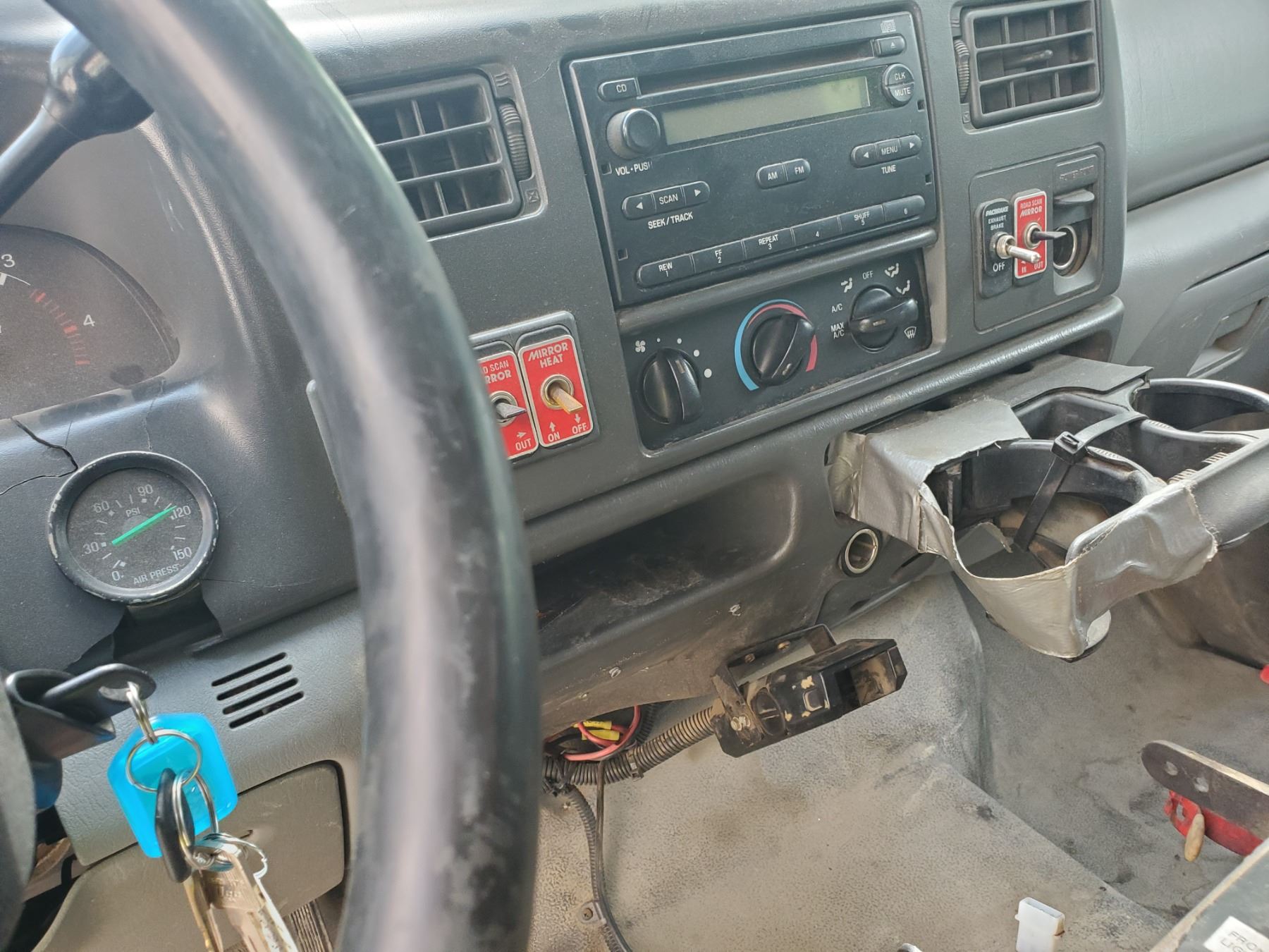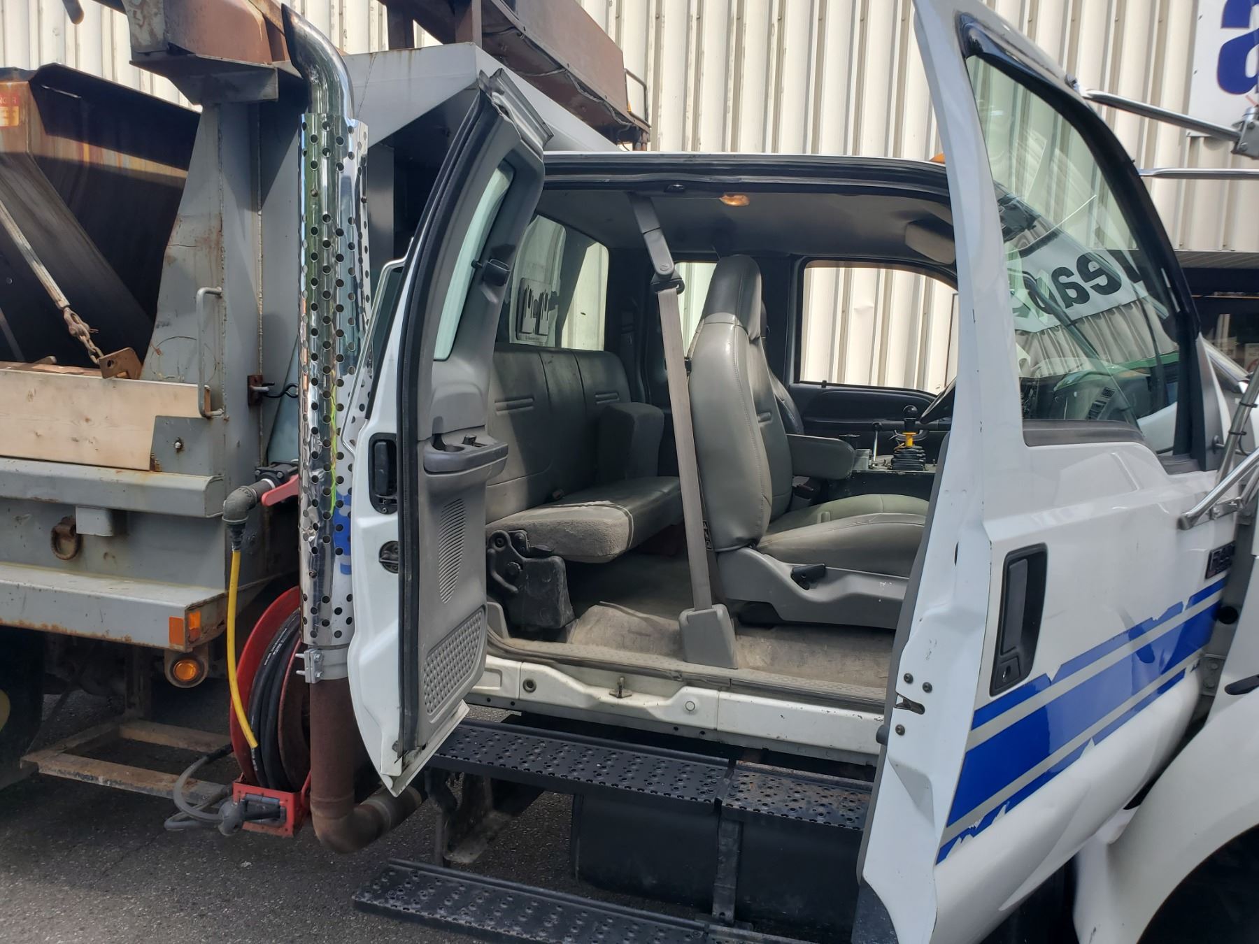 2006 FORD F-650 XLT, 4DR EXT CAB PU, WHITE, VIN # 3FRNX65RX6V294117 164,372KMS, DIESEL, AUTO, X-CITY RD,CD,PW,CC,TW,AC,RI, SURFACE RUST ON BOX, DIRTY INTERIOR SWENSON SPREADER, SOME BROKEN INTERIOR PARTS, PLOW HARNESS ATTACHMENT NO ICBC DECLARATIONS