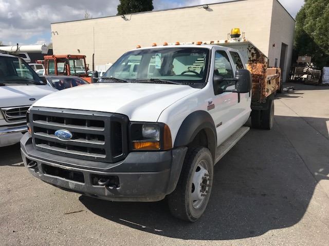 2006 FORD F550 XL SUPERDUTY, 4DRCREWCAB, WHITE, DIESEL, AUTOMATIC, DUMP BOX, VIN#1FDAW56P26ED08489, 344,501KMS, RD,CC,AC, DUMP BOX REMOTE IN CAB, OOP, NO ICBC DECLARATIONS
