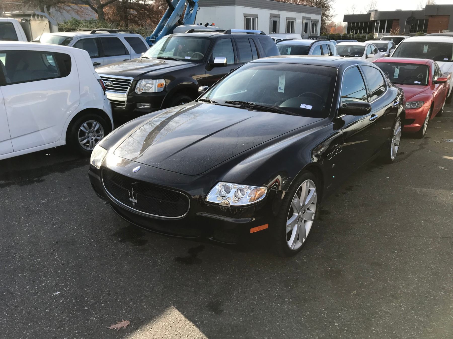 2006 MASERATI QUATTROPORTE, BLACK, 4DRSD, GAS, AUTO/PADDLE, *REBUILT* VIN#ZAMCE39A860024188, 75,992KMS, OOC, RD,CD,PW,DV,CC,PS,AW,PL,TW,AC,LT,SR, PASSENGER WINDOW DOES NOT GO UP OR DOWN (BROKEN), NEEDS REPROGRAMING, CHECK ENGINE LIGHT ON, SUSPENSION LIGHT ON, DEALER SERVICE LIGHT ON, 1 ICBC DECLARATION $11,925.41, 1 ICBC DECLARATION TOTAL LOSS