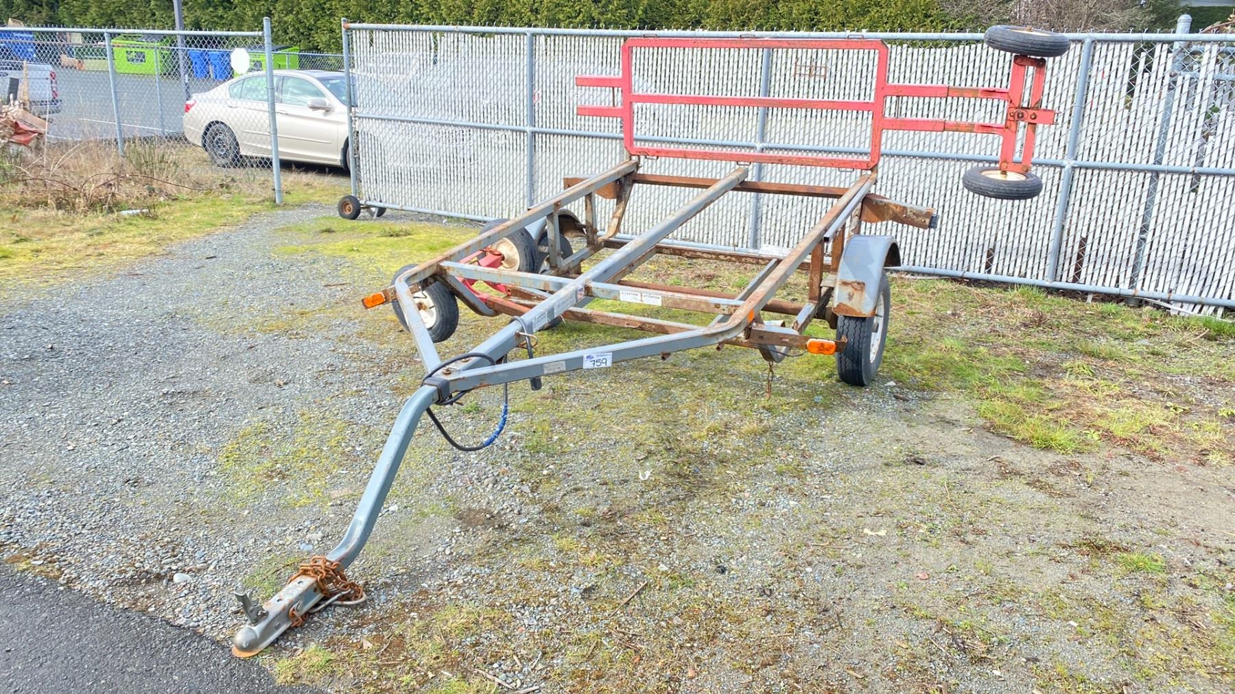 2007 BCI SPA DOLLY FLAT DECK TRAILER, GREY VIN 4MKD111107H003496 DESIGNED FOR DELIVERING HOT TUBS, REAR DOLLY DETACHES FOR ON SITE DELIVERIES HAS REGISTRATION, NO ICBC DECLARATIONS