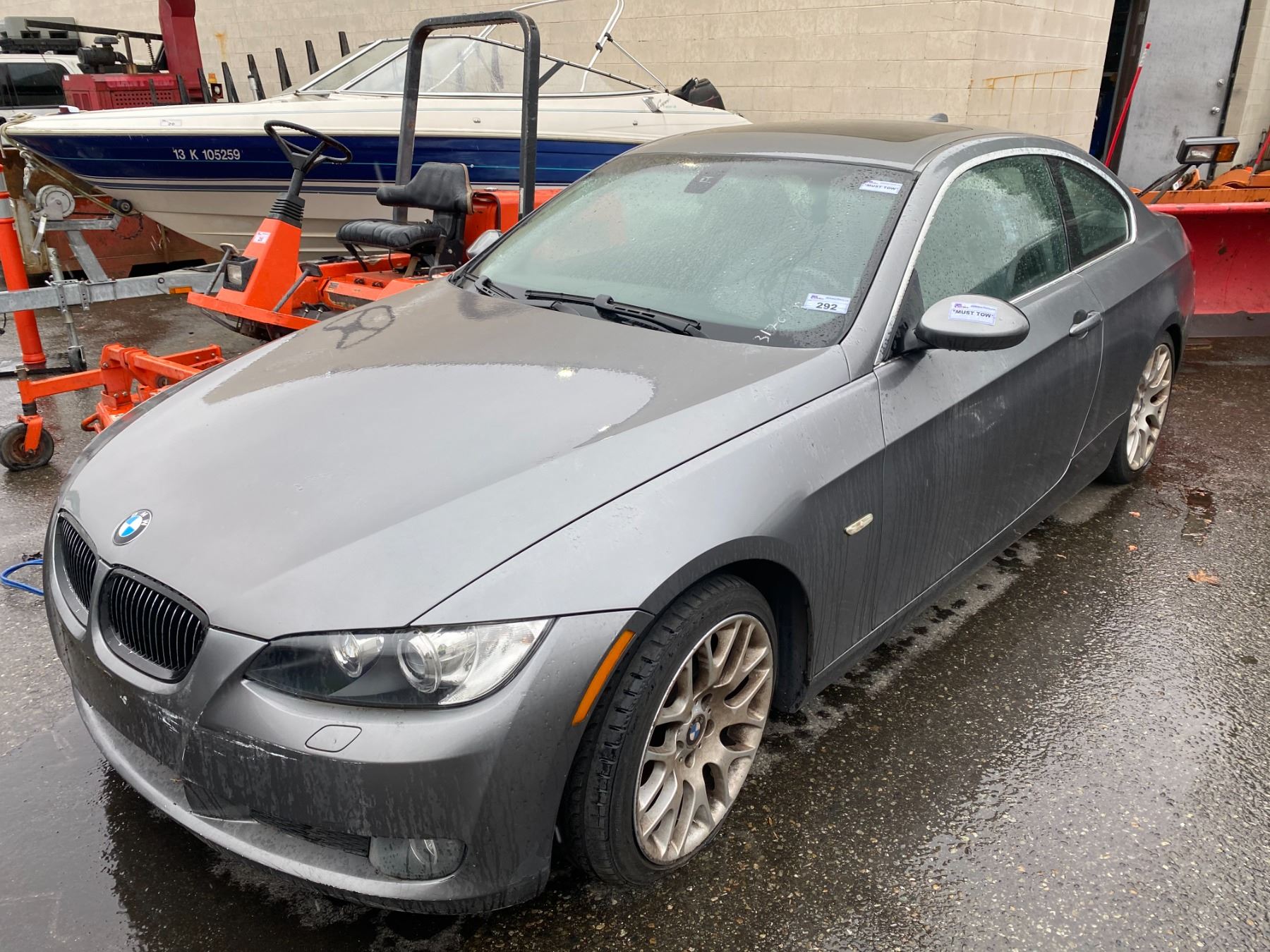 2007 BMW 328I, 4DR SEDAN, GREY, VIN # WBAWV135X7PK49557 TMU, GAS, AUTO RD,CD,PW,CC,PS,AW,PL,TW,AC,LT,SR,HS FLAT TIRE, CRACKED WINDSHIELD, OOC, *HAS BC REGISTRATION* ICBC EST TTL $1,828.61, ICBC REPAIRED DEC $1,295.42 3 OPEN RECALLS BLOWER MOTOR WIRING, DRIVERS FRONT AIR BAG, VALVE HEATER *MUST TOW, NOT ROADWORTHY, NO KEYS*