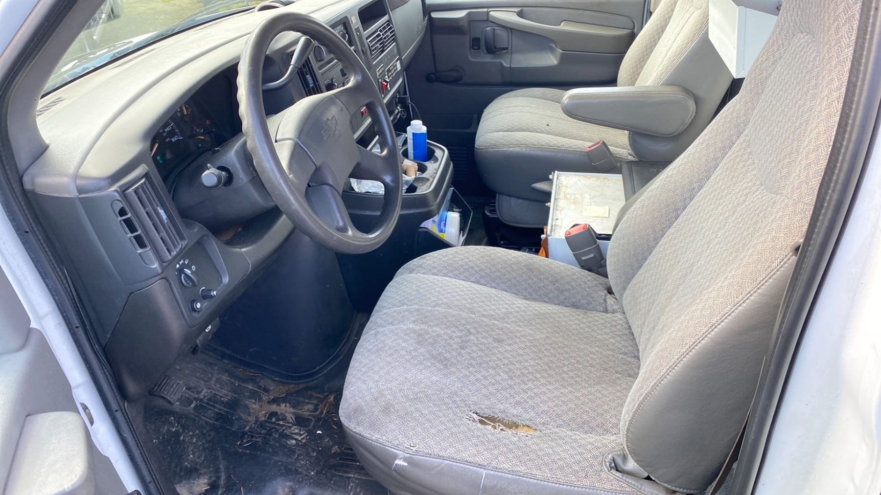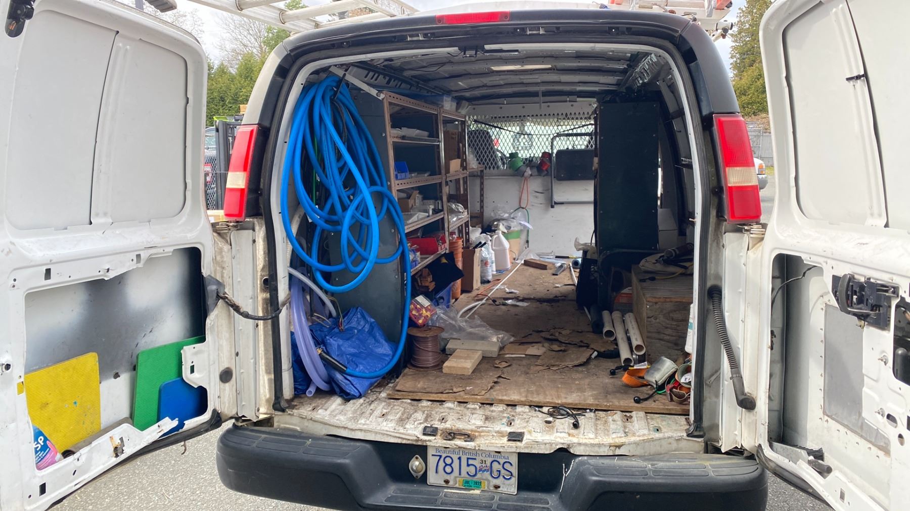 2007 CHEVROLET EXPRESS 3DR CARGO VAN, WHITE, VIN 1GCHG39U271125656 124,022 KMS, GAS (G), AUTOMATIC, HAS REGISTRATION, HAS KEYS FEATURES: AIR COND, RADIO, FEW MINOR DENTS, CHECK ENGINE LIGHT ON, ROOF RACKS, NO CONTENTS, ICBC REPAIRED GLASS $596.93
