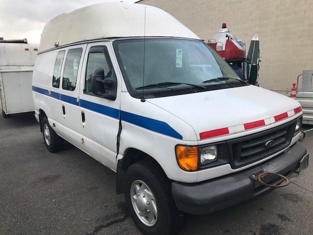 2007 FORD E350 CARGO VAN VIN 1FTSE34L37DA81577 123,496 KM'S, GAS, AUTOMATIC WHITE RD,AC, NO ICBC DECS