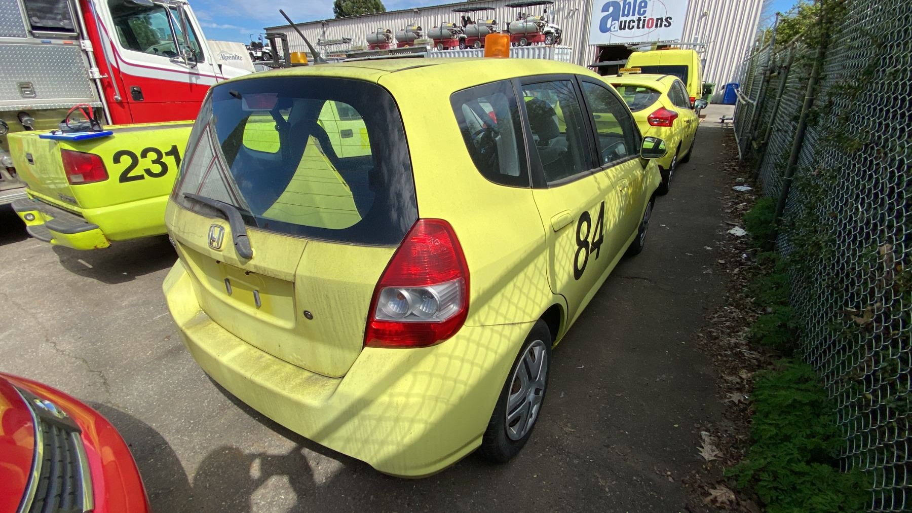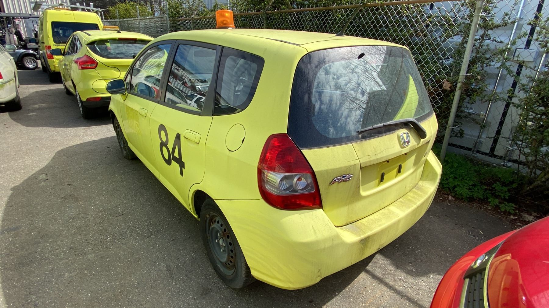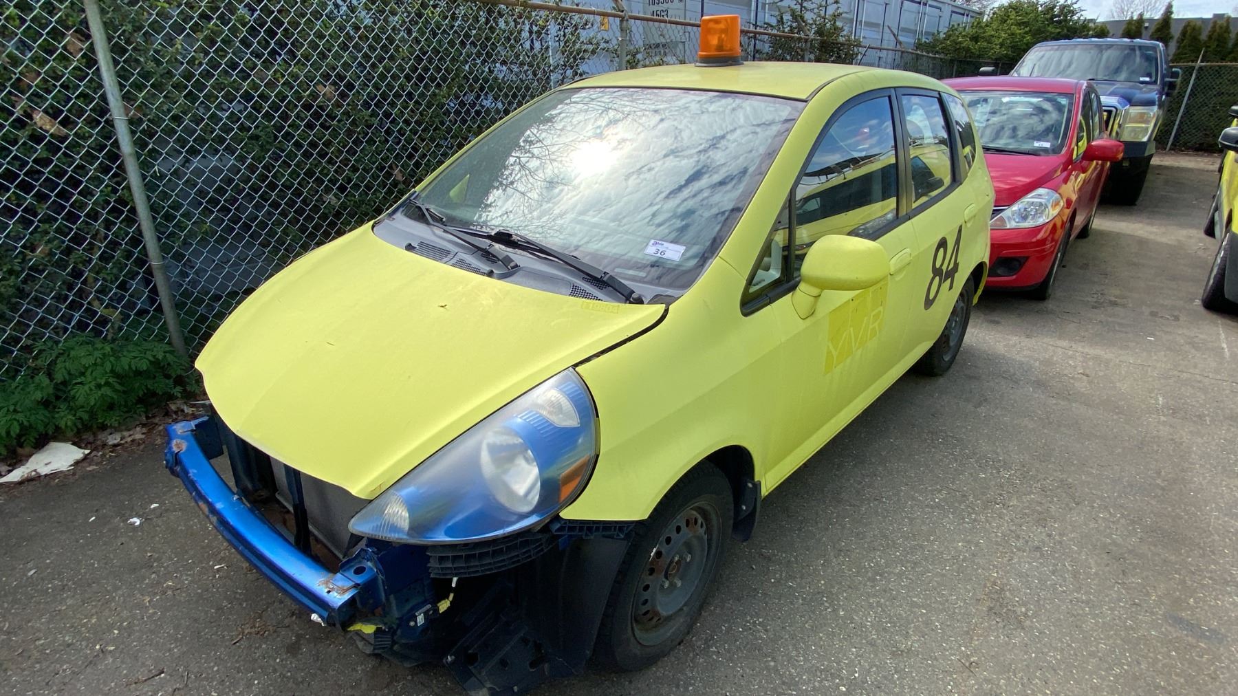 2007 HONDA FIT, 4DR HATCHBACK, YELLOW, VIN JHMGD38207S815029, 37,608 KMS, GAS (G), 1.5L, AUTOMATIC, HAS REGISTRATION, MUST TOW - NOT SUITABLE FOR TRANSPORT, HAS KEYS, NEEDS JUMP, 1 ICBC DECLARATION NO DETAILS, FEATURES: RADIO, COMPACT DISC, POWER WINDOWS, POWER LOCKS, TILT WHEEL, SCRATCHES AND DENTS, FRONT END DAMAGE, FADED PAINT, DECALS, YELLOW EMERGENCY BEACON ON ROOF, LARGE DENT PASSENGER FRONT FENDER, MISSING DRIVERS SEAT, BUMPER AND FRONT HEADLIGHT INSIDE CAR, 2 OPEN RECALLS #HN03 R: PASSENGER AIRBAG INFLATOR & #HO55 DRIVESHAFT MAY FRACTURE,