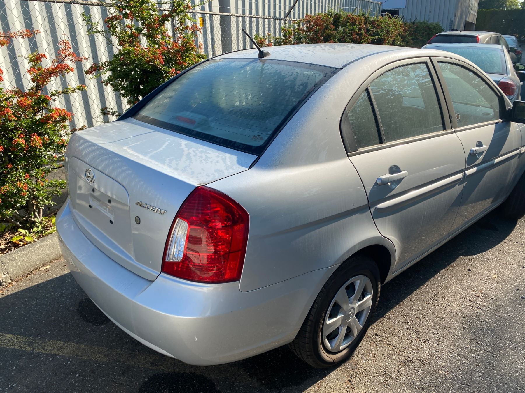 2007 HYUNDAI ACCENT 4 DOOR SEDAN GREY VIN#KMHCN45C2741148710 KMS UNKNOWN, GAS , AUTO PD, CD, PW, CC, PL, TW, AC ICBC DECLARATIONS $4,059.91 *NO KEY, MUST TOW, NOT ROADWORTHY*